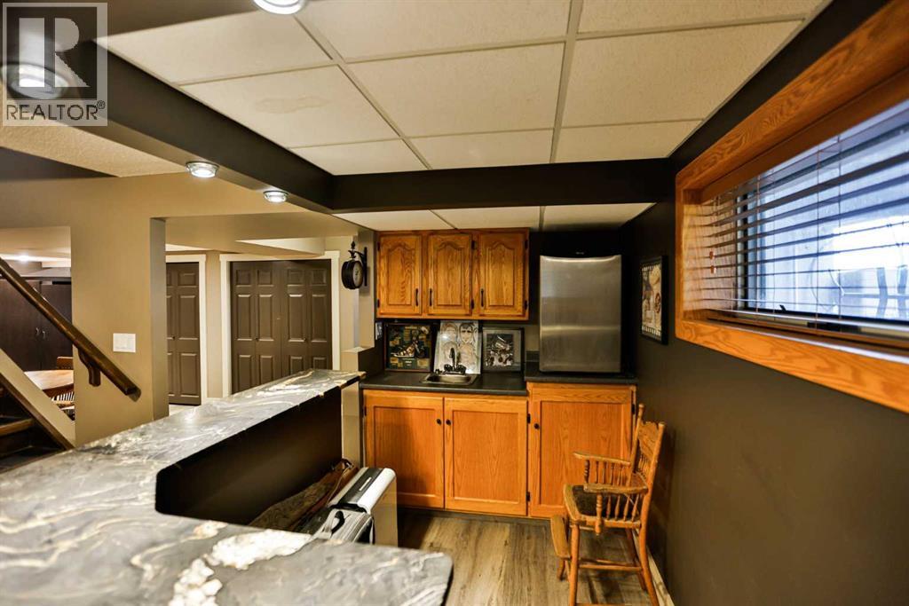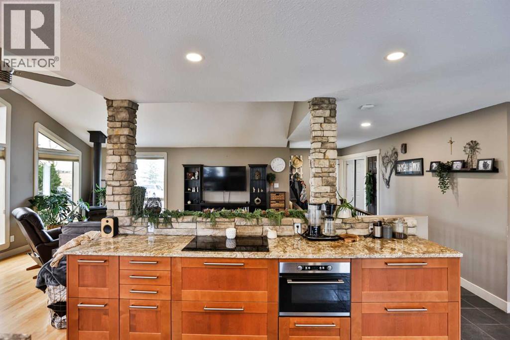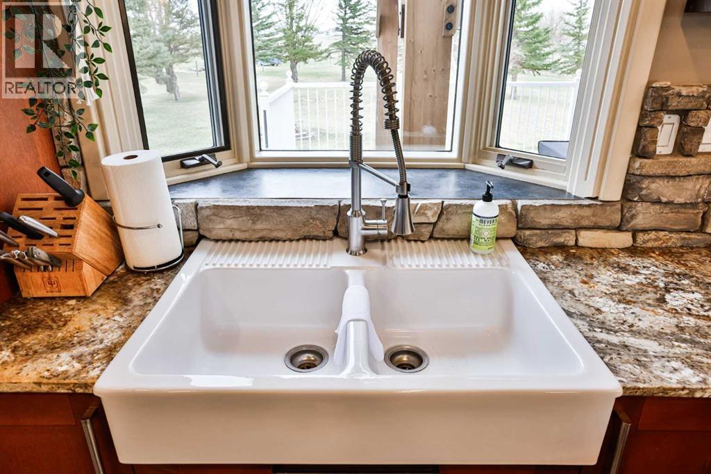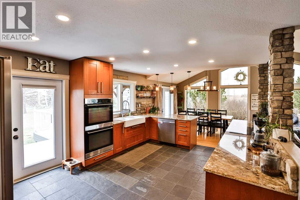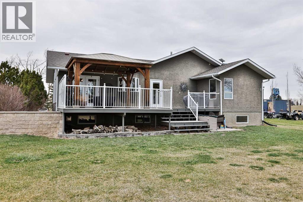 Live, work, and raise your family just minutes from Lethbridge.This 2.39-acre property is located only 5 miles from the city on a paved road right to your doorstep and serviced with city water—offering the ideal blend of convenience and country living. Surrounded by mature trees and wide-open space, this is the setting buyers are looking for, with plenty of room for kids to run, entertain, and enjoy the outdoors.The 1,558 sq. ft. bungalow has been well cared for and thoughtfully updated over the years. The fully renovated kitchen is a standout, featuring extensive workspace, gorgeous granite countertops, double ovens, a stainless steel side-by-side fridge/freezer, white farmhouse sink, slate & hardwood flooring, and updated lighting. Vaulted ceilings and large windows fill the home with natural light while showcasing views of Chief Mountain!The main floor offers three bedrooms, including a spacious primary suite with a walk-in closet and an updated ensuite featuring a large custom glass walk-in shower and additional storage. A dedicated office space includes a built-in desk and a beautiful wood barn door. The main bathroom has also been updated and includes a large tub/shower.Just off the kitchen, a sheltered side deck overlooks the yard and mature trees. Finished with composite decking, a pergola, and a gas line, it’s an ideal space for outdoor living and entertaining.The fully developed basement is designed for entertaining and functionality, featuring a stylish bar area with black leathered granite, bar sink, a large family room, games area, two additional bedrooms, a full bathroom, and a massive laundry/storage room with a second access door to the oversized heated 27’ x 31’ garage. The garage also includes an air compressor with hose line for added convenience.This property also presents an excellent live/work opportunity. With an established business currently operating on-site, there is potential for future approval for a business. The heated shop offer s 1,174 sq. ft. plus an additional 394 sq. ft. mezzanine, complete with overhead doors—ideal for trades, storage, or hobby use.Additional features & updates include access to St. Mary’s irrigation and water co-op, septic system with field, and moveable irrigation pipes, roof (2016), furnace (2018), and hot water tank (2019).This is a rare opportunity to own a versatile acreage that truly checks all the boxes—space for your family, proximity to the city, and the flexibility to work from home. (id:51989)