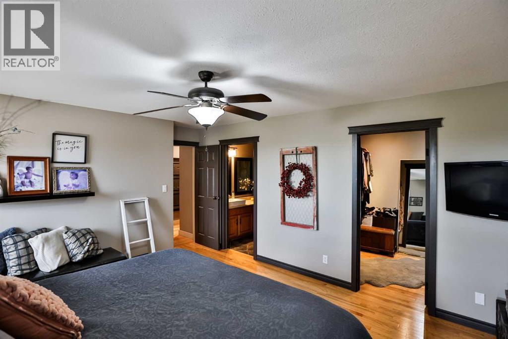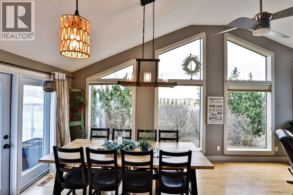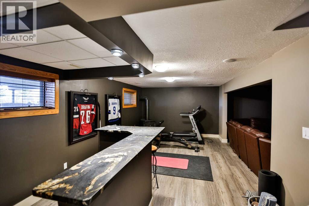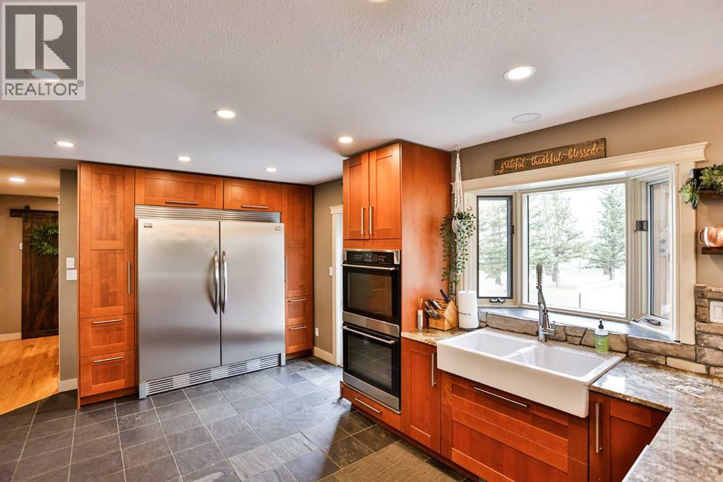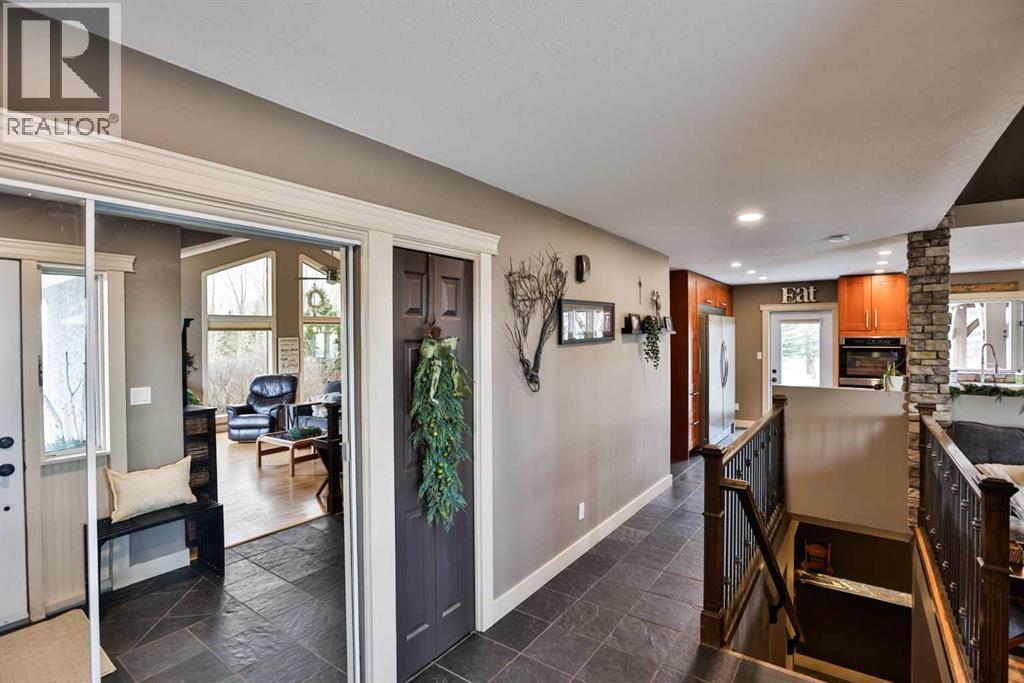 Live, work, and raise your family just minutes from Lethbridge.This 2.39-acre property is located only 5 miles from the city on a paved road right to your doorstep and serviced with city water—offering the ideal blend of convenience and country living. Surrounded by mature trees and wide-open space, this is the setting buyers are looking for, with plenty of room for kids to run, entertain, and enjoy the outdoors.The 1,558 sq. ft. bungalow has been well cared for and thoughtfully updated over the years. The fully renovated kitchen is a standout, featuring extensive workspace, gorgeous granite countertops, double ovens, a stainless steel side-by-side fridge/freezer, white farmhouse sink, slate & hardwood flooring, and updated lighting. Vaulted ceilings and large windows fill the home with natural light while showcasing views of Chief Mountain!The main floor offers three bedrooms, including a spacious primary suite with a walk-in closet and an updated ensuite featuring a large custom glass walk-in shower and additional storage. A dedicated office space includes a built-in desk and a beautiful wood barn door. The main bathroom has also been updated and includes a large tub/shower.Just off the kitchen, a sheltered side deck overlooks the yard and mature trees. Finished with composite decking, a pergola, and a gas line, it’s an ideal space for outdoor living and entertaining.The fully developed basement is designed for entertaining and functionality, featuring a stylish bar area with black leathered granite, bar sink, a large family room, games area, two additional bedrooms, a full bathroom, and a massive laundry/storage room with a second access door to the oversized heated 27’ x 31’ garage. The garage also includes an air compressor with hose line for added convenience.This property also presents an excellent live/work opportunity. With an established business currently operating on-site, there is potential for future approval for a business. The heated shop offer s 1,174 sq. ft. plus an additional 394 sq. ft. mezzanine, complete with overhead doors—ideal for trades, storage, or hobby use.Additional features & updates include access to St. Mary’s irrigation and water co-op, septic system with field, and moveable irrigation pipes, roof (2016), furnace (2018), and hot water tank (2019).This is a rare opportunity to own a versatile acreage that truly checks all the boxes—space for your family, proximity to the city, and the flexibility to work from home. (id:51989)