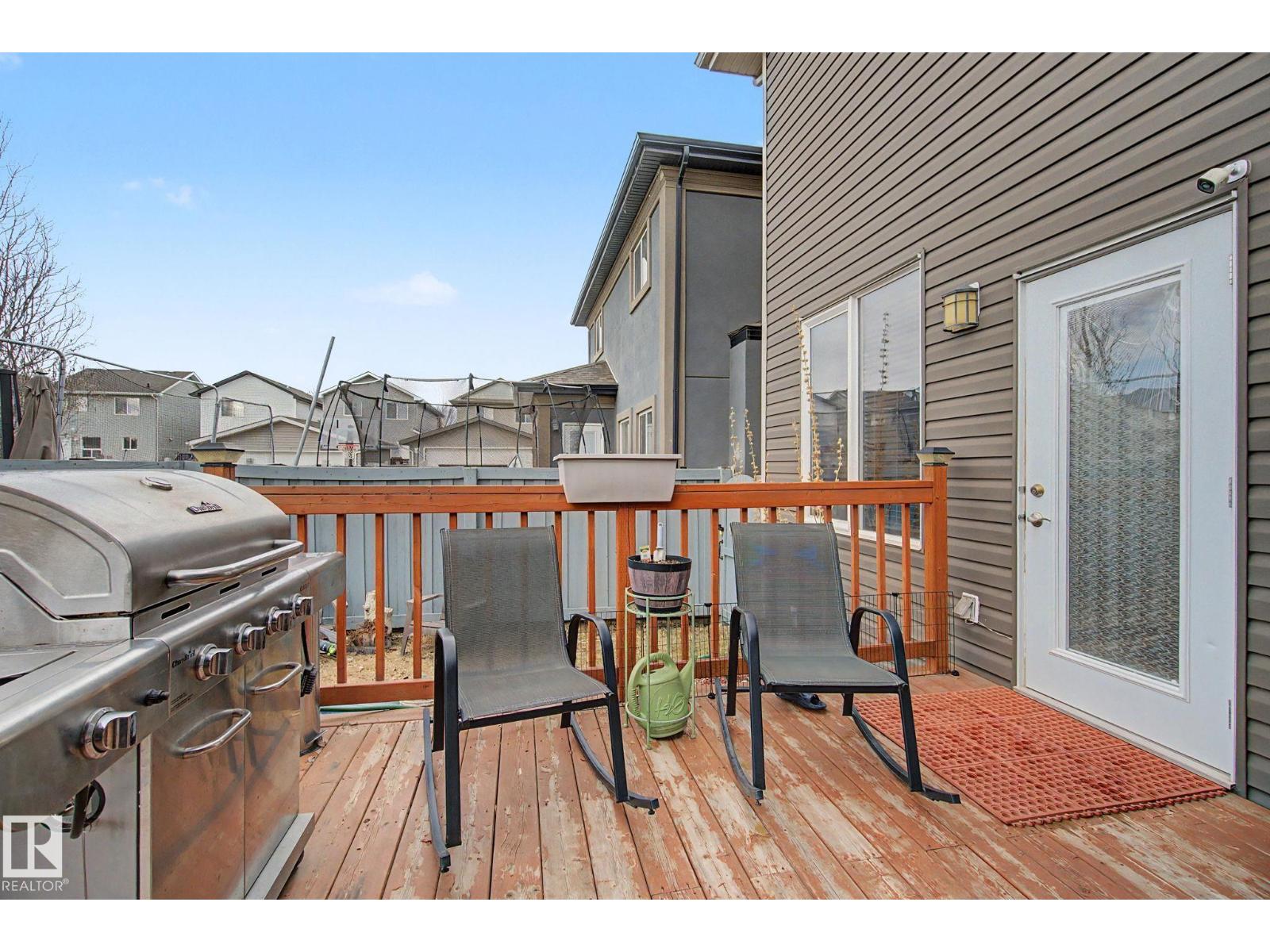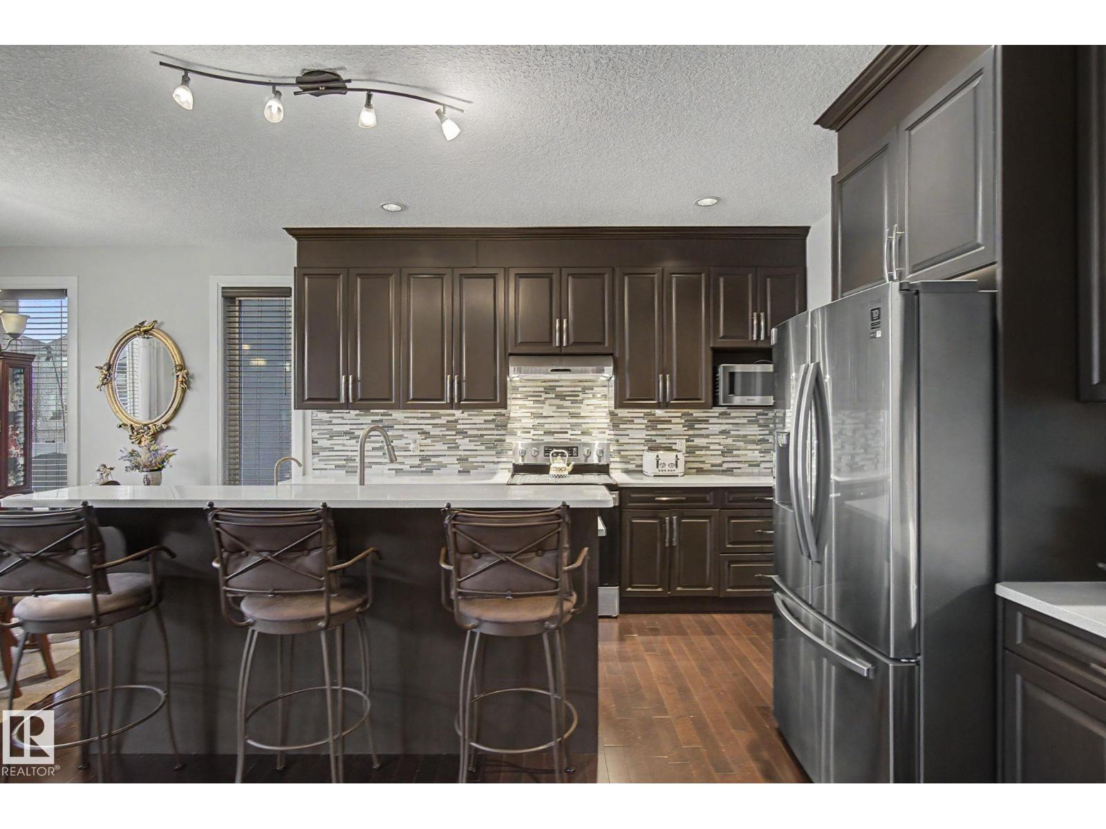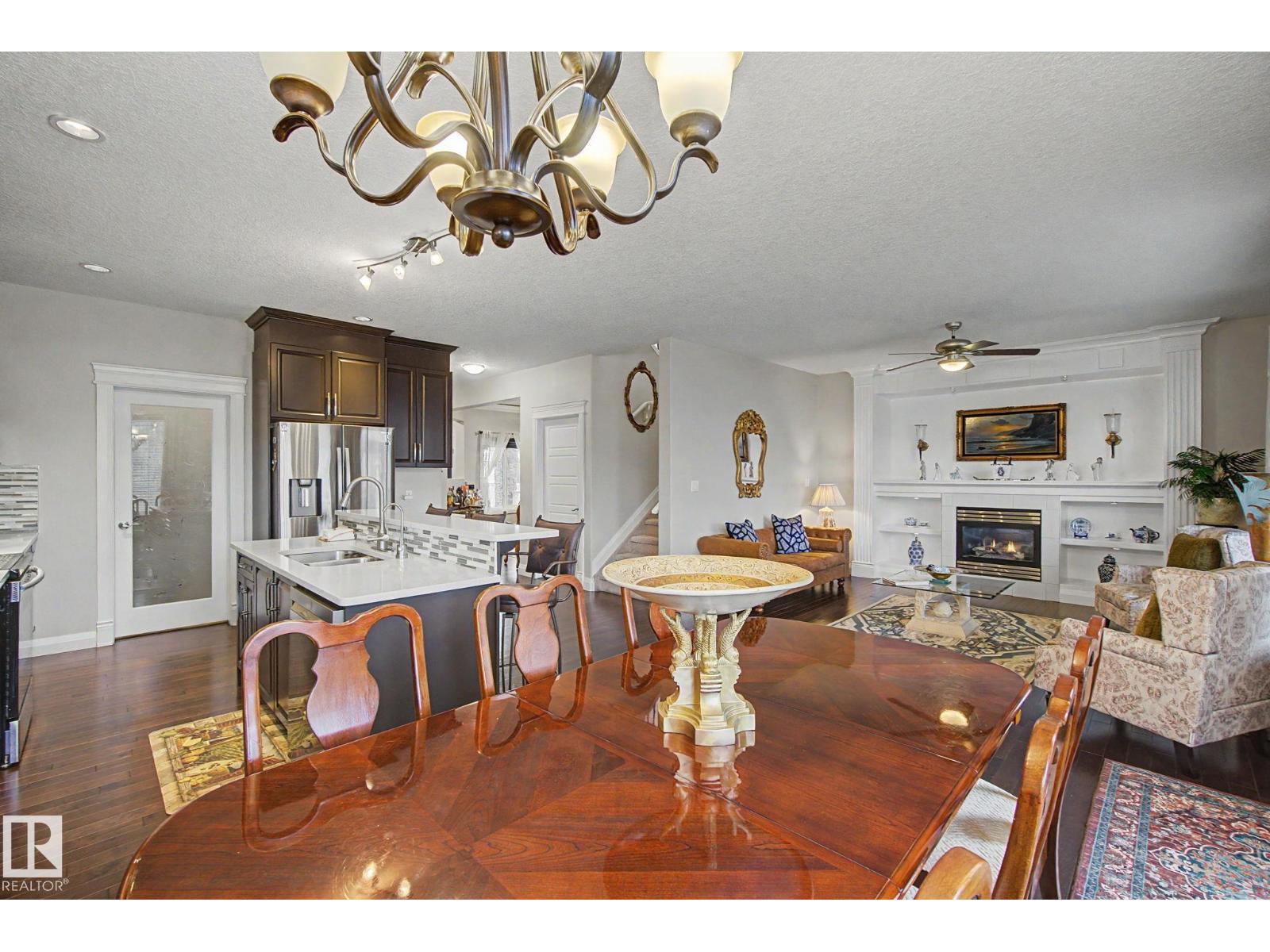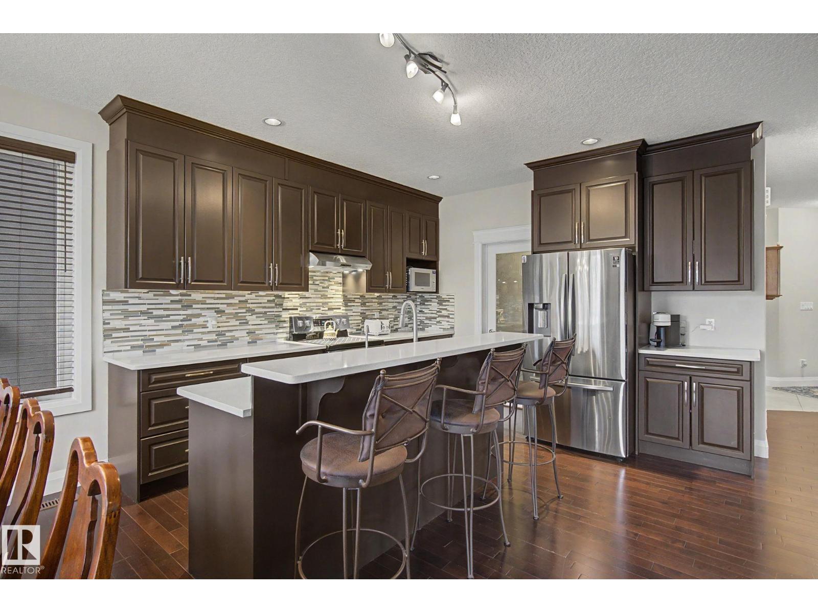 Welcome to this immaculately maintained home in the sought-after community of The Hamptons, offering nearly 2,500 sq ft of refined above-grade living space. Soaring 9’ ceilings and hardwood floors lead into a bright front sitting room, ideal for a home office or reading retreat. The open-concept main floor features a stunning fireplace with custom built-ins and flows into a chef-inspired kitchen with quartz countertops, mosaic backsplash, eat-up island, walk-through pantry, and newer stainless steel appliances. The dining area opens to a private, south-facing backyard with a large deck, pergola, and lush perennials. Upstairs, the spacious primary suite offers French doors and a spa-like ensuite with dual vanities, jetted tub, and separate shower, plus three additional bedrooms and a bonus room. The basement offers 9’ ceilings, large windows, and a separate entrance. Located near schools, parks, trails, and amenities. Upgrades include A/C (2021), tankless hot water (26), new fridge (21) & dishwasher (24). (id:51989)