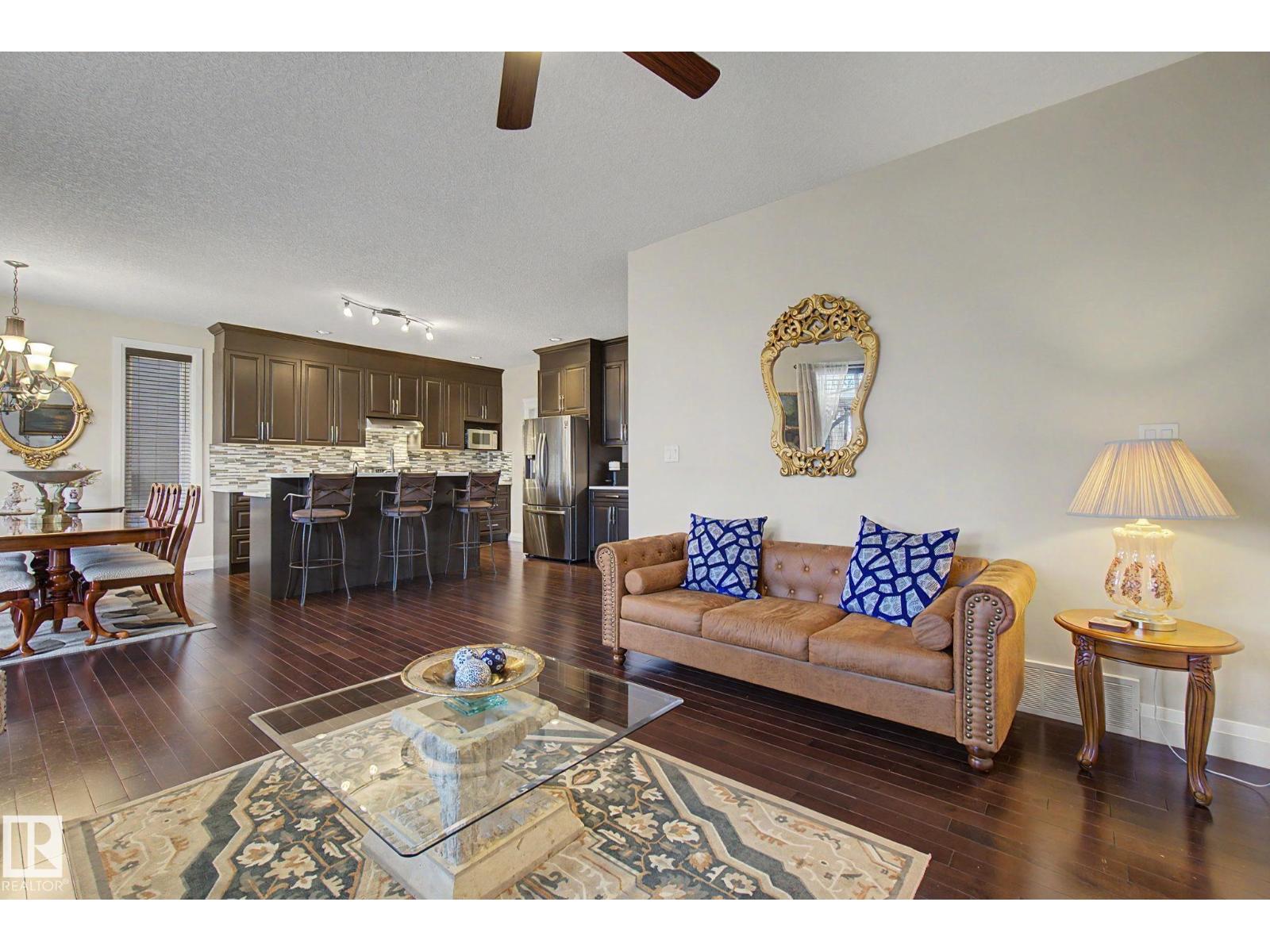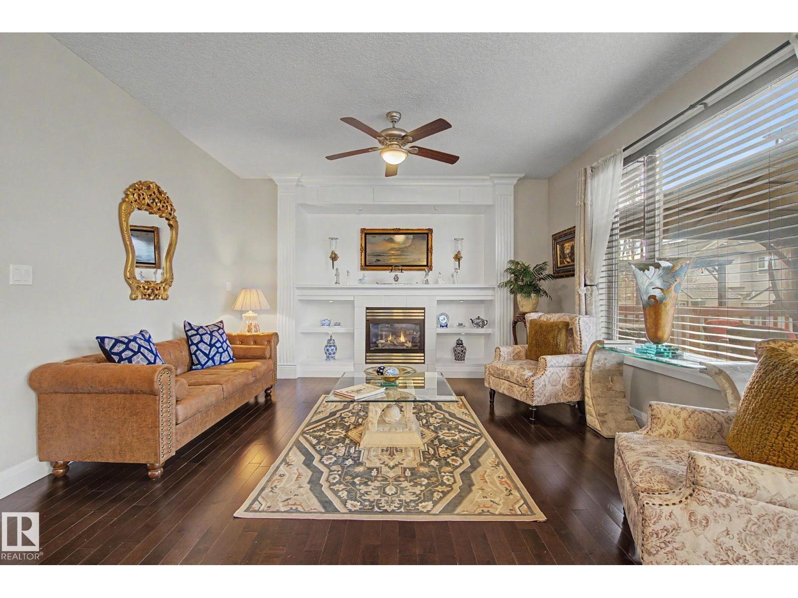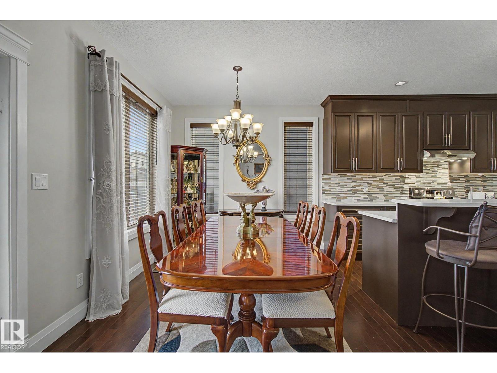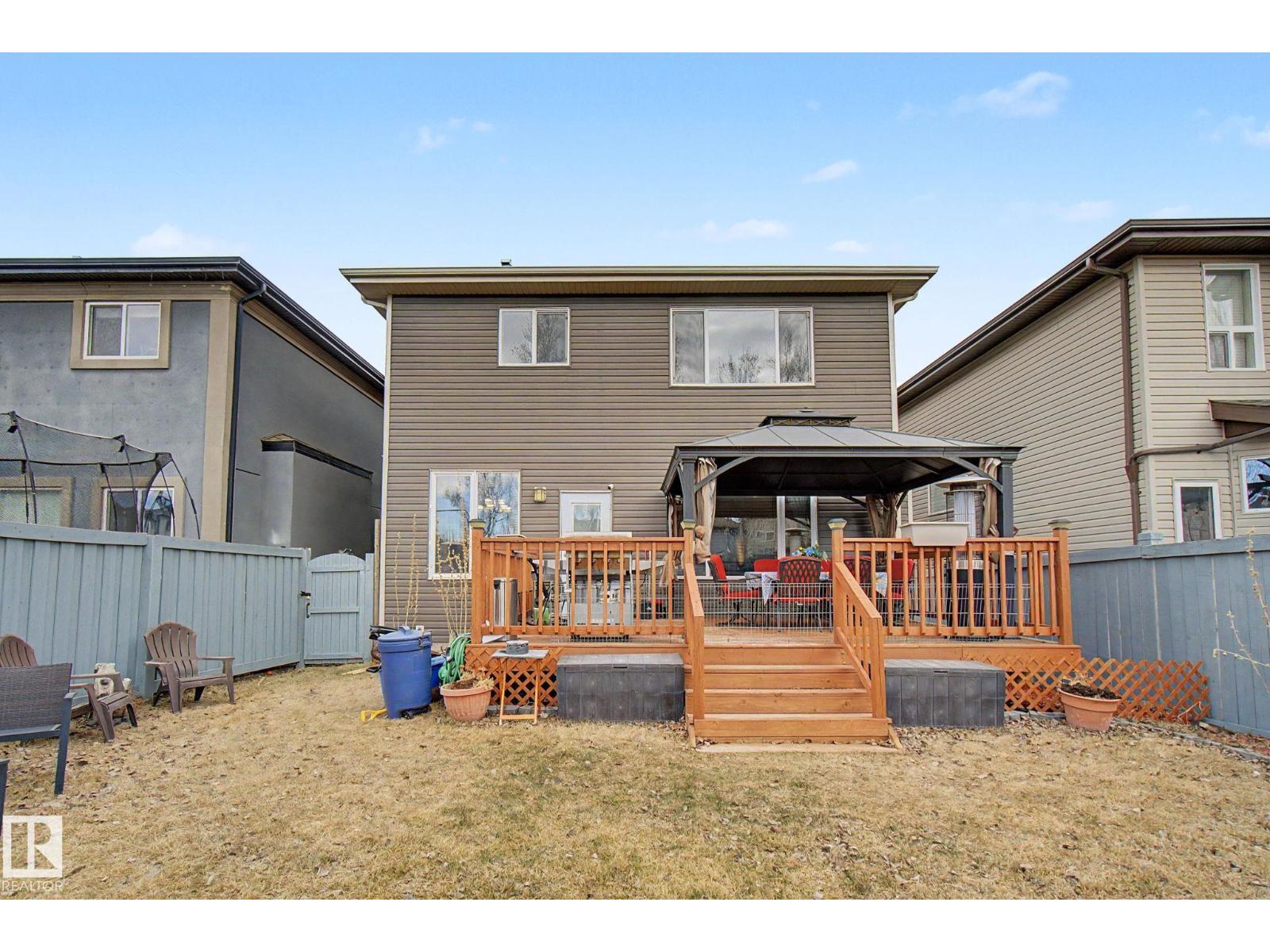 Welcome to this immaculately maintained home in the sought-after community of The Hamptons, offering nearly 2,500 sq ft of refined above-grade living space. Soaring 9’ ceilings and hardwood floors lead into a bright front sitting room, ideal for a home office or reading retreat. The open-concept main floor features a stunning fireplace with custom built-ins and flows into a chef-inspired kitchen with quartz countertops, mosaic backsplash, eat-up island, walk-through pantry, and newer stainless steel appliances. The dining area opens to a private, south-facing backyard with a large deck, pergola, and lush perennials. Upstairs, the spacious primary suite offers French doors and a spa-like ensuite with dual vanities, jetted tub, and separate shower, plus three additional bedrooms and a bonus room. The basement offers 9’ ceilings, large windows, and a separate entrance. Located near schools, parks, trails, and amenities. Upgrades include A/C (2021), tankless hot water (26), new fridge (21) & dishwasher (24). (id:51989)