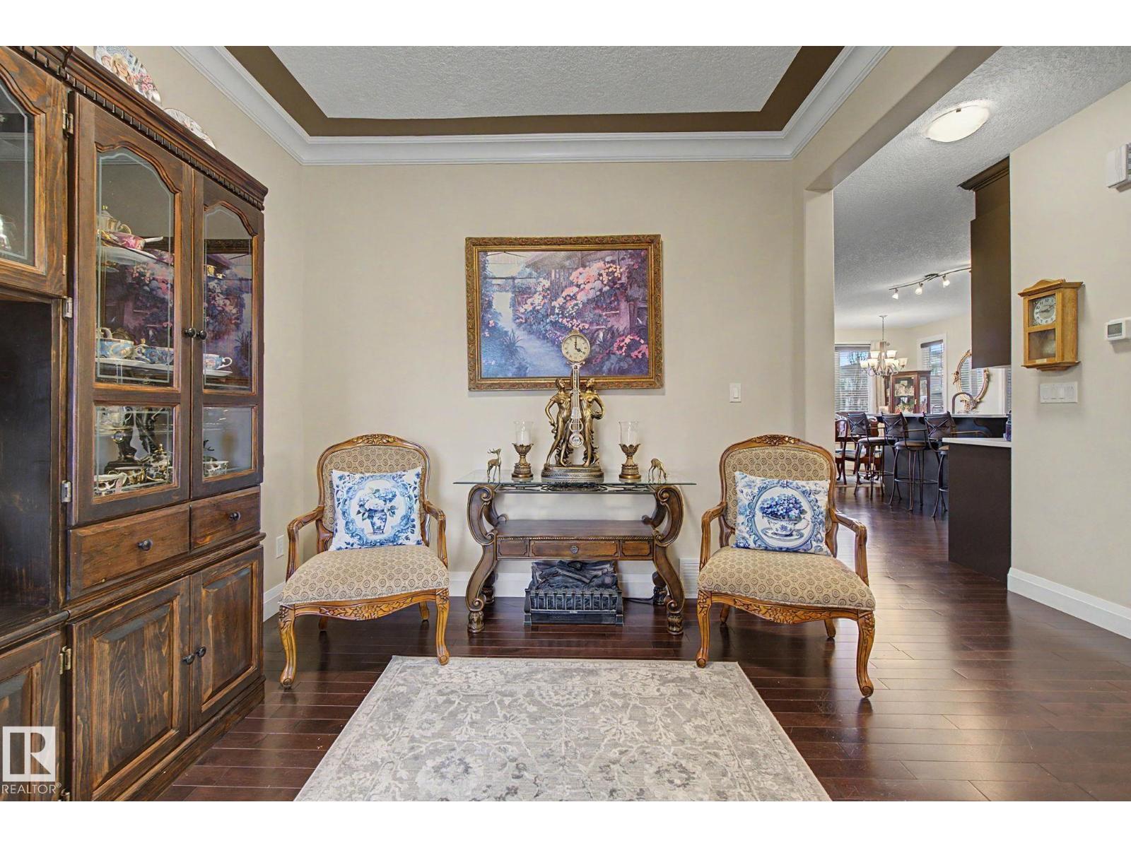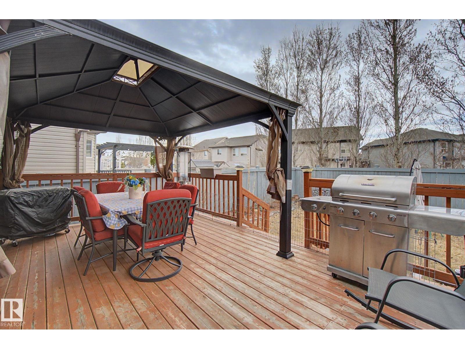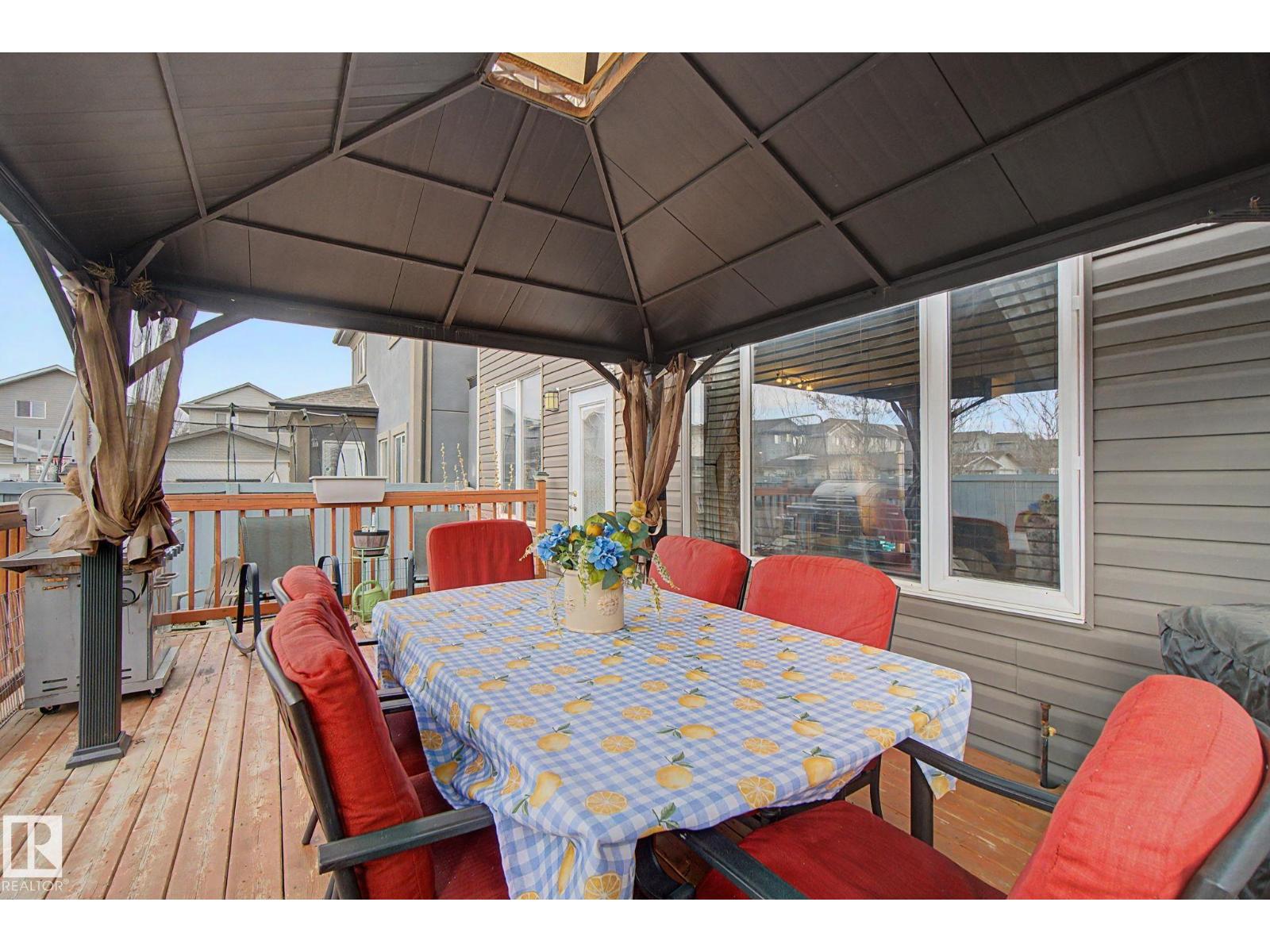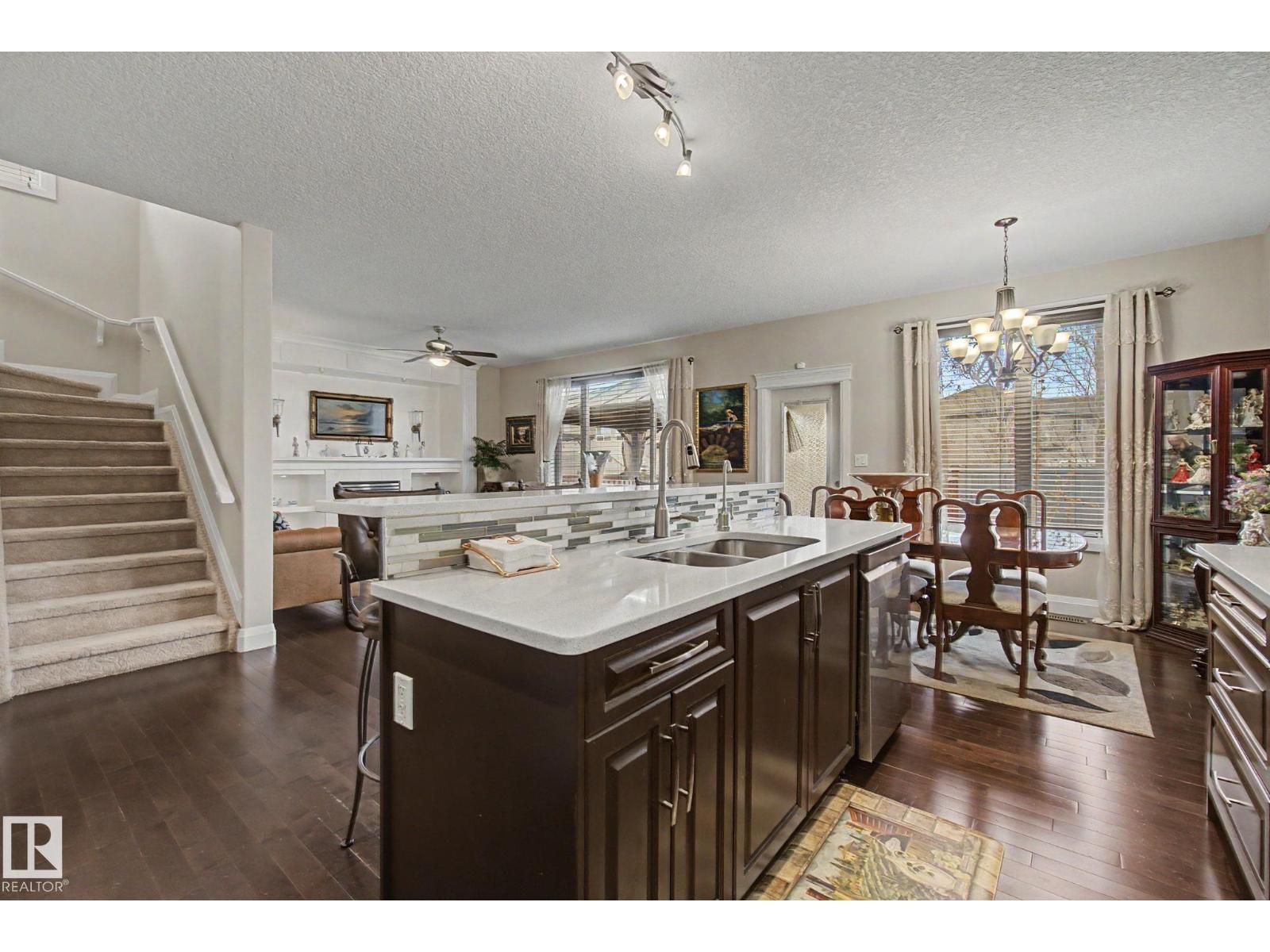 Welcome to this immaculately maintained home in the sought-after community of The Hamptons, offering nearly 2,500 sq ft of refined above-grade living space. Soaring 9’ ceilings and hardwood floors lead into a bright front sitting room, ideal for a home office or reading retreat. The open-concept main floor features a stunning fireplace with custom built-ins and flows into a chef-inspired kitchen with quartz countertops, mosaic backsplash, eat-up island, walk-through pantry, and newer stainless steel appliances. The dining area opens to a private, south-facing backyard with a large deck, pergola, and lush perennials. Upstairs, the spacious primary suite offers French doors and a spa-like ensuite with dual vanities, jetted tub, and separate shower, plus three additional bedrooms and a bonus room. The basement offers 9’ ceilings, large windows, and a separate entrance. Located near schools, parks, trails, and amenities. Upgrades include A/C (2021), tankless hot water (26), new fridge (21) & dishwasher (24). (id:51989)