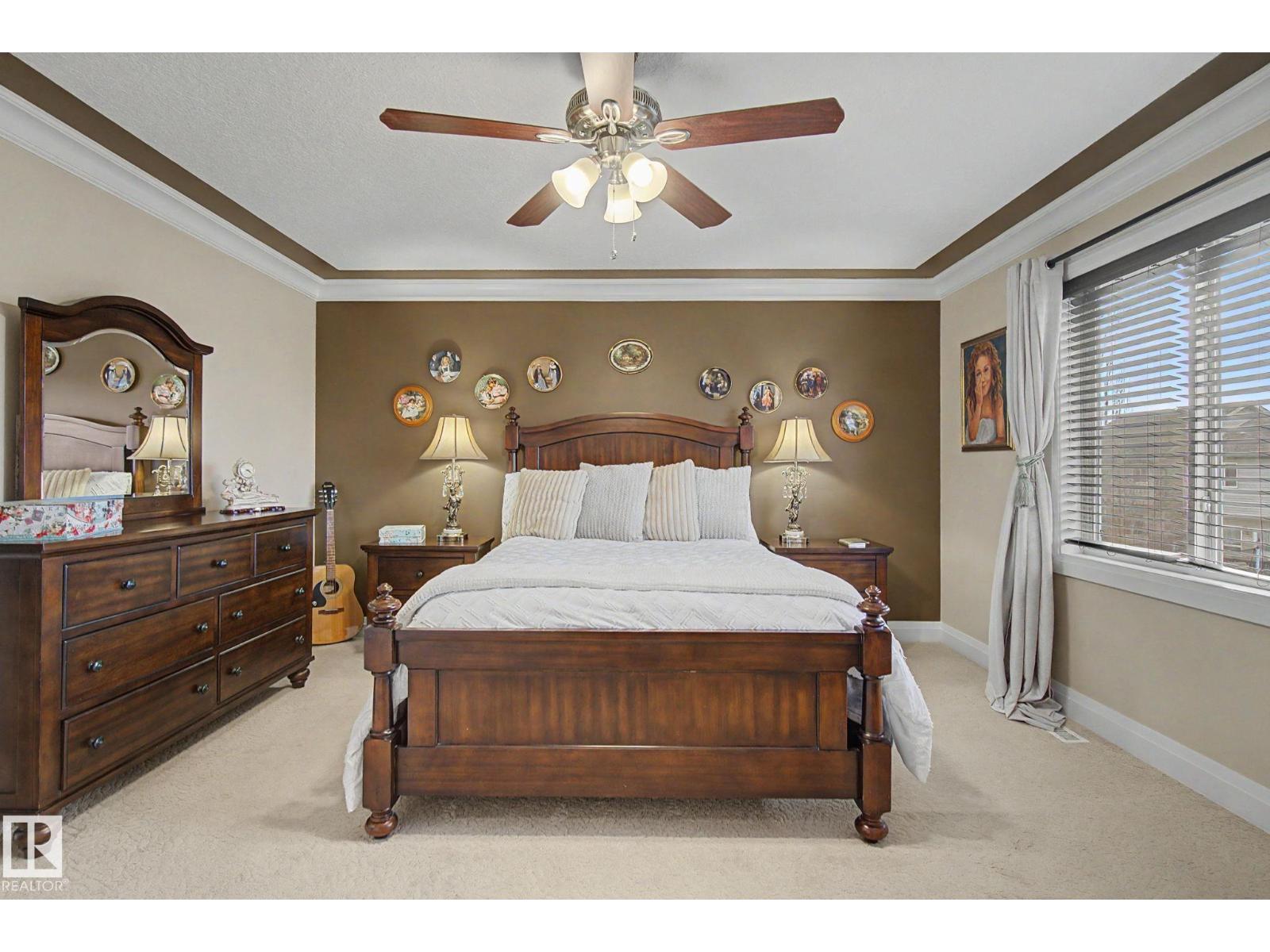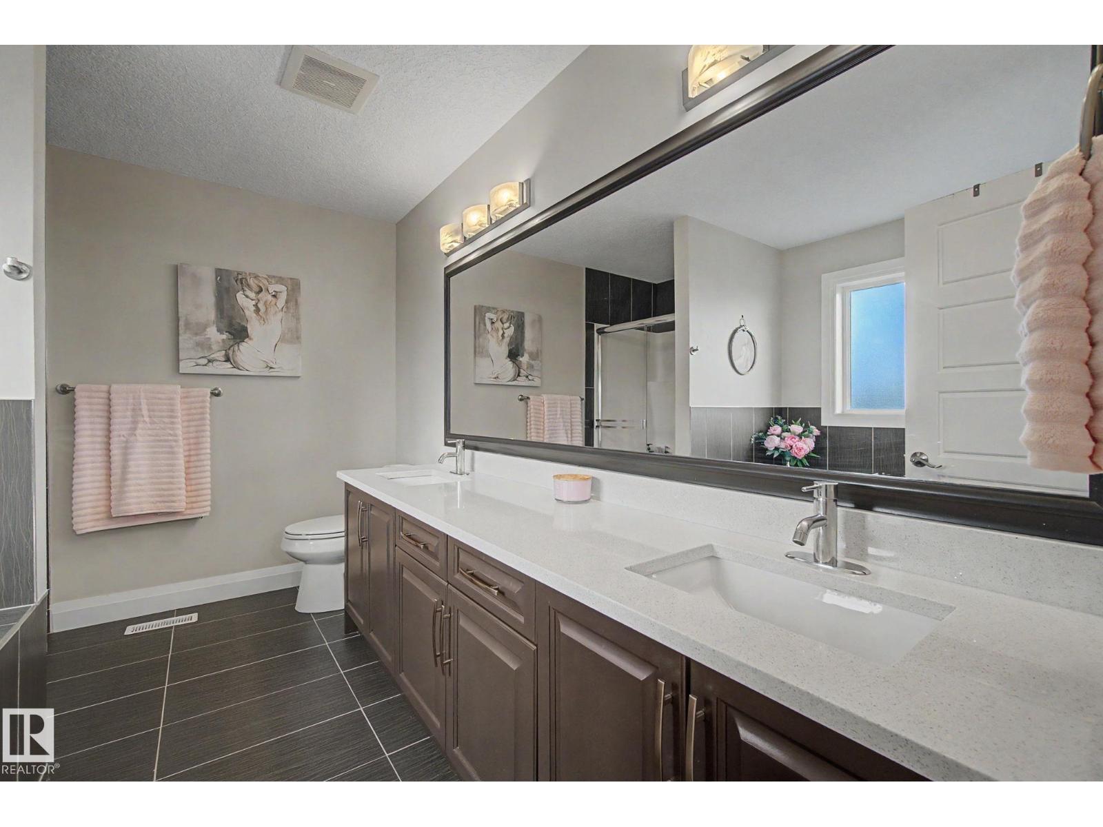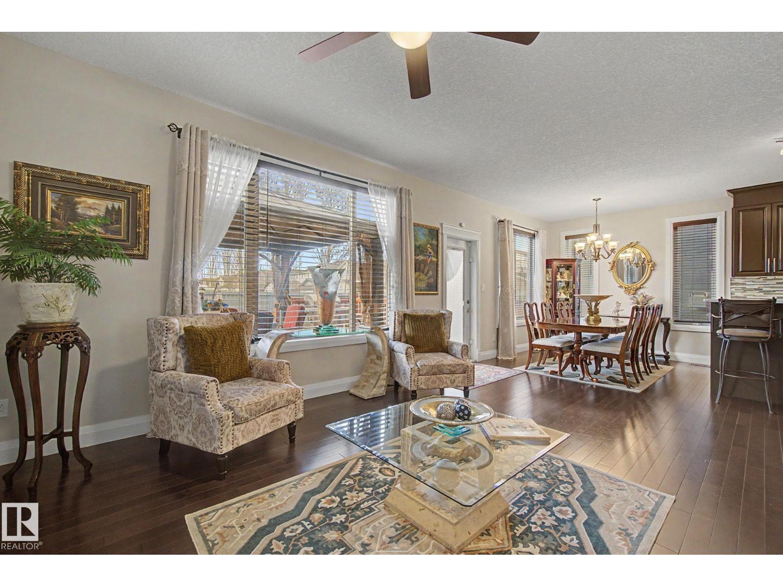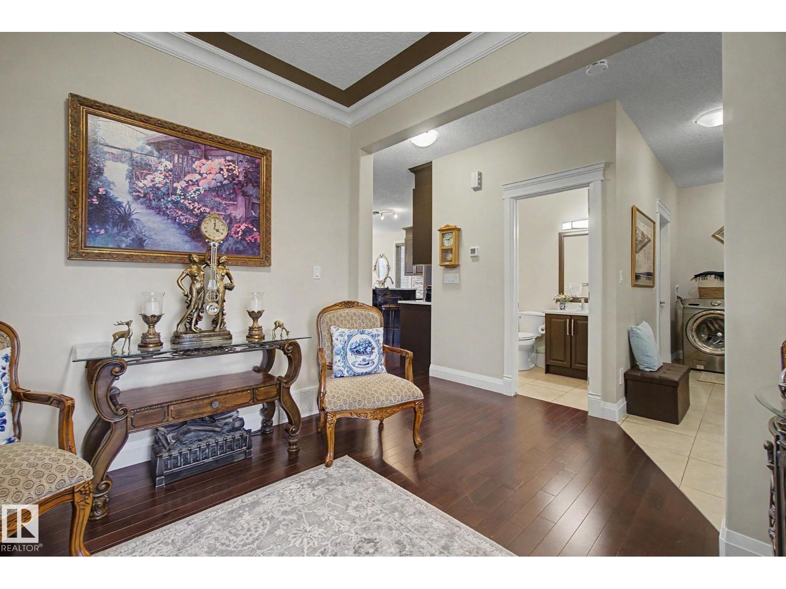 Welcome to this immaculately maintained home in the sought-after community of The Hamptons, offering nearly 2,500 sq ft of refined above-grade living space. Soaring 9’ ceilings and hardwood floors lead into a bright front sitting room, ideal for a home office or reading retreat. The open-concept main floor features a stunning fireplace with custom built-ins and flows into a chef-inspired kitchen with quartz countertops, mosaic backsplash, eat-up island, walk-through pantry, and newer stainless steel appliances. The dining area opens to a private, south-facing backyard with a large deck, pergola, and lush perennials. Upstairs, the spacious primary suite offers French doors and a spa-like ensuite with dual vanities, jetted tub, and separate shower, plus three additional bedrooms and a bonus room. The basement offers 9’ ceilings, large windows, and a separate entrance. Located near schools, parks, trails, and amenities. Upgrades include A/C (2021), tankless hot water (26), new fridge (21) & dishwasher (24). (id:51989)