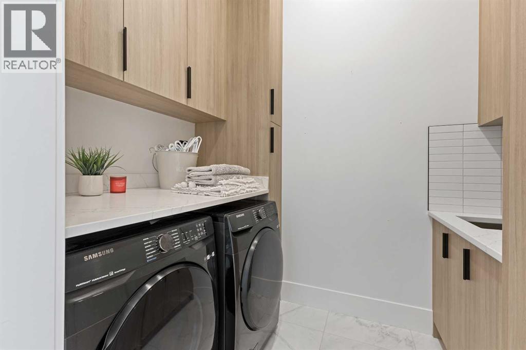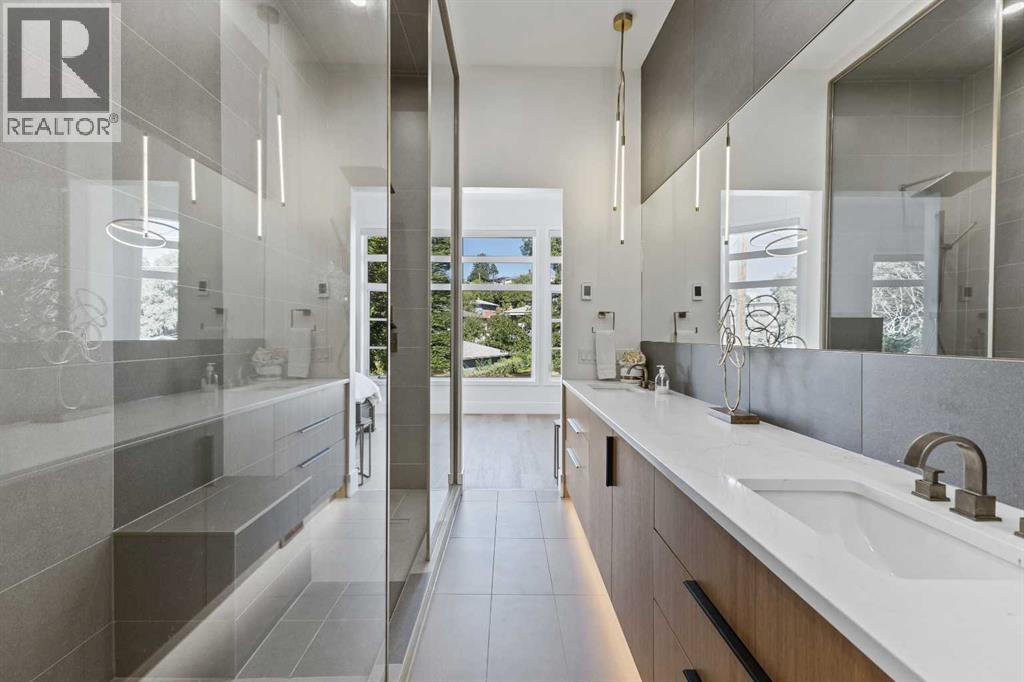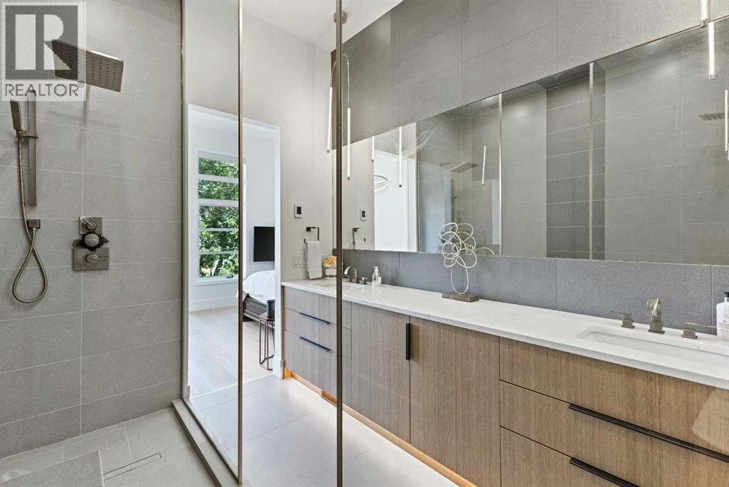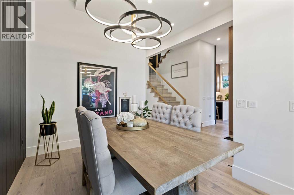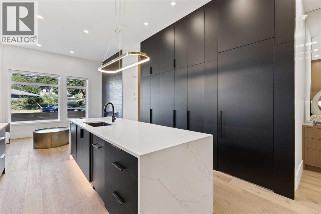 This stunning property is nestled away on one of Bridgeland’s most coveted streets and features a self contained 2-bedroom legal suite and DT Skyline Views! With over 3600 sq ft of developed space and well-appointed in high end luxurious custom finishings. As you enter the home you are greeted by the lavish 7” inch plank white oak hardwood flooring and flooded with natural light with massive windows and 11-foot ceilings. Chefs Dream Kitchen with tons of two-tone white oak and dark cabinetry, 10 ft oversized waterfall quartz island, white porcelain backsplash, and with commercial grade appliances with 6 burner gas range, paneled fridge, and built in oven, microwave, and coffee machine. Open to the spacious living room with feature floor to ceiling tile faced gas fireplace. Formal dining area with large picture window and feature black slated wall. A large office/den/bedroom and gorgeous full 4-piece bathroom complete the well laid out main floor. Head upstairs to the master suite with spa-like ensuite bathroom with “his and her” quartz undermount sinks, designer light fixtures, under cabinet lighting, wall to wall mirrors, walk-in closet, and massive walk-in double shower with dual rainfall shower heads, floor to ceiling tile and 10mm glass! An additional 3 good sized bedrooms, upper floor laundry room, and another 2 full bathrooms for all your family's needs. Expansive bonus room/family room with built-in wet bar, fireplace feature wall, and large balcony with DT views is the main hub of the home. Great for entertaining, watching the big game, or movie nights! A legal 2-bedroom basement suite with the same luxurious finishings carried throughout! Large kitchen, family room with Napoleon fireplace wall, good sized bedrooms, separate laundry, and full 4-piece bathroom. Can be accessed from the main floor or its own separate entrance. Great space for nanny, mother-in-law, teenagers or mortgage helper! Oversized double attached garage with large, paved driveway that can fit another 4 cars if needed! Home Equipped with central A/C for those hot summer days and a fully fenced low maintenance yard space with patio. All this on a quiet tree-lined, one-way street just minutes to DT core and steps to all the trendy shops, cafes, restaurants and bars Bridgeland has to offer. This home is a must see and will be sure to impress with the thought put into the details and design! (id:51989)