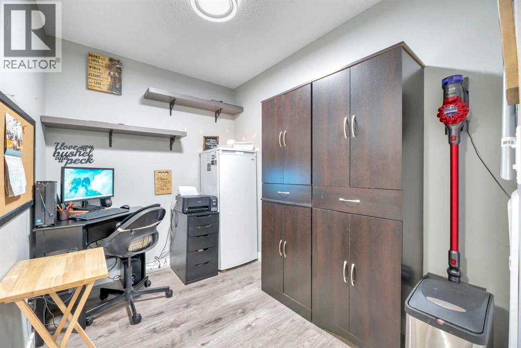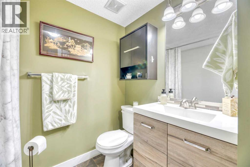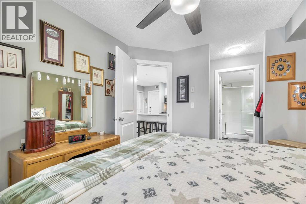 Ground floor unit backing onto Greenspace! Easy access to this well and updated maintained bedroom condo. Open floor plan. Gleaming white kitchen with stainless steel appliances and breakfast bar open to bright and open living room with access to ground floor patio. 2 spacious sized bedrooms. The primary has a walkthrough closet and 3 piece ensuite. Additional space ideal for small office. Insuite laundry. Very functional immaculateunit. Condo fees incude heat and water, one parking stall. Close to Shopping, Dining, Gas, Tim Horton's. Great location near all amenities, very walkable! Great commuting to Calgary from the heart of Airdre! (id:51989)