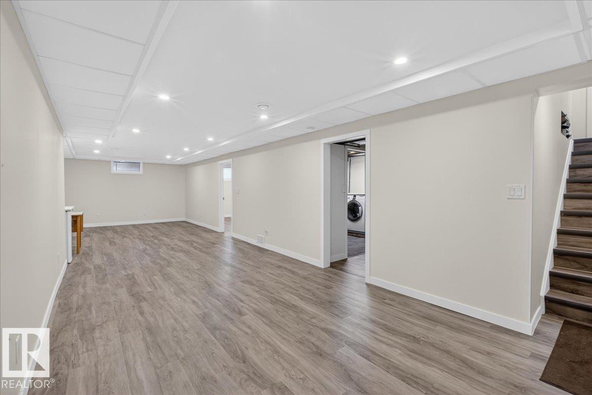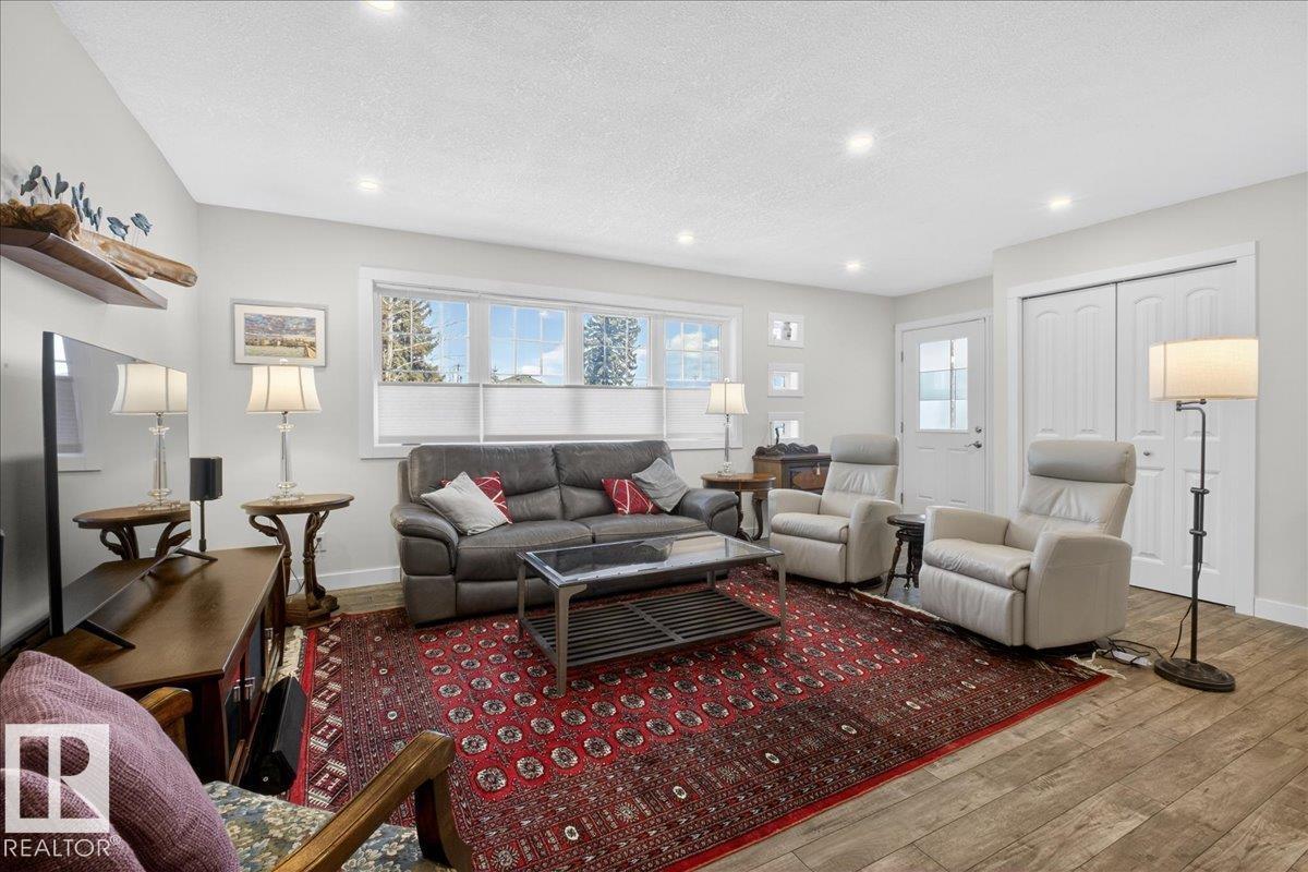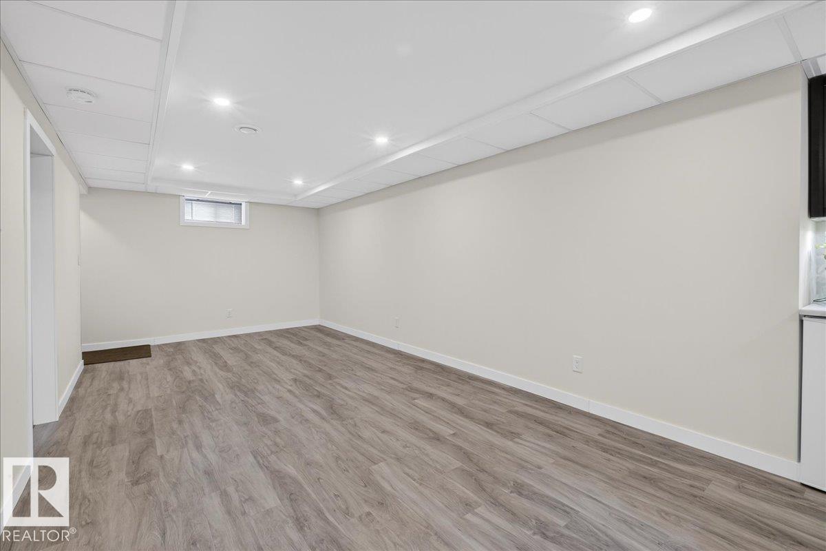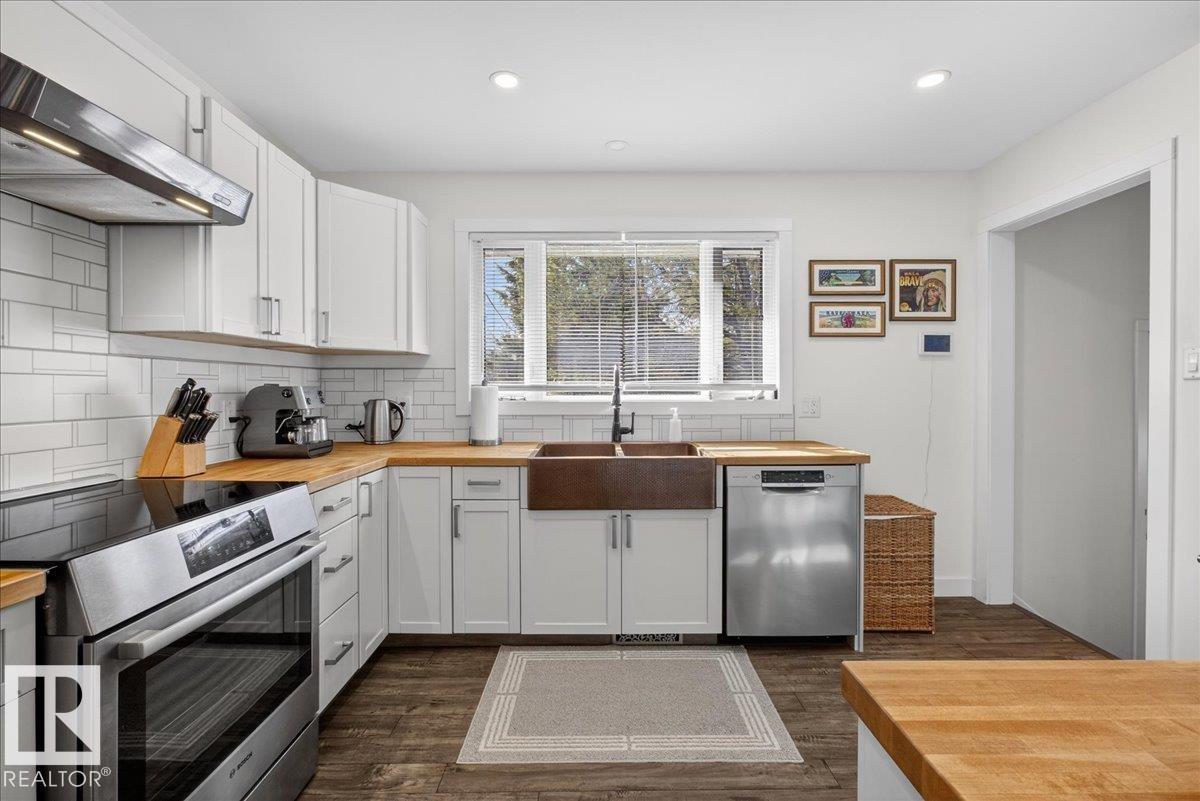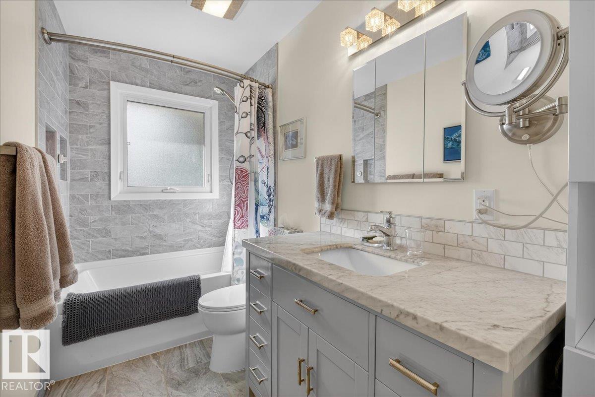 1158 sq ft bungalow shows like new! Substantial renovation completed with all required permits. Main level hosts large living/dining area, 3 bdrms with common 4 pc bath, spacious kitchen, 4th bedroom in bsmt with large family room, 4pc bath, mechanical room hosts laundry, storage area & under stair cold room. Reno's 2020-2021 include addition to living room & master bedroom, all interior drywall & insulation removed & replaced, new wiring along with switches & plugs, new panel & breakers, attic insulation R50, ceiling pot lights, new bsmt windows with egress added to bedroom, Dricore subfloor, HWT, furnace 2014 (A/C roughed in), shingles, interior doors, flooring throughout, kitchen cabinetry & counters, appliances (Bosch induction stove & dishwasher), Kitchen Aid fridge, garburator. 2022 new fence across east, south & west side of home. 2025 new sewer line & backwater valve. Large yard, 2 car garage & big driveway complete this home. Close to LRT, Mill Creek trails, schools, shopping. A beautiful home! (id:51989)
