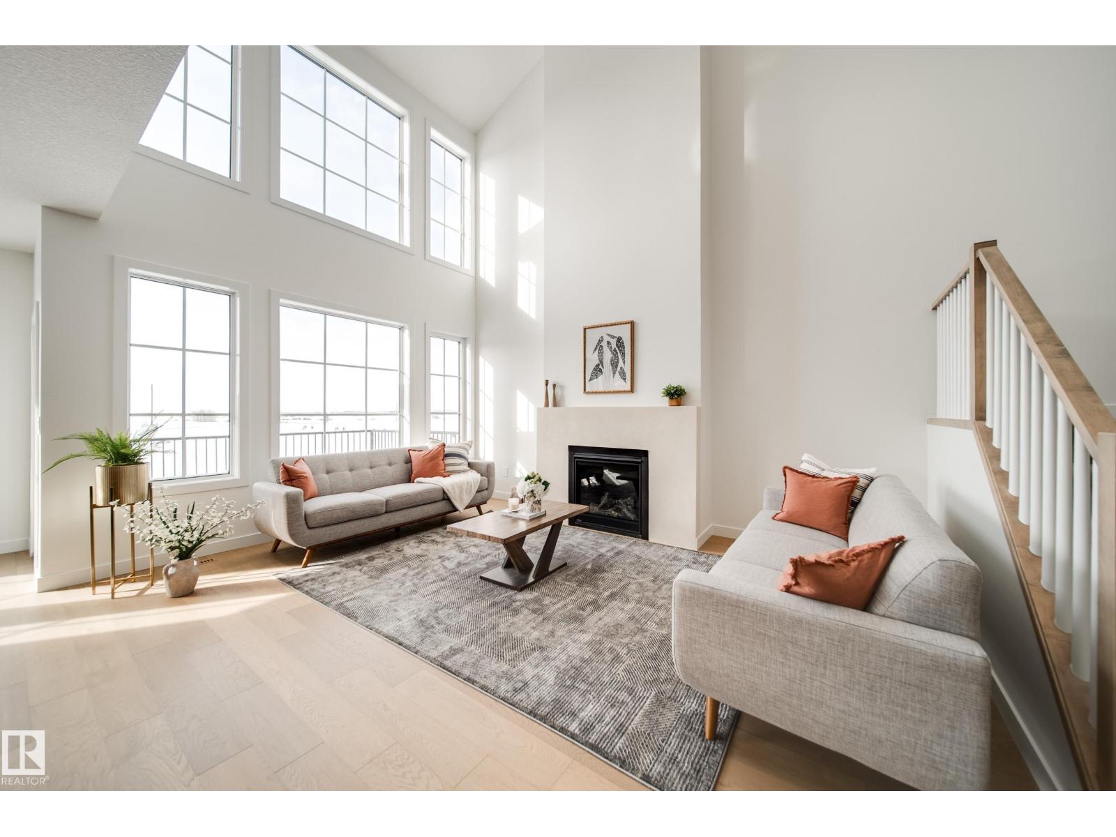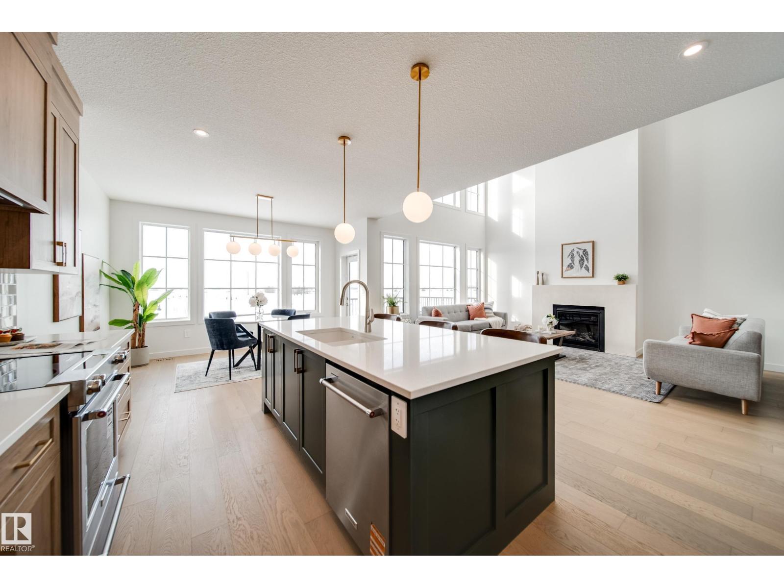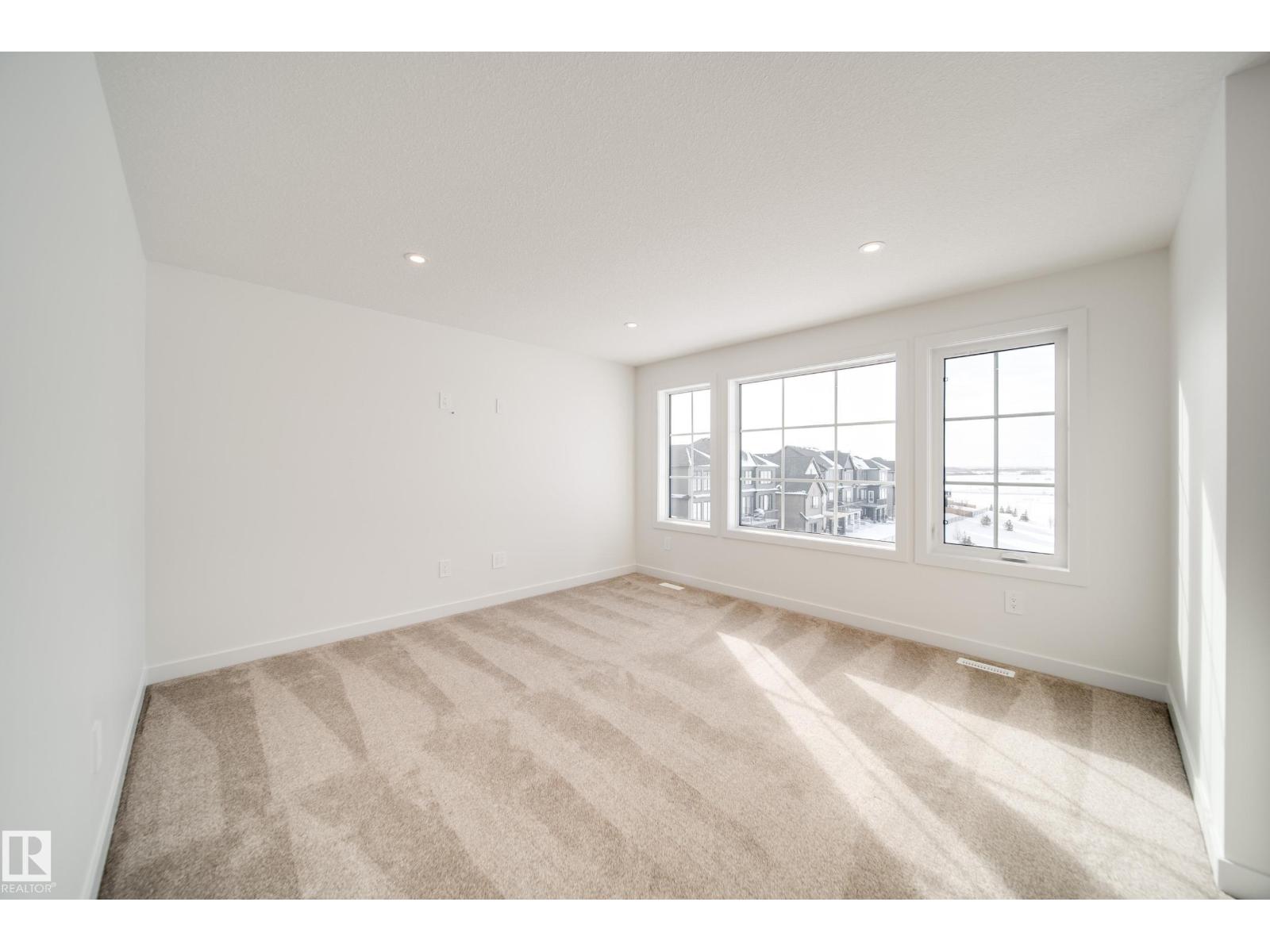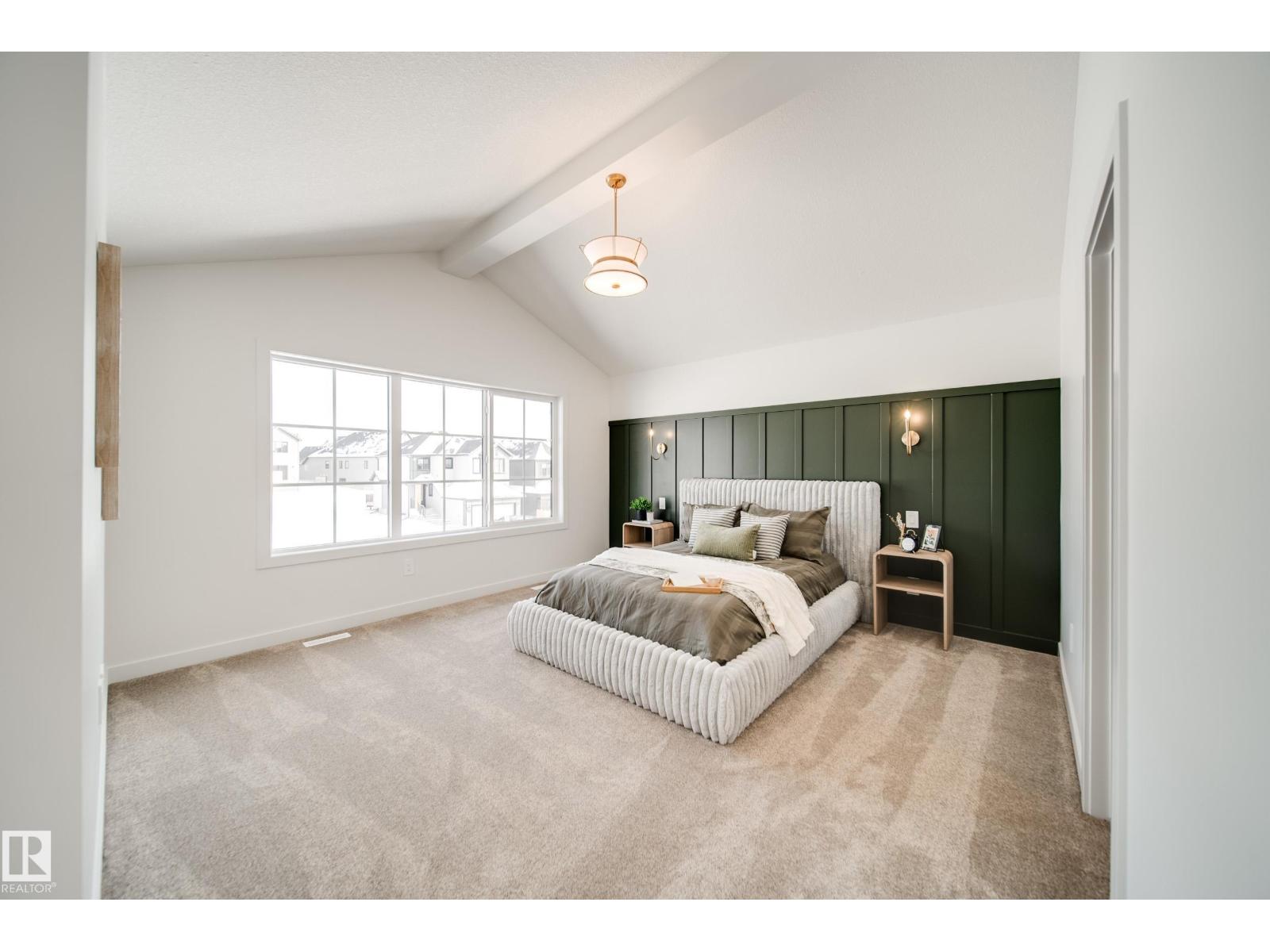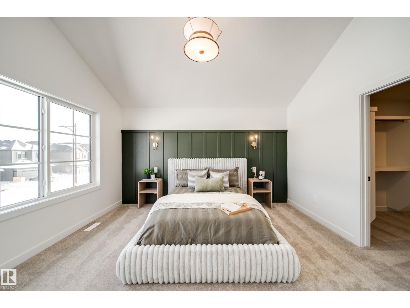 Welcome to The Vantablack by award winning Justin Gray Homes, situated on 30' pocket west facing POND BACKING WALKOUT lot in Cherot, offering 2475 sqft of refined living space in a professionally curated Nordic Deco palette by CM Interiors. Featuring soaring open-to-below ceilings, 9' ceilings on the main, HARDWOOD floors & a cozy GAS fireplace. The main floor den w/frosted doors is perfect for a stylish home office. An OVERSIZED DOUBLE CAR GARAGE w/garage drain, leads to a mudroom w/custom MDF built-ins. Through JG’s iconic archways, step into a WALKTHROUGH pantry & chef’s kitchen w/huge QUARTZ island w/premium dove-tailed cabinetry & full KitchenAid APPLIANCE PACKAGE INCLUDED. Enjoy sunset pond views off your 13'6 x 10' REAR DECK. Upstairs find 3 spacious bedrooms incld. a dreamy primary w/VAULTED ceilings & wainscoting feature wall, spa-like 5pc ensuite & massive WIC w/convenient direct access to the laundry room. Located near future schools, rec centre, parks & trails. Ready for IMMEDIATE possession! (id:51989)