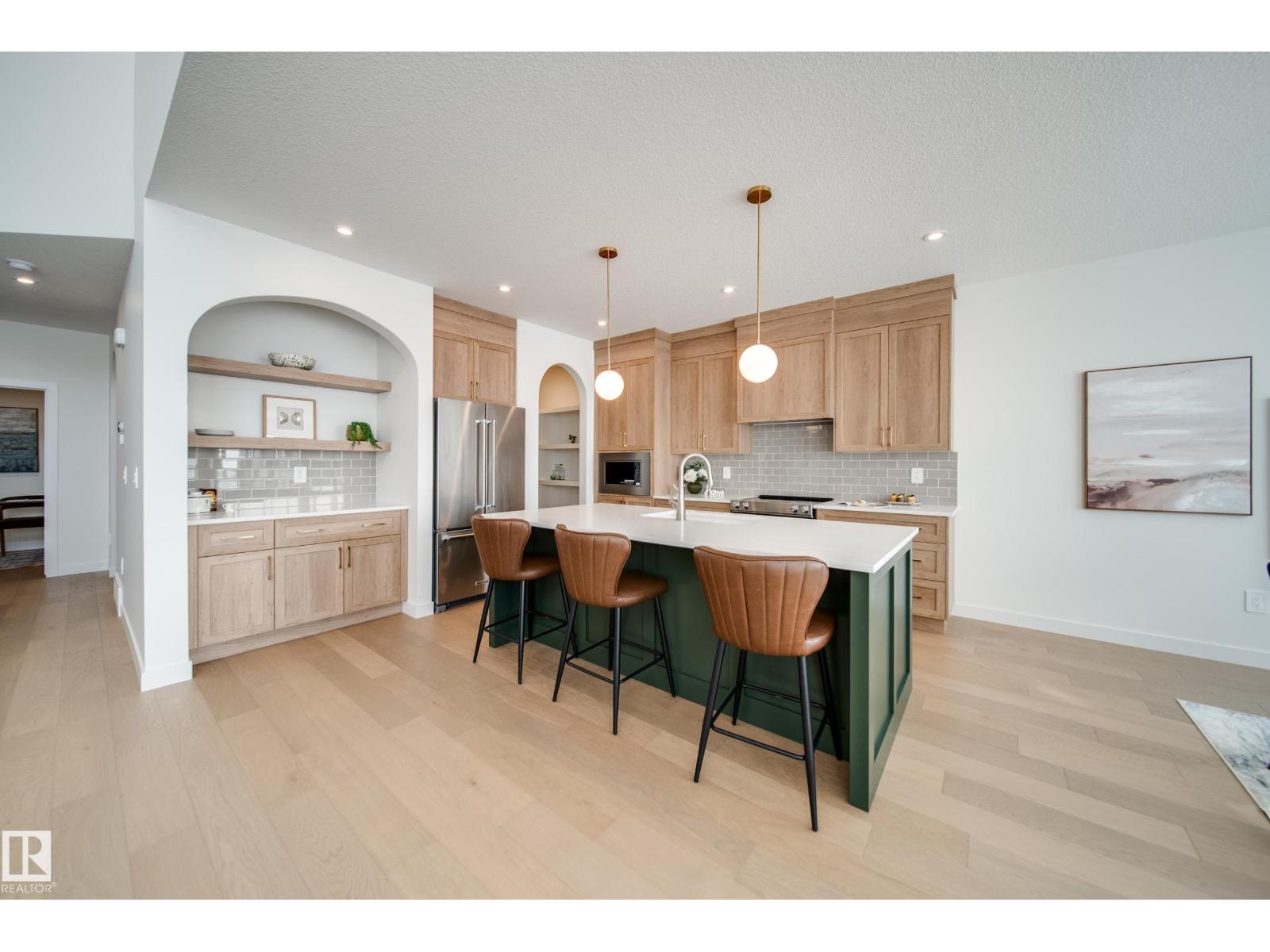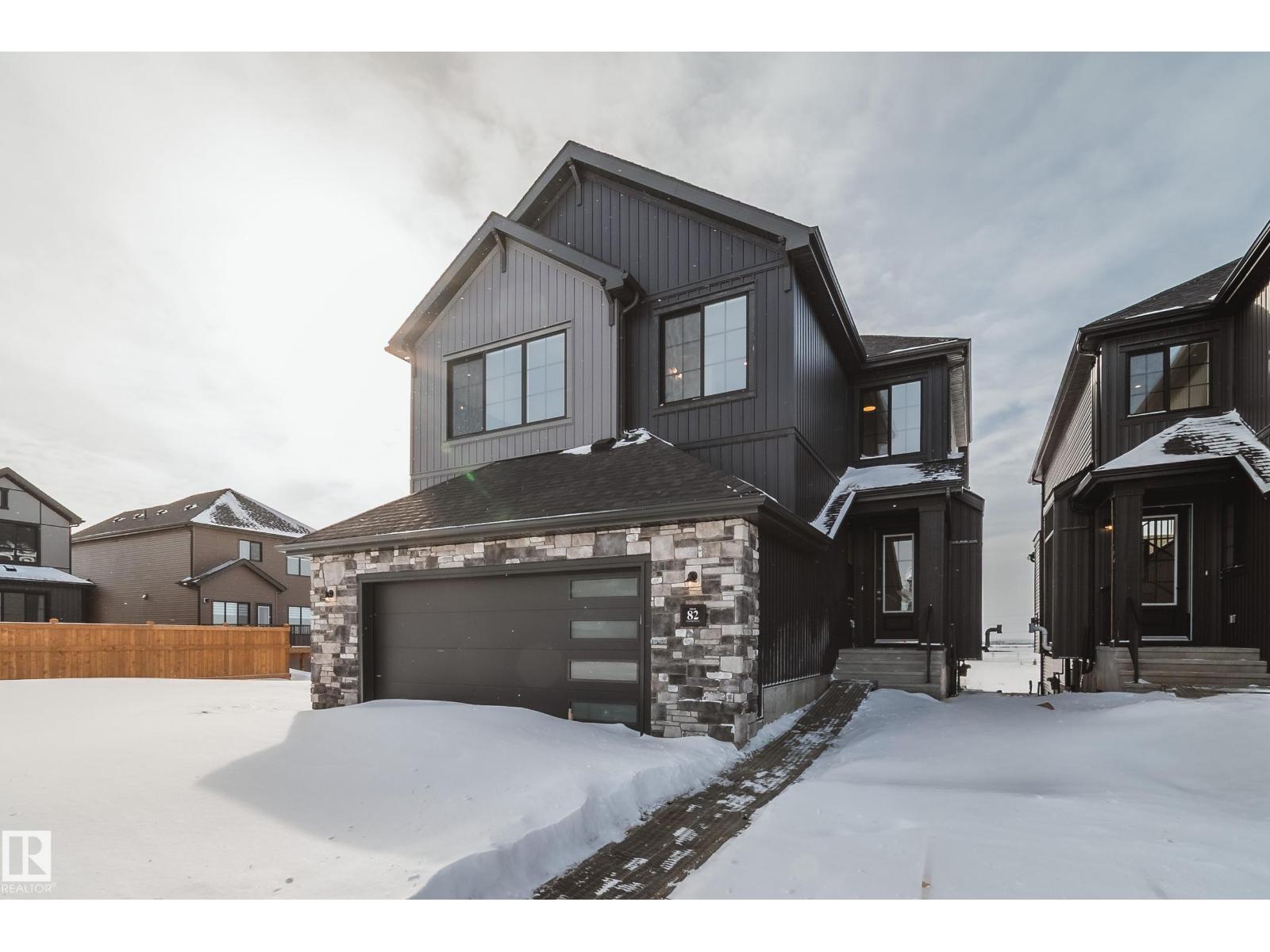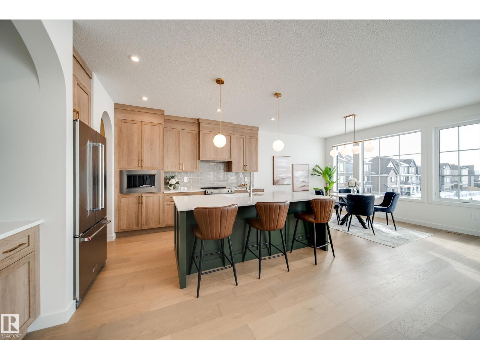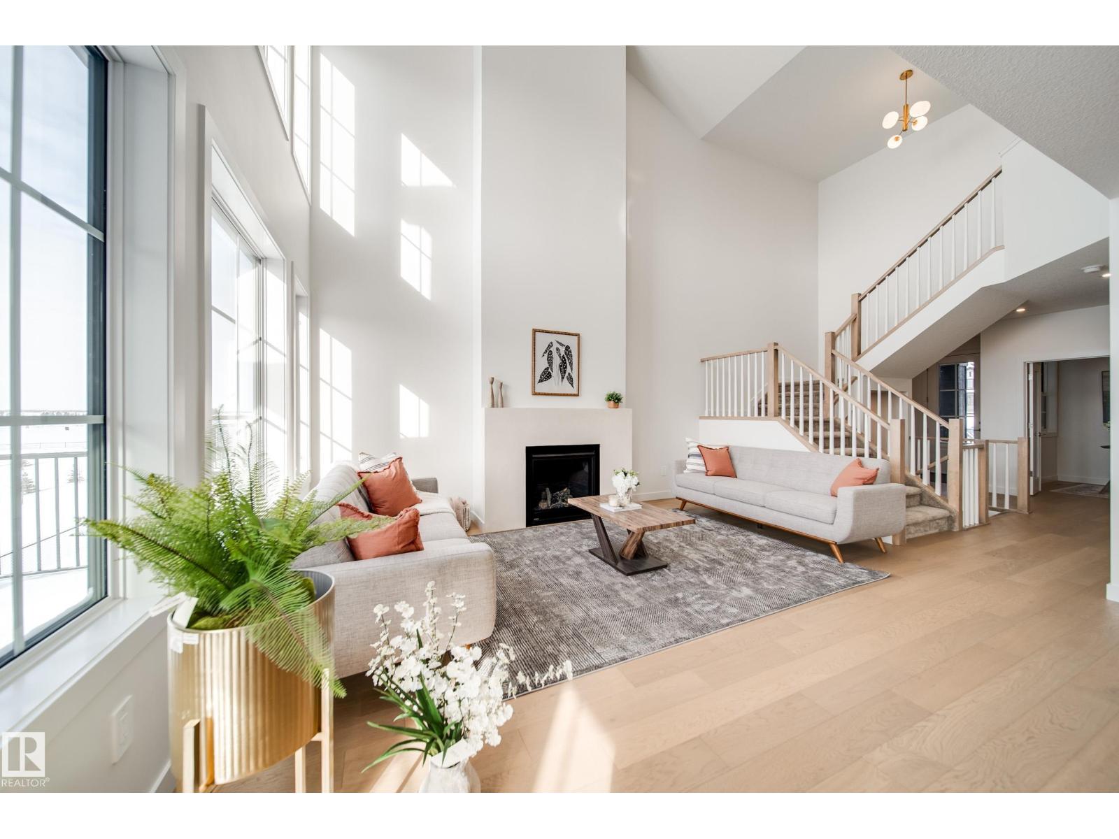 Welcome to The Vantablack by award winning Justin Gray Homes, situated on 30' pocket west facing POND BACKING WALKOUT lot in Cherot, offering 2475 sqft of refined living space in a professionally curated Nordic Deco palette by CM Interiors. Featuring soaring open-to-below ceilings, 9' ceilings on the main, HARDWOOD floors & a cozy GAS fireplace. The main floor den w/frosted doors is perfect for a stylish home office. An OVERSIZED DOUBLE CAR GARAGE w/garage drain, leads to a mudroom w/custom MDF built-ins. Through JG’s iconic archways, step into a WALKTHROUGH pantry & chef’s kitchen w/huge QUARTZ island w/premium dove-tailed cabinetry & full KitchenAid APPLIANCE PACKAGE INCLUDED. Enjoy sunset pond views off your 13'6 x 10' REAR DECK. Upstairs find 3 spacious bedrooms incld. a dreamy primary w/VAULTED ceilings & wainscoting feature wall, spa-like 5pc ensuite & massive WIC w/convenient direct access to the laundry room. Located near future schools, rec centre, parks & trails. Ready for IMMEDIATE possession! (id:51989)