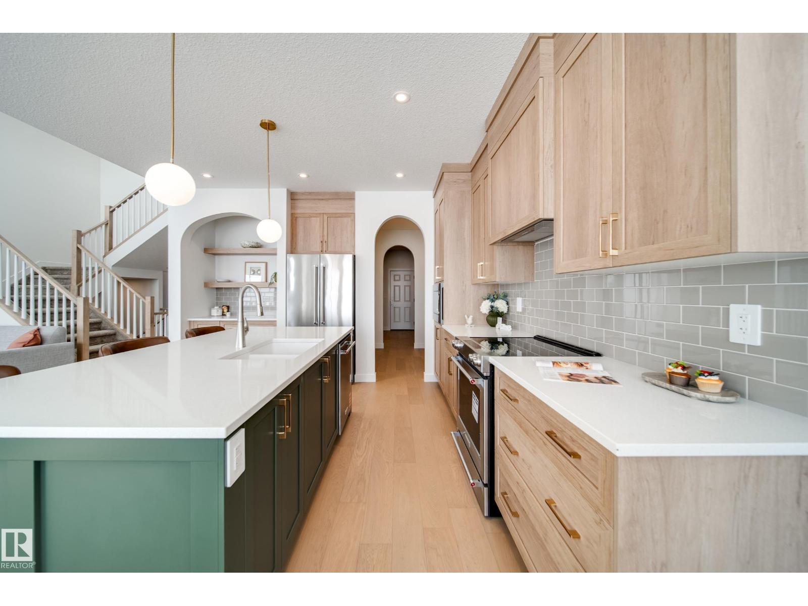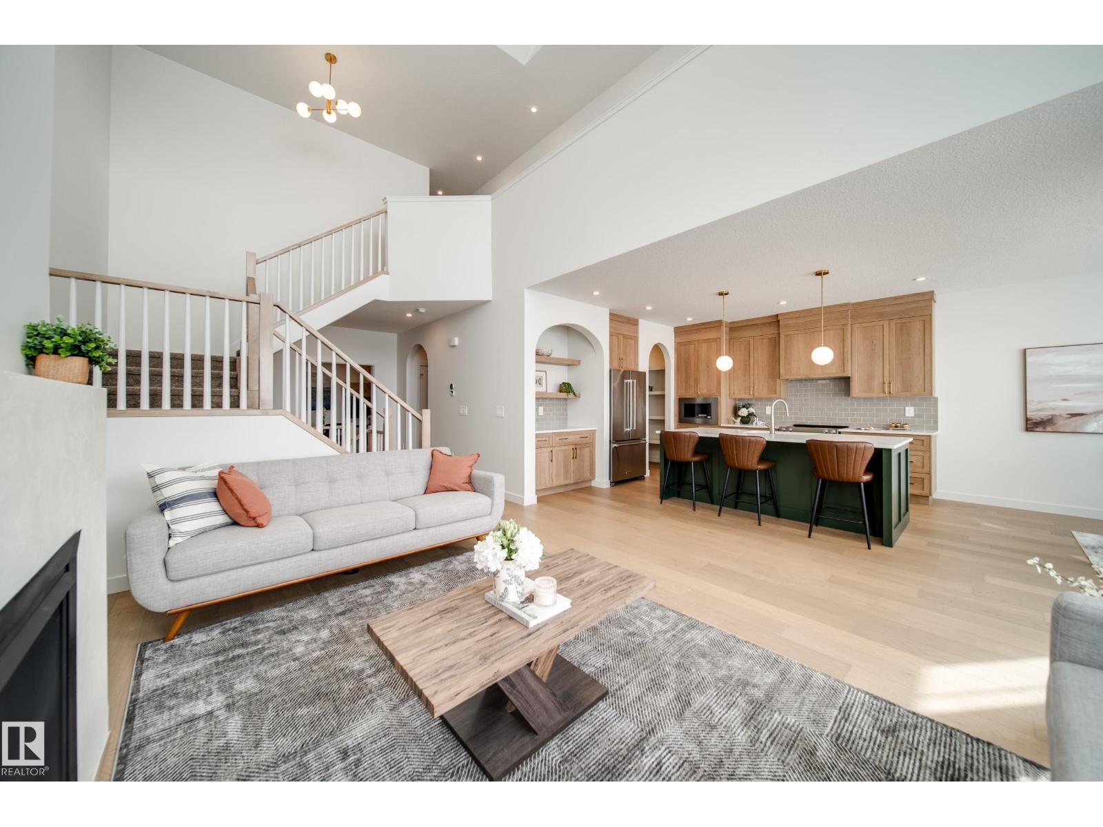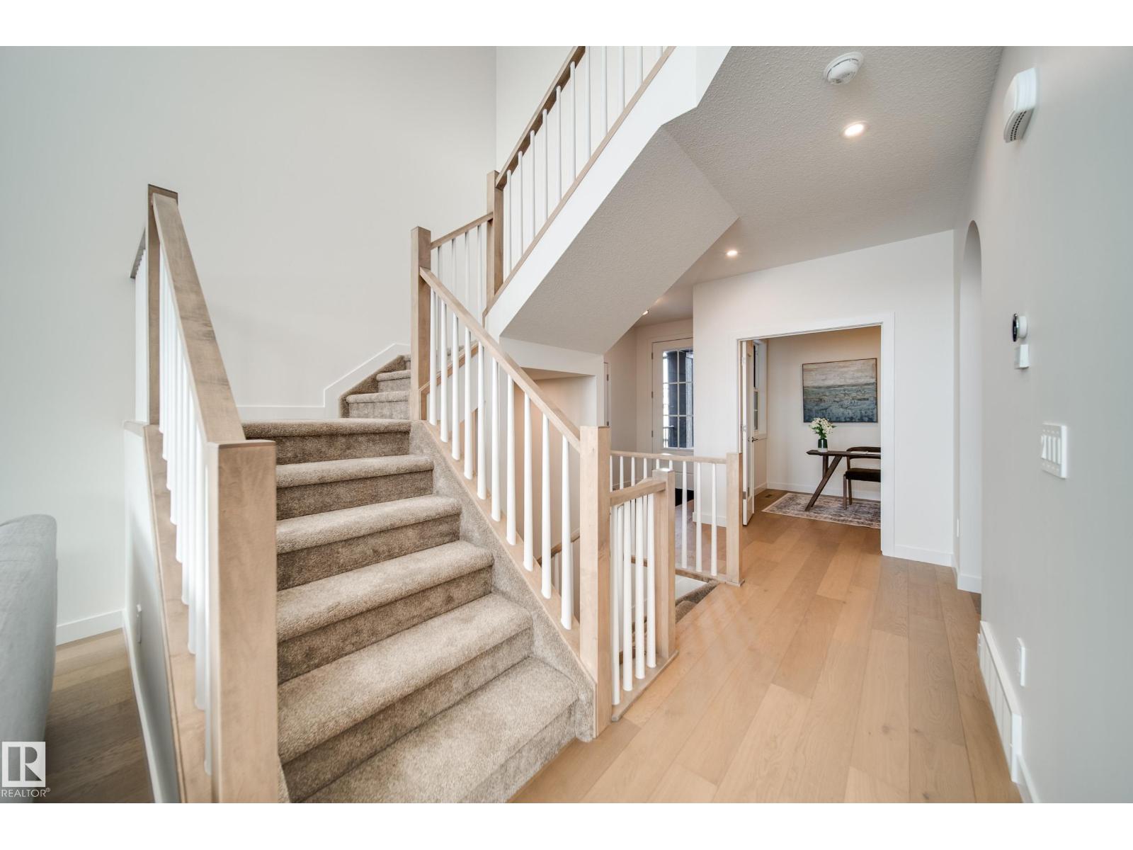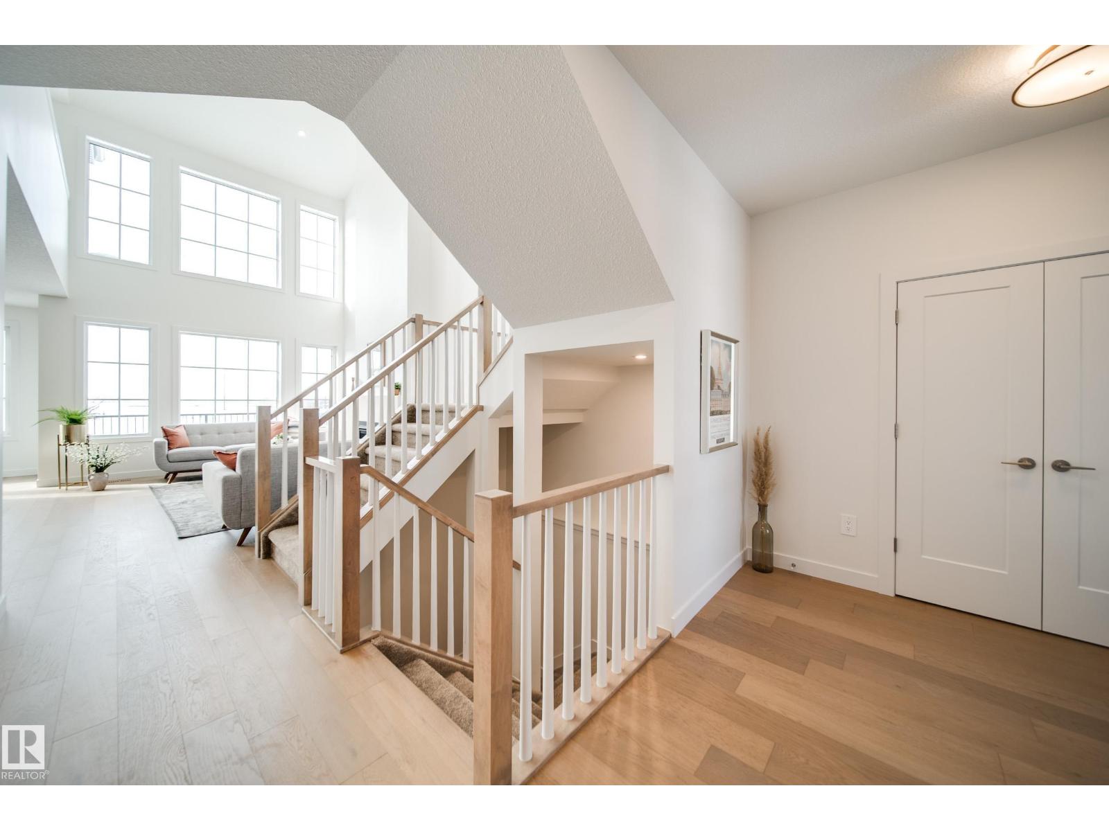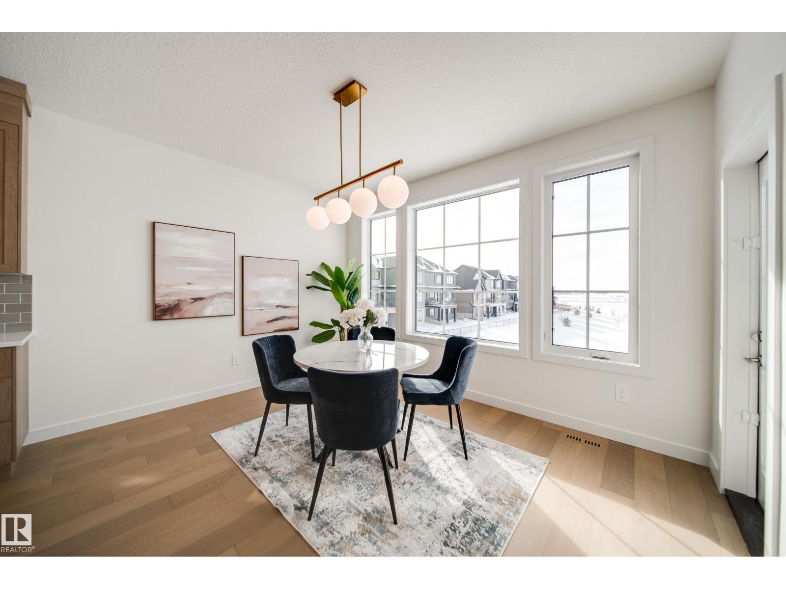 Welcome to The Vantablack by award winning Justin Gray Homes, situated on 30' pocket west facing POND BACKING WALKOUT lot in Cherot, offering 2475 sqft of refined living space in a professionally curated Nordic Deco palette by CM Interiors. Featuring soaring open-to-below ceilings, 9' ceilings on the main, HARDWOOD floors & a cozy GAS fireplace. The main floor den w/frosted doors is perfect for a stylish home office. An OVERSIZED DOUBLE CAR GARAGE w/garage drain, leads to a mudroom w/custom MDF built-ins. Through JG’s iconic archways, step into a WALKTHROUGH pantry & chef’s kitchen w/huge QUARTZ island w/premium dove-tailed cabinetry & full KitchenAid APPLIANCE PACKAGE INCLUDED. Enjoy sunset pond views off your 13'6 x 10' REAR DECK. Upstairs find 3 spacious bedrooms incld. a dreamy primary w/VAULTED ceilings & wainscoting feature wall, spa-like 5pc ensuite & massive WIC w/convenient direct access to the laundry room. Located near future schools, rec centre, parks & trails. Ready for IMMEDIATE possession! (id:51989)
