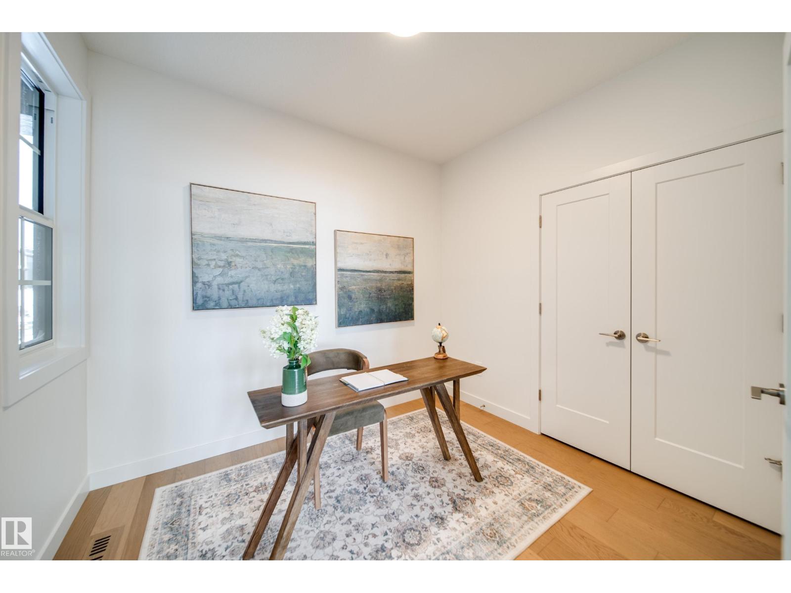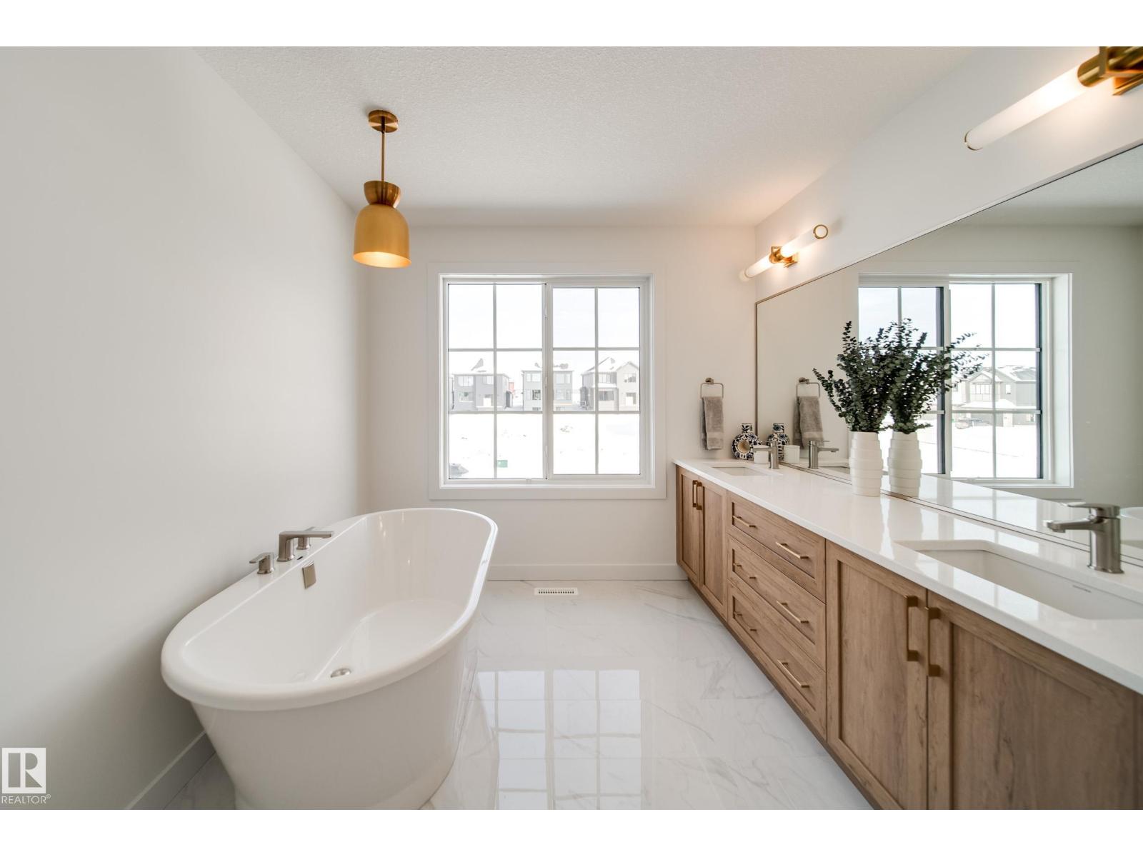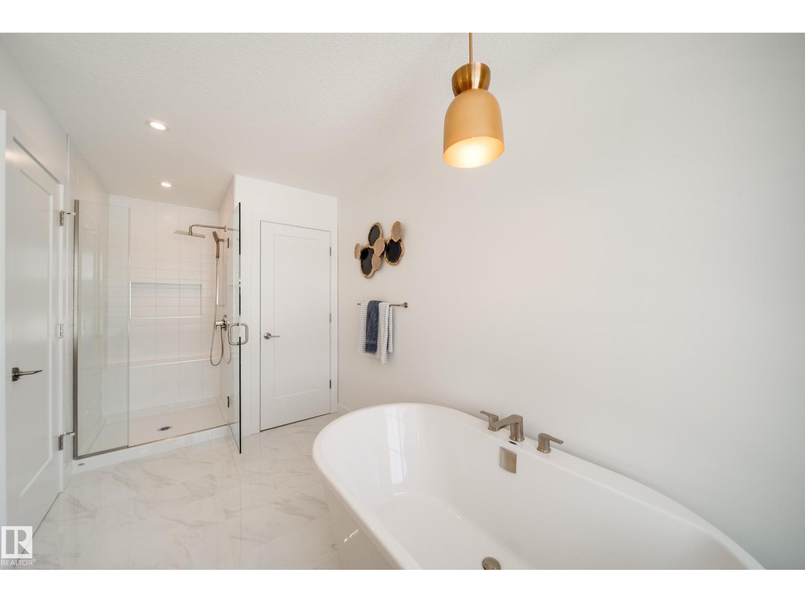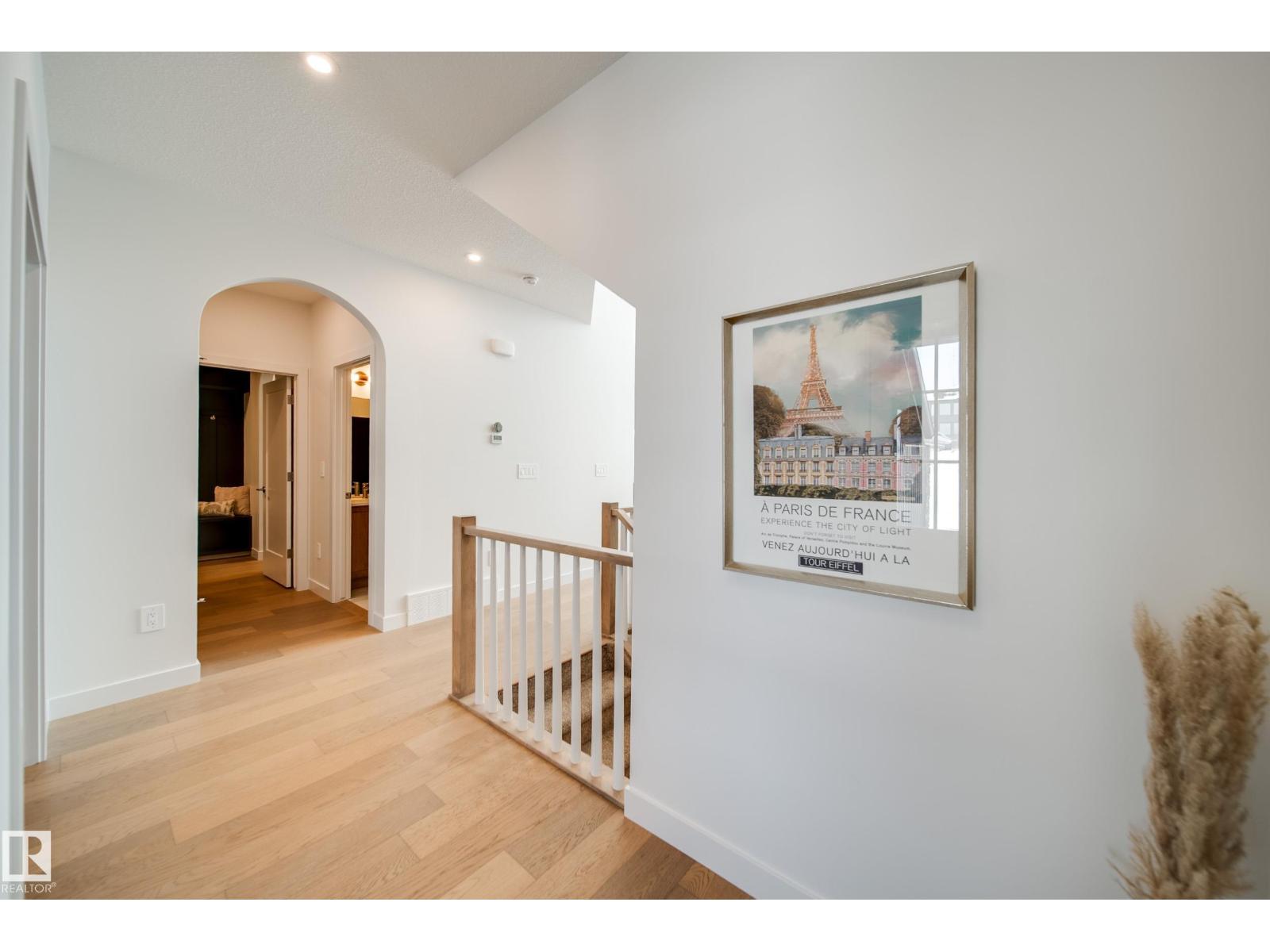 Welcome to The Vantablack by award winning Justin Gray Homes, situated on 30' pocket west facing POND BACKING WALKOUT lot in Cherot, offering 2475 sqft of refined living space in a professionally curated Nordic Deco palette by CM Interiors. Featuring soaring open-to-below ceilings, 9' ceilings on the main, HARDWOOD floors & a cozy GAS fireplace. The main floor den w/frosted doors is perfect for a stylish home office. An OVERSIZED DOUBLE CAR GARAGE w/garage drain, leads to a mudroom w/custom MDF built-ins. Through JG’s iconic archways, step into a WALKTHROUGH pantry & chef’s kitchen w/huge QUARTZ island w/premium dove-tailed cabinetry & full KitchenAid APPLIANCE PACKAGE INCLUDED. Enjoy sunset pond views off your 13'6 x 10' REAR DECK. Upstairs find 3 spacious bedrooms incld. a dreamy primary w/VAULTED ceilings & wainscoting feature wall, spa-like 5pc ensuite & massive WIC w/convenient direct access to the laundry room. Located near future schools, rec centre, parks & trails. Ready for IMMEDIATE possession! (id:51989)