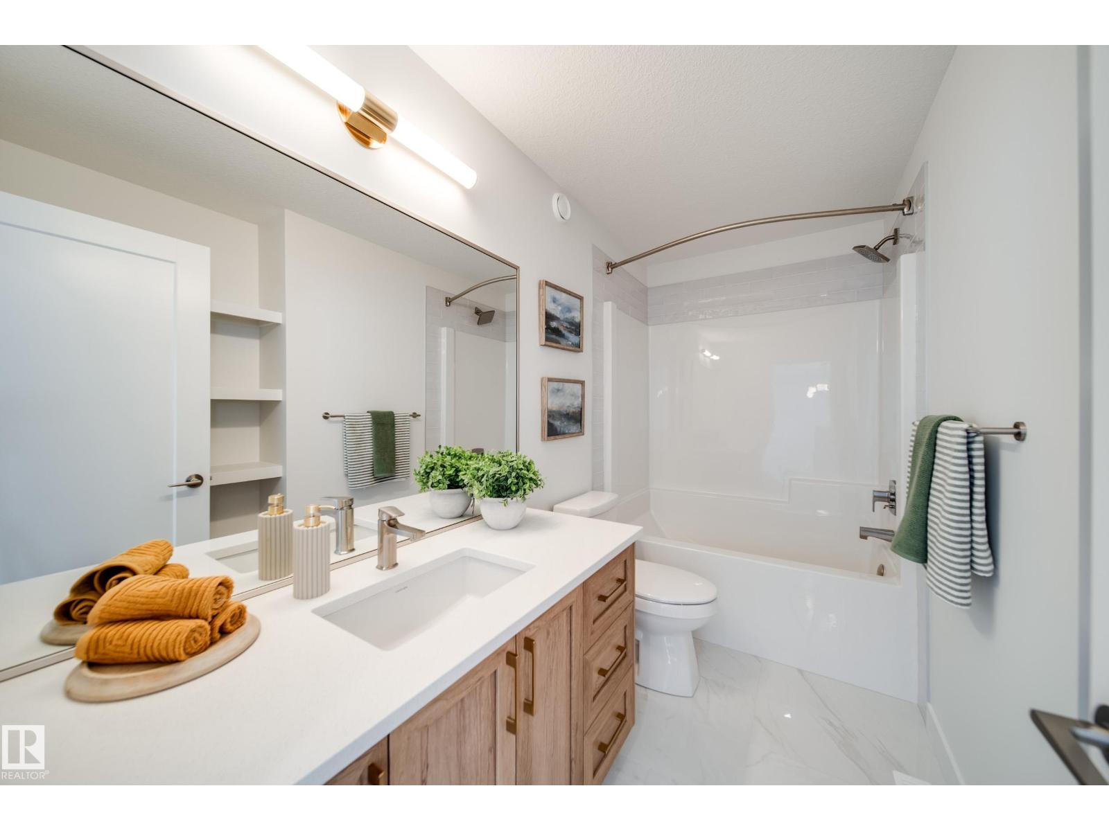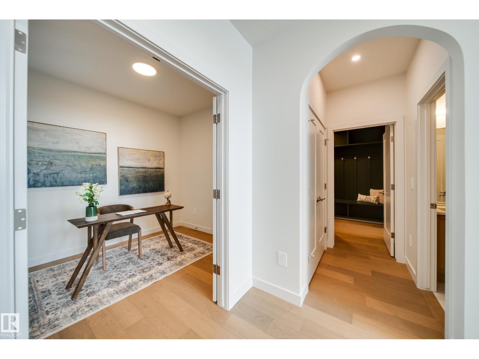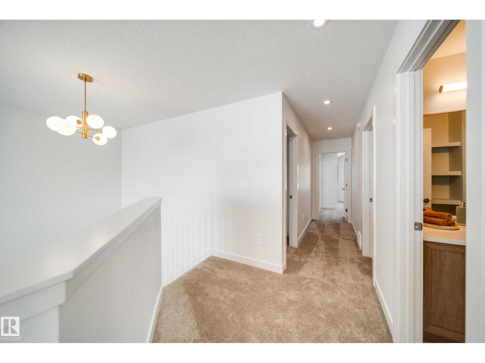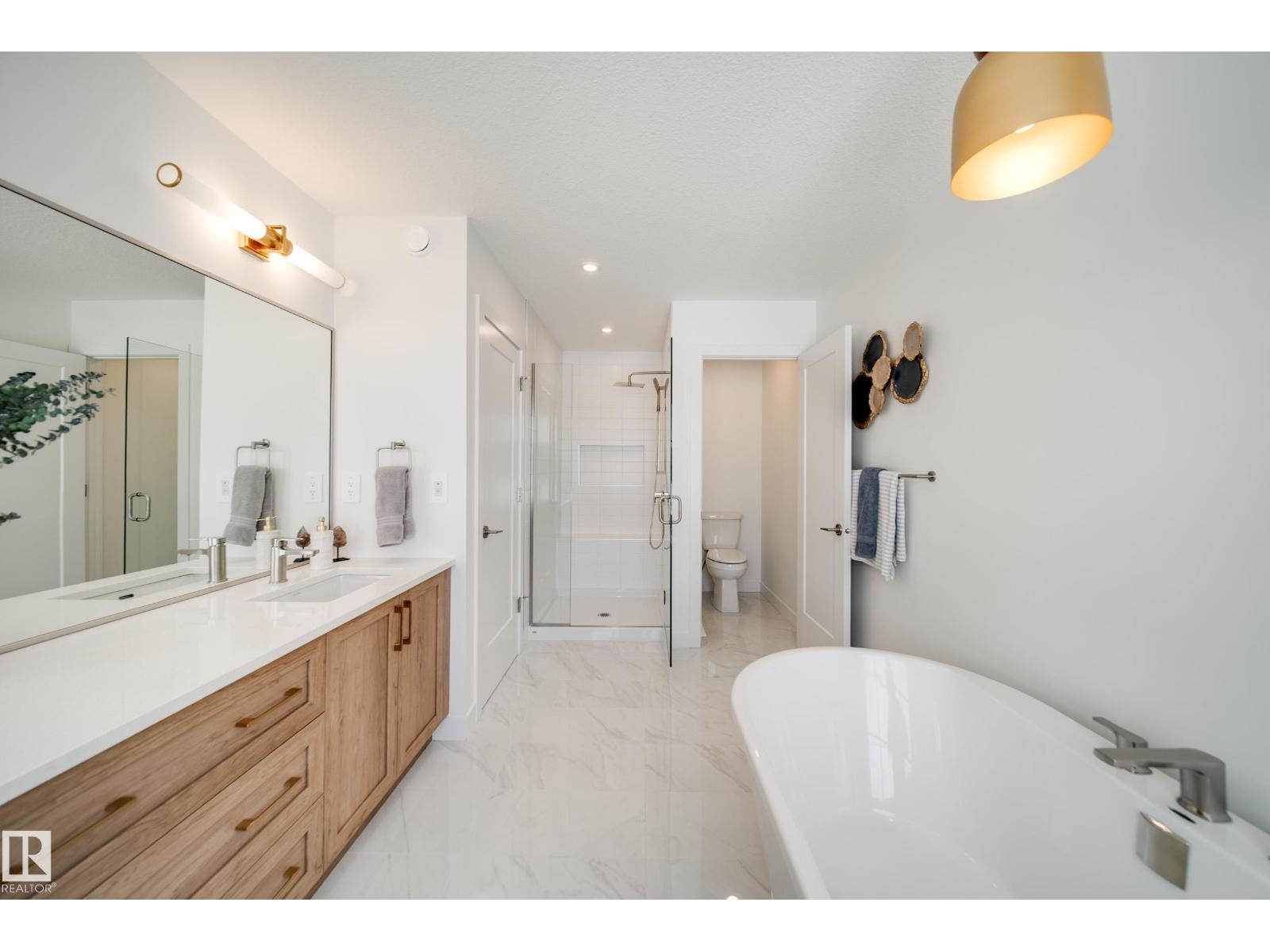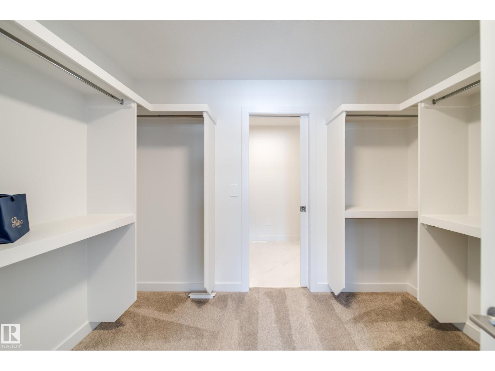 Welcome to The Vantablack by award winning Justin Gray Homes, situated on 30' pocket west facing POND BACKING WALKOUT lot in Cherot, offering 2475 sqft of refined living space in a professionally curated Nordic Deco palette by CM Interiors. Featuring soaring open-to-below ceilings, 9' ceilings on the main, HARDWOOD floors & a cozy GAS fireplace. The main floor den w/frosted doors is perfect for a stylish home office. An OVERSIZED DOUBLE CAR GARAGE w/garage drain, leads to a mudroom w/custom MDF built-ins. Through JG’s iconic archways, step into a WALKTHROUGH pantry & chef’s kitchen w/huge QUARTZ island w/premium dove-tailed cabinetry & full KitchenAid APPLIANCE PACKAGE INCLUDED. Enjoy sunset pond views off your 13'6 x 10' REAR DECK. Upstairs find 3 spacious bedrooms incld. a dreamy primary w/VAULTED ceilings & wainscoting feature wall, spa-like 5pc ensuite & massive WIC w/convenient direct access to the laundry room. Located near future schools, rec centre, parks & trails. Ready for IMMEDIATE possession! (id:51989)