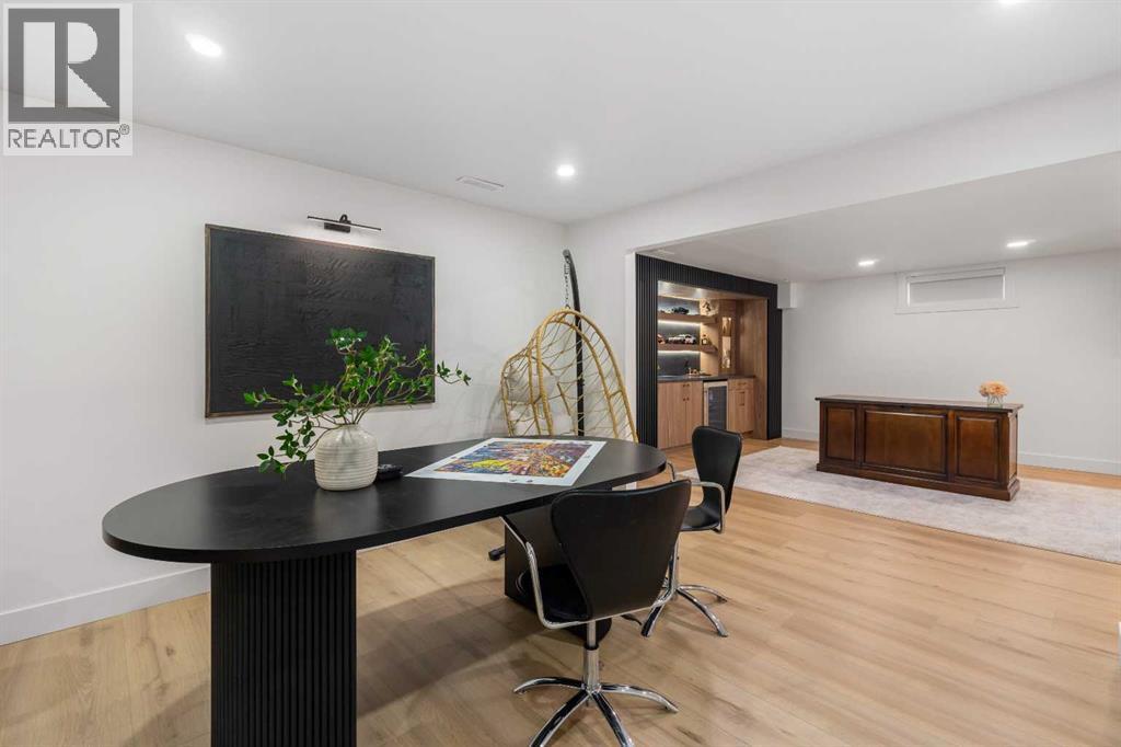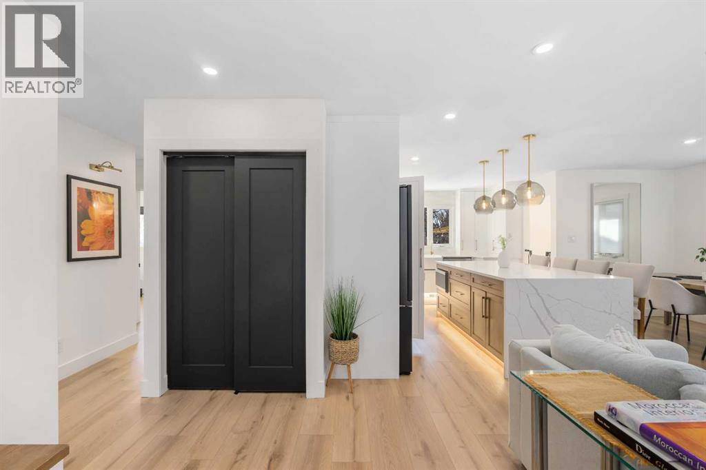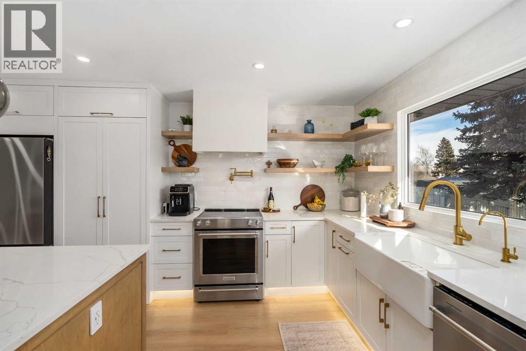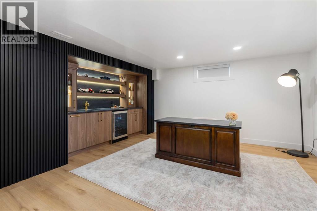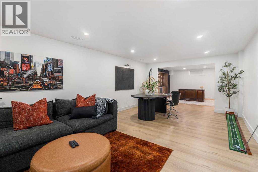 Experience a refreshing new twist on the renovated home—one that honours the original character and thoughtful space planning while introducing a modern design with carefully curated materials and a warm, inviting colour palette. Unlike the typical all-white renovations, this home offers a balanced and sophisticated aesthetic from the moment you step through the front door. The main floor welcomes you with an open and airy layout that seamlessly connects the kitchen, dining area, and living room. At the heart of the home is a beautifully designed kitchen featuring a large centre island—intentionally uninterrupted by sinks or cooktops—allowing the premium quartz surface to shine as both a functional workspace and gathering place. Natural wood grain cabinetry on the island adds warmth and contrast to the elegant off-white upper cabinets. A farmhouse sink provides both style and practicality for handling larger pots and pans, while the window above offers a peaceful view of the spacious backyard. Ample cabinetry ensures plenty of storage, with room to expand if desired. The dining area comfortably accommodates gatherings of eight and flows effortlessly into the living room, where a sleek electric fireplace creates a welcoming focal point. Above the fireplace, a perfectly framed niche offers space for artwork or a mounted television, complemented by wood shelving with integrated lighting. The living room provides a backdrop of large windows that fill the space with natural light. The main level has three bedrooms, including a primary retreat with a convenient 2-piece ensuite and walk-in closet, along with two additional bedrooms located near the stylish 4-piece bathroom. The fully developed basement expands the living space with a large family room and an impressive games and entertainment area complete with a modern wet bar that could rival any downtown lounge. A generous fourth bedroom comfortably fits a king-sized bed with nightstands, and a contemporary 3-piece ba throom completes this level. Outside, the large backyard offers mature trees and a welcoming outdoor space featuring a concrete patio and Rundle rock firepit area—perfect for relaxing evenings or entertaining. Additional features include Central A/C, and an extra-wide double detached garage adds convenience and functionality. Situated in the established community of Canyon Meadows, this home offers excellent access to nearby schools including Canyon Meadows Elementary, St. Catherine Elementary, Robert Warren School, and Dr. E.P. Scarlett High School. Residents enjoy exceptional amenities such as Fish Creek Provincial Park, Canyon Meadows Golf & Country Club, the Canyon Meadows Aquatic & Fitness Centre, Trico Centre for Family Wellness, Southcentre Mall, and Willow Park Village. Commuting is effortless with convenient access to Macleod Trail, Anderson Road, and Stoney Trail, along with a short walk to the Canyon Meadows LRT Station. (id:51989)