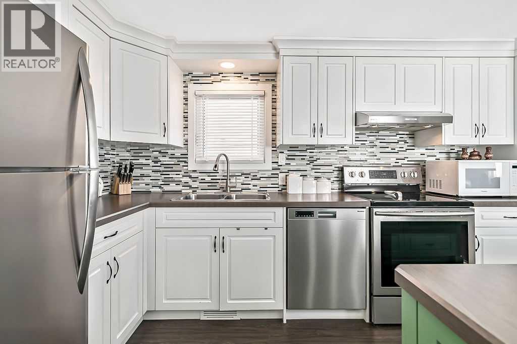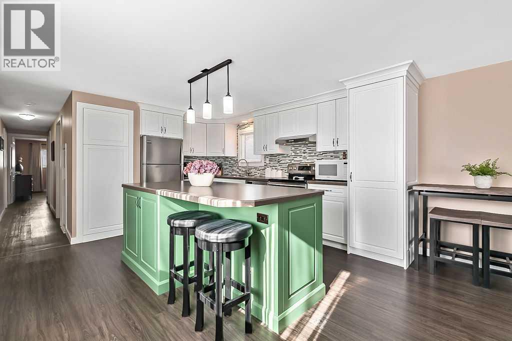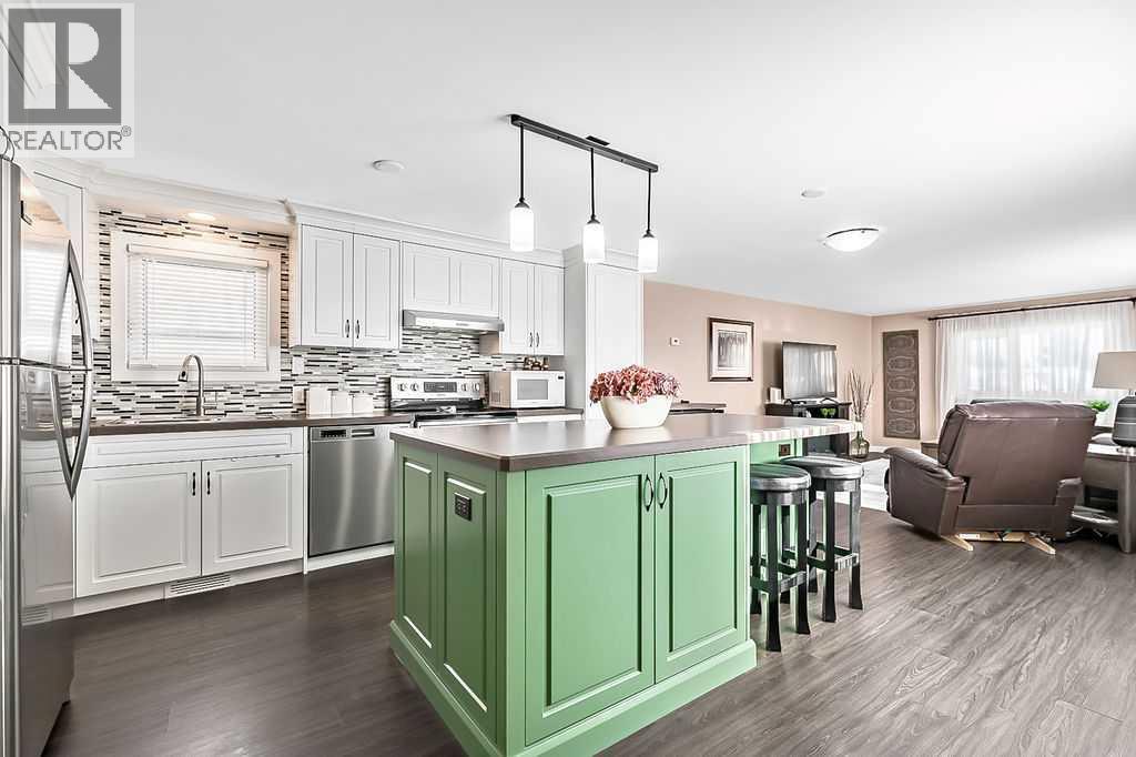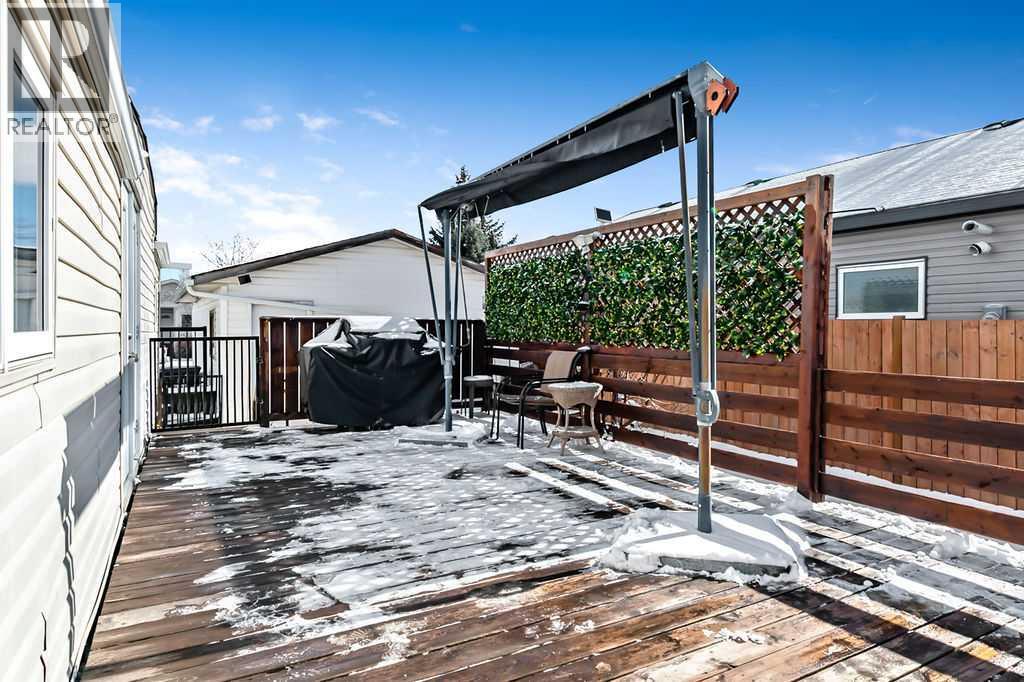 Over 1290 sqft of living space offering 2 bedrooms, 1 bathroom and no lot fees. Situated on a generous lot of over 5,400 sqft this property also features a single detached garage. Upon entering, you’re welcomed by an open-concept layout with the kitchen island serving as the focal point of the home. The kitchen features stainless steel appliances and cabinetry that extends all the way to the ceiling, offering both style and functionality. The open design allows you to easily entertain guests in the living room while preparing meals in the kitchen. The spacious living room provides plenty of room for family gatherings, making it perfect for entertaining or relaxing during movie nights. The home also offers a generously sized 4-piece bathroom. The primary bedroom is impressively large, easily accommodating a king-size bed while still leaving ample space on both sides. It also features a walk-in closet—no more fighting over closet space. The second bedroom is ideal for a growing family, guest room, or home office. A flex room off the hallway leads out to the large deck, creating a great transition between indoor and outdoor living. Enjoy summer barbecues on the deck, which includes an awning and privacy wall so you can stay shaded and enjoy extra seclusion when desired. The expansive yard provides plenty of space to relax and unwind. Two large sheds offer excellent storage, and the fire pit creates the perfect setting to end summer evenings gathered around the fire. The single garage has been upgraded with insulation, drywall, and 240V power—ideal for anyone who enjoys working on vehicles or spending time in the workshop. Conveniently located close to schools, parks, and shopping this home offers everything you need within easy reach. Homes like this don’t last long—book your showing before it’s gone! (id:51989)