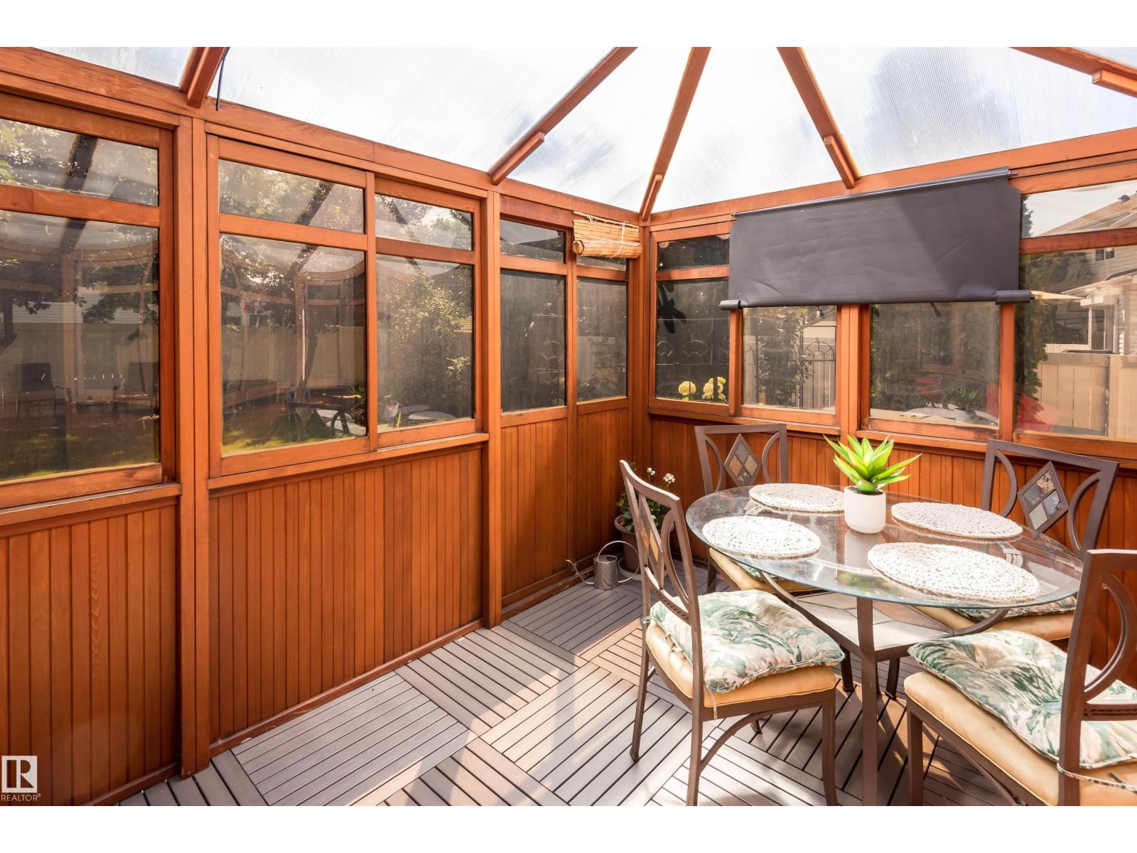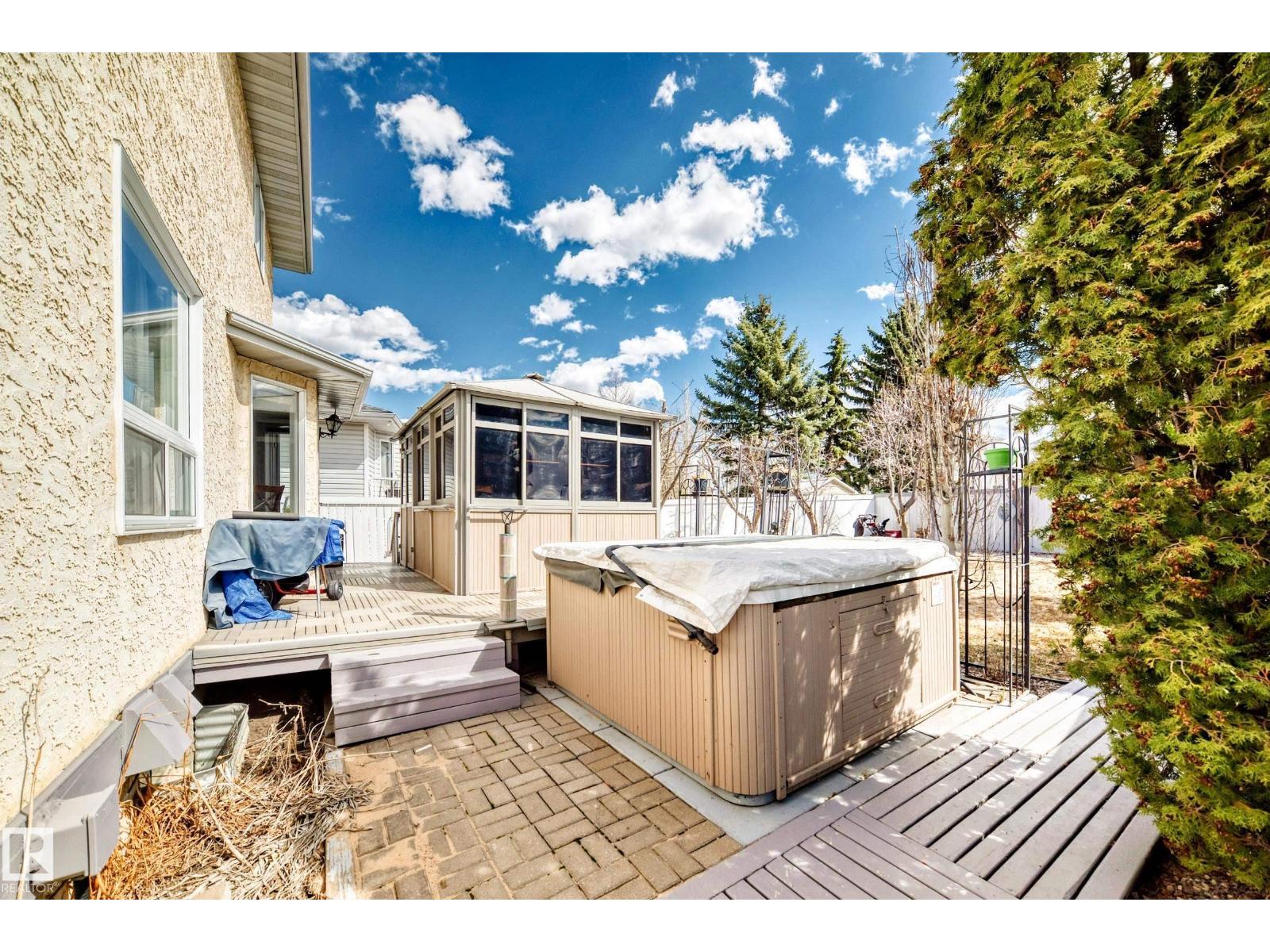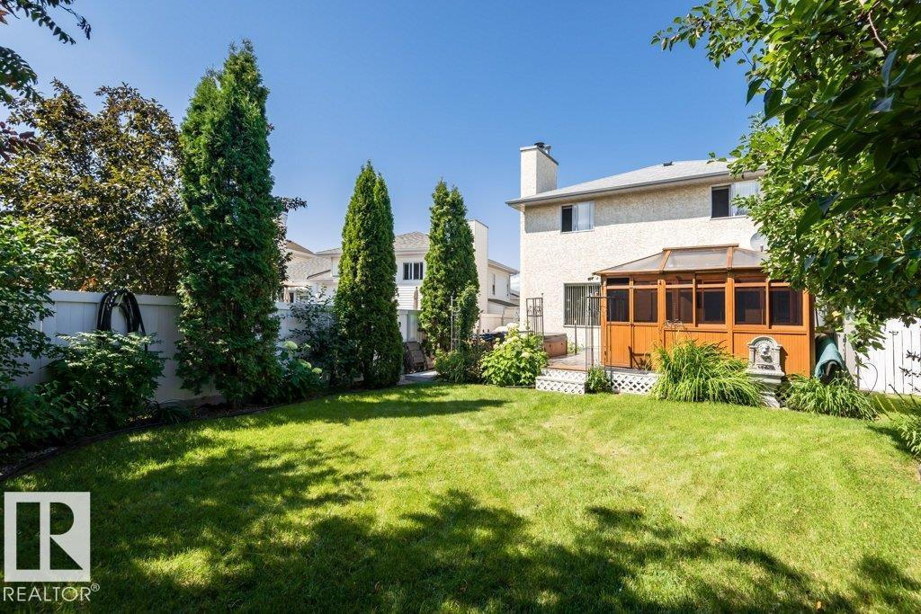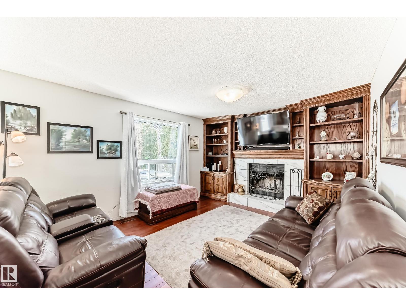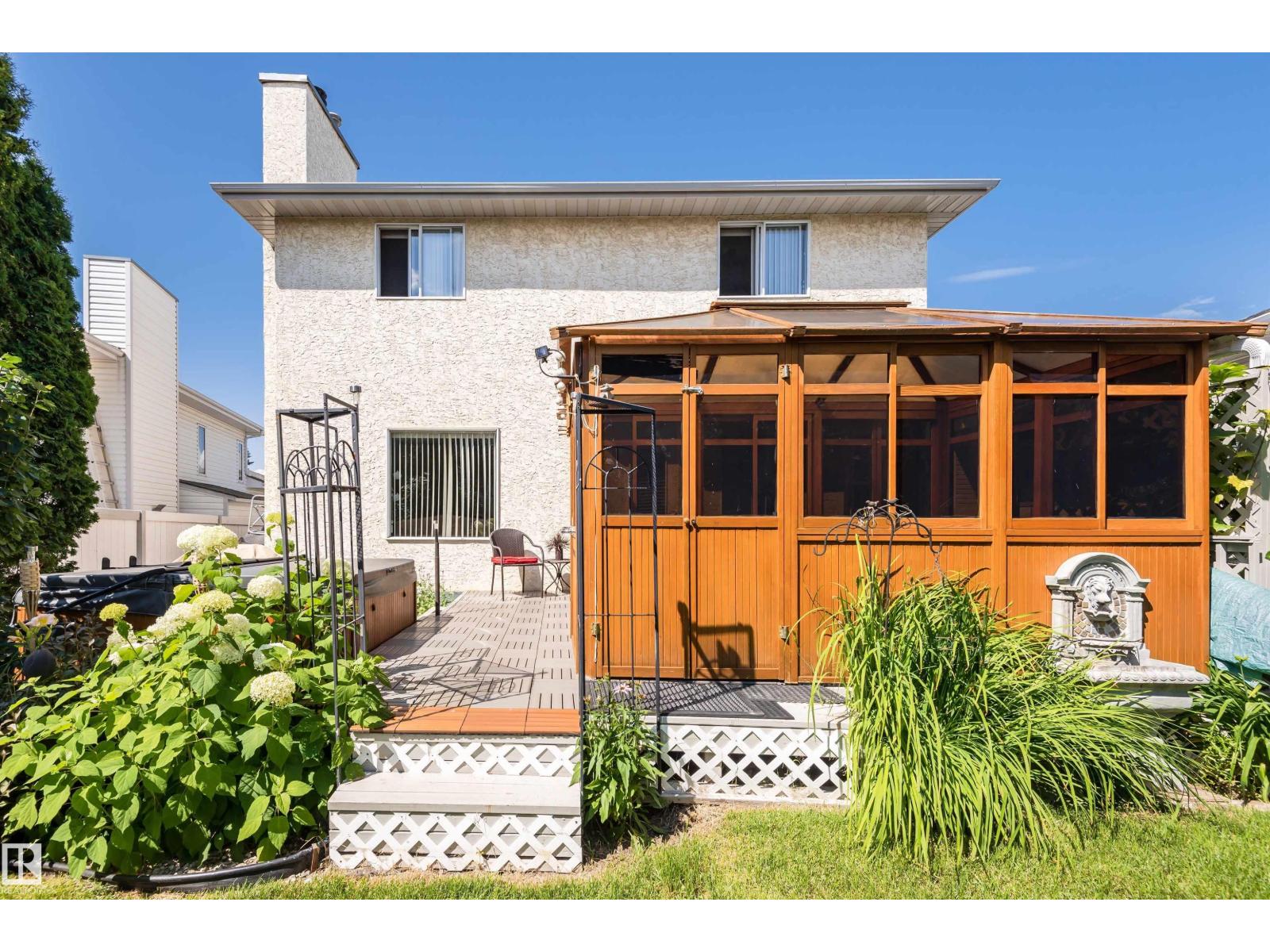 Charming 2-storey home with fully developed basement and a huge yard. This home has 3 bedrooms up and 2 in the basement. Many updates including new roof 2025, new windows in living rm, family rm, dining rm & master bdrm 2025, laundry rm cabinets 2022, New washer & Dryer 2024, Main floor & upstairs re-painted 2024, bsmt painted 2020, Quartz Counter tops & vinyl flooring in kitchen 2022, fireplace front refaced 2022, and new toilet in master bath. The kitchen cabinets have been updated in (2007) with good quality custom oak cabinets and a movable eat-up island if you choose to add a table instead. Great space for family living and entertaining with the open kitchen/family room concept. As you walk onto the deck there is a portable 3 season sun room shading you from the elements. There are also 2 sheds on the side of house (2018) for extra storage. This home is close to shopping, school, Whitemud, transit, golf and parks. A must see. (id:51989)