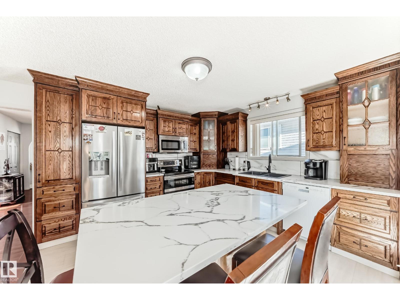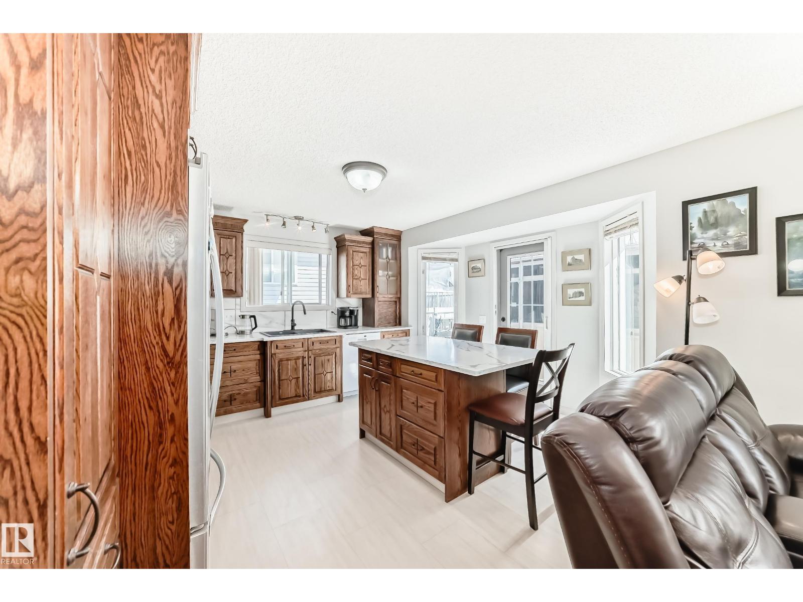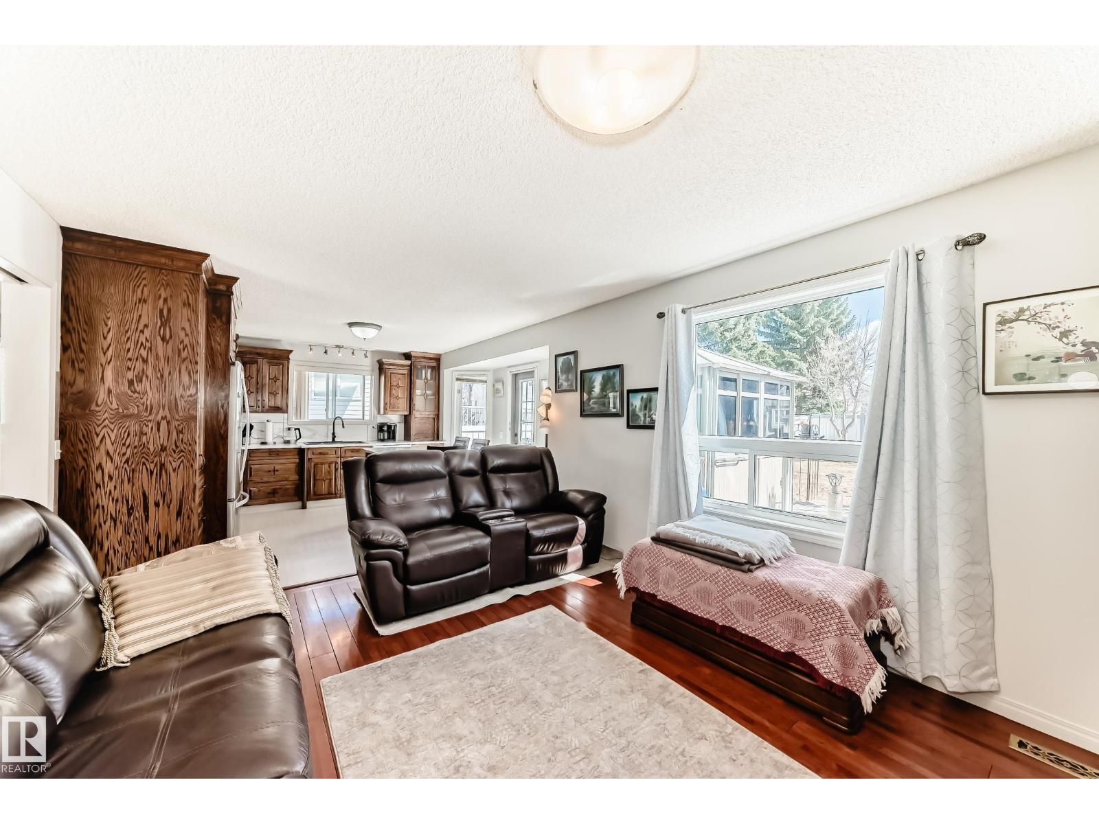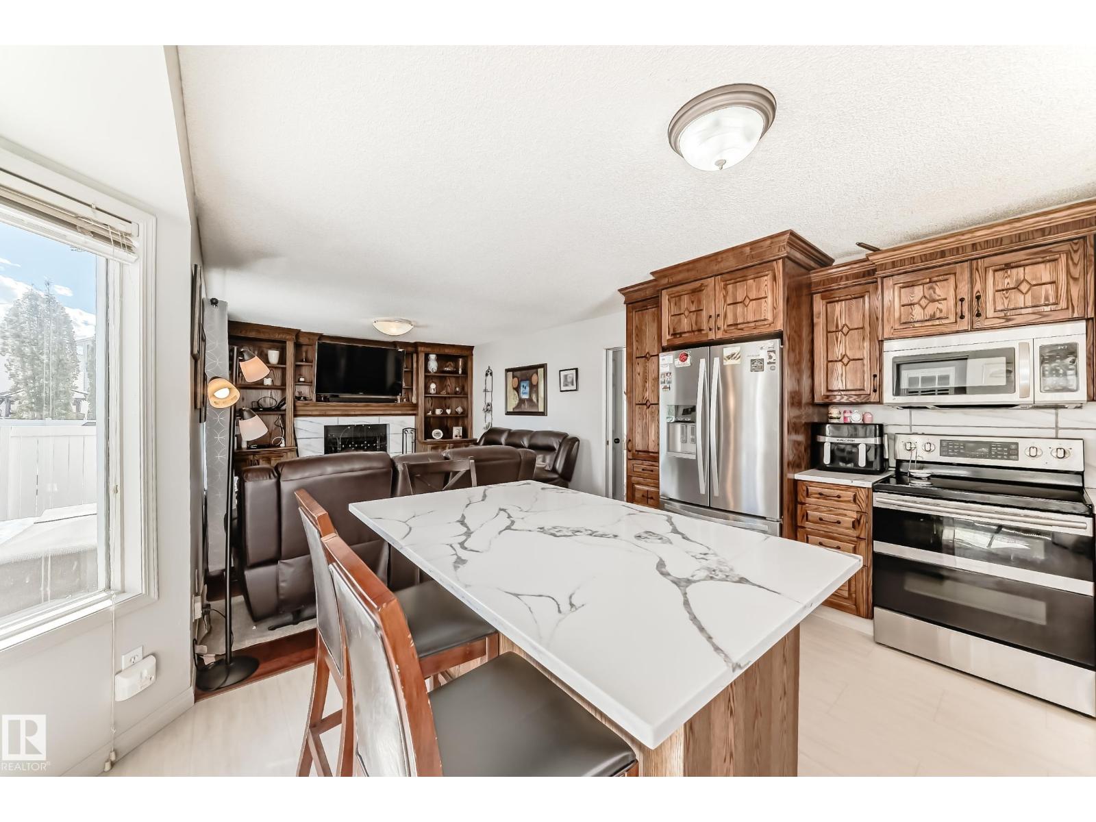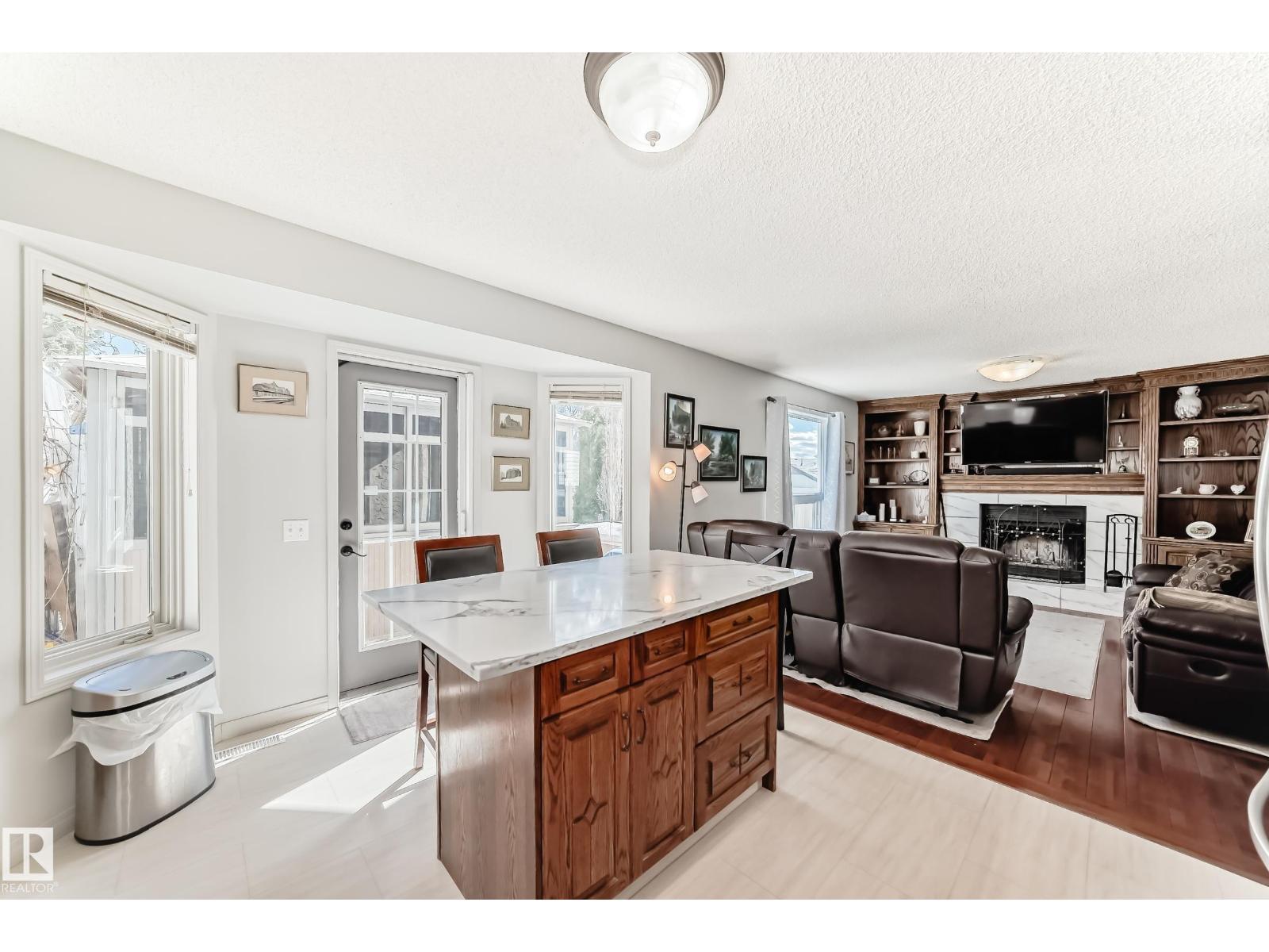 Charming 2-storey home with fully developed basement and a huge yard. This home has 3 bedrooms up and 2 in the basement. Many updates including new roof 2025, new windows in living rm, family rm, dining rm & master bdrm 2025, laundry rm cabinets 2022, New washer & Dryer 2024, Main floor & upstairs re-painted 2024, bsmt painted 2020, Quartz Counter tops & vinyl flooring in kitchen 2022, fireplace front refaced 2022, and new toilet in master bath. The kitchen cabinets have been updated in (2007) with good quality custom oak cabinets and a movable eat-up island if you choose to add a table instead. Great space for family living and entertaining with the open kitchen/family room concept. As you walk onto the deck there is a portable 3 season sun room shading you from the elements. There are also 2 sheds on the side of house (2018) for extra storage. This home is close to shopping, school, Whitemud, transit, golf and parks. A must see. (id:51989)