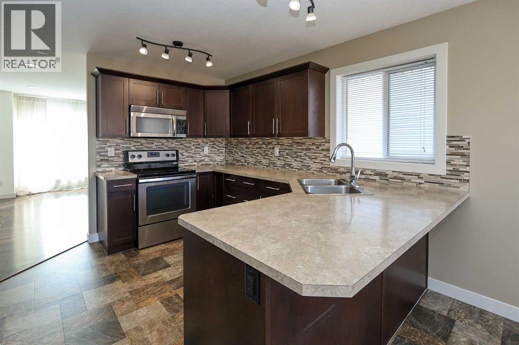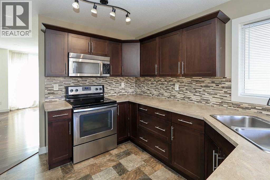 IMMEDIATE POSSESSION AVAILABLE ~ FULLY DEVELOPED BI-LEVEL WITH 1,179 SQ. FT. ABOVE GRADE ~ 5 BEDROOMS, 3 BATHROOMS ~ Covered front veranda welcomes you and leads to a sun filled foyer with high ceilings and tile floors ~ The living room features hardwood flooring, recessed lighting and large south facing windows that fill the space with natural light ~ The kitchen offers a functional layout with ample cabinet and counter space, full tile backsplash, large wall pantry and a counter height eating bar ~ The dining room has more large windows plus garden door access to the deck with privacy panels ~ The primary bedroom can easily accommodate a king size bed plus multiple pieces of furniture and features a 4 piece ensuite ~ 2 additional main floor bedrooms and a 4 piece bathroom complete the main level ~ The fully finished basement has high ceilings, large above grade windows and in-floor heating roughed in ~ Spacious family room has a fireplace feature wall with built in shelving and opens to a flex space with room for a games table ~ 2 bedrooms share a 3 piece bathroom with a walk-in shower ~ Ample space for storage throughout ~ The fully fenced backyard has well established trees, a fire pit, enclosed storage below the deck and access to a large parking pad with back alley access ~ Located walking distance to schools, parks, playgrounds, walking trails, and a commercial area with all amenities including shopping, dining, medical ~ Immediate possession and move in ready. (id:51989)