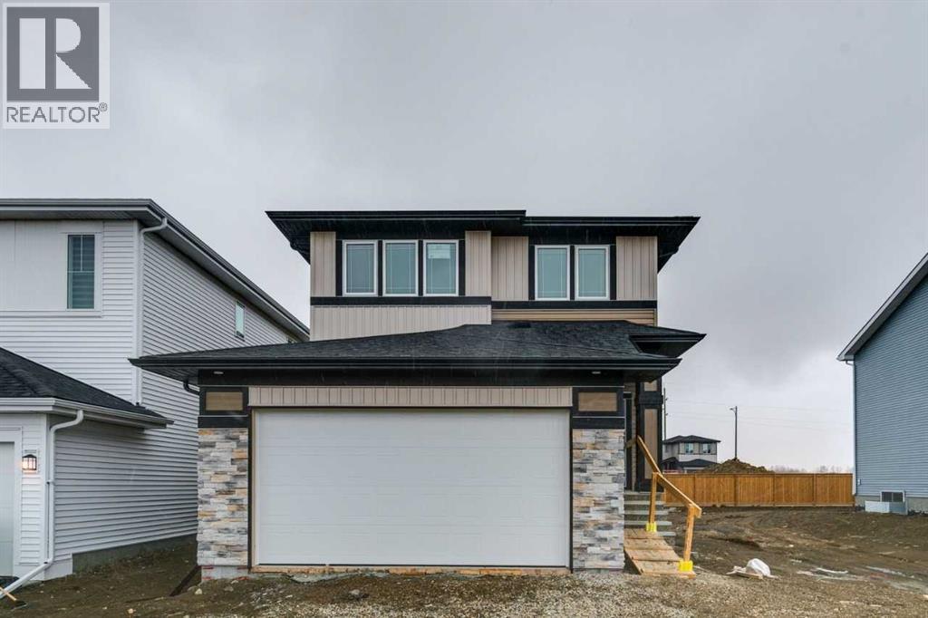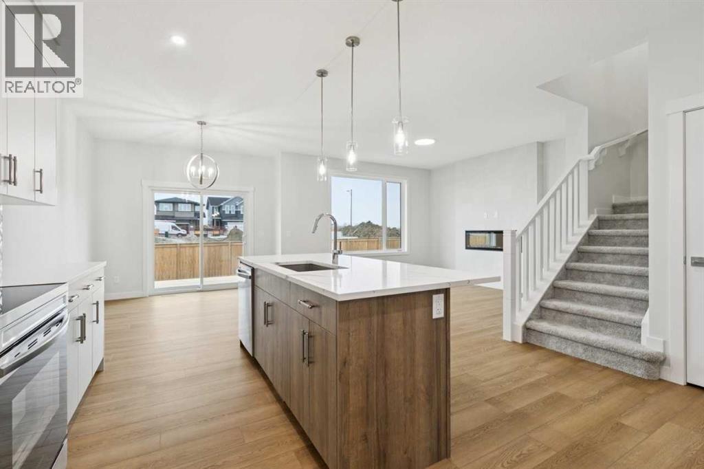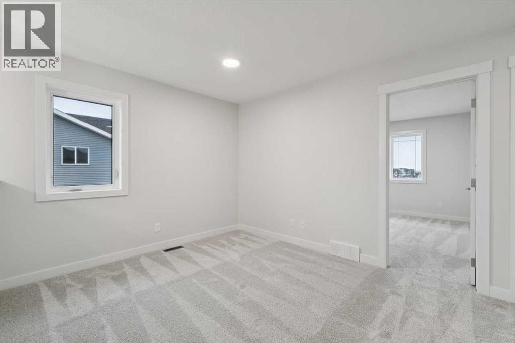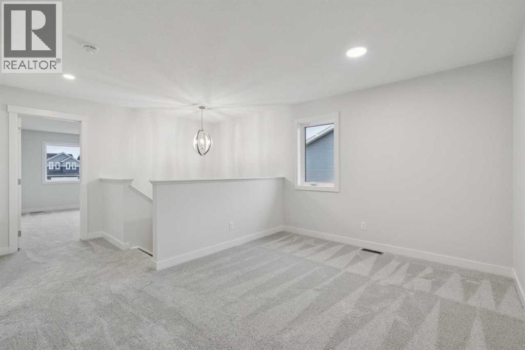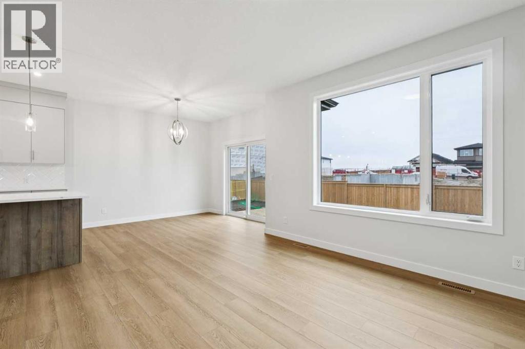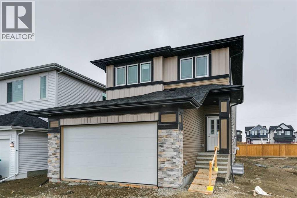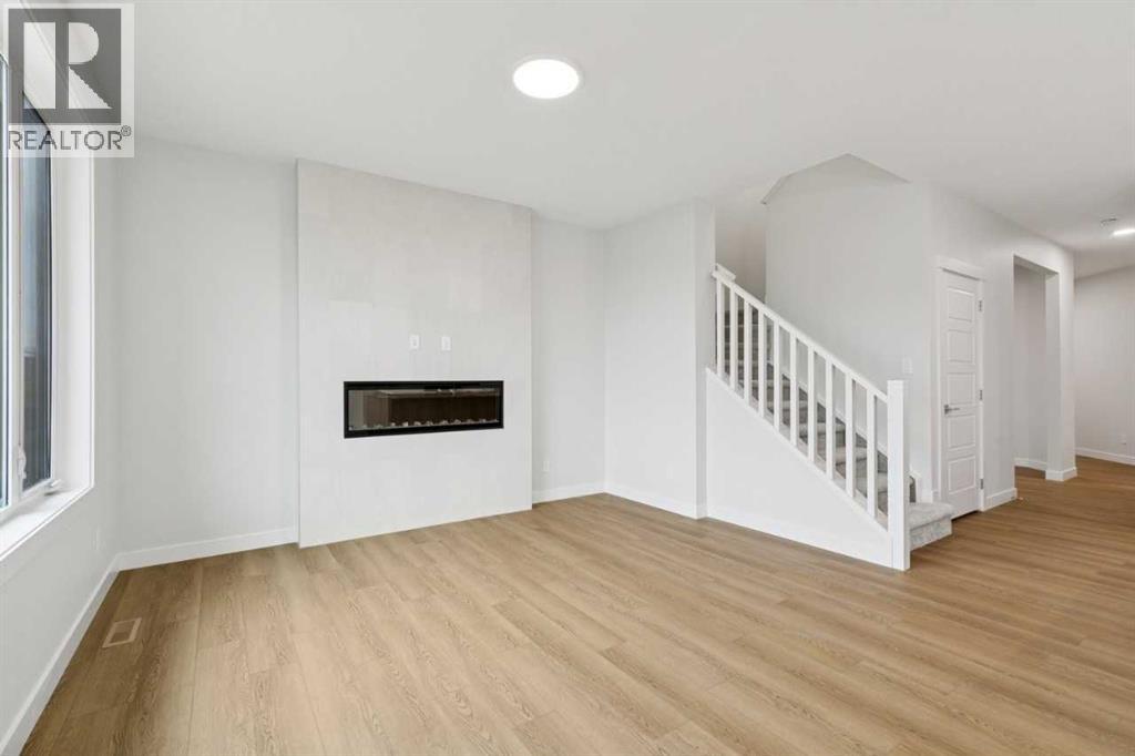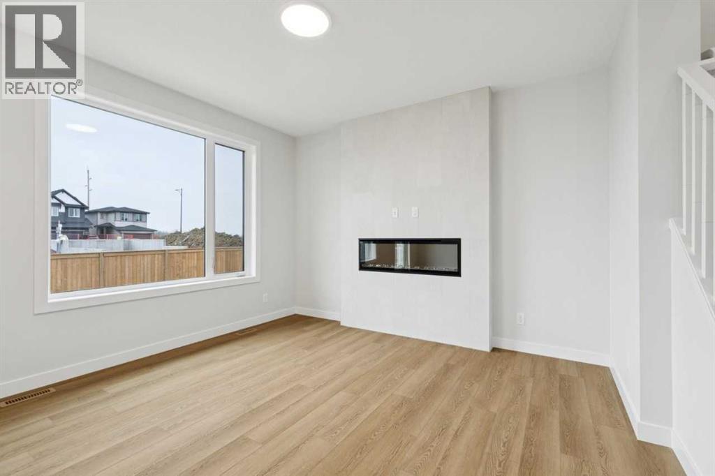 Welcome to the Pineview by NuVista Homes, located at 85 Southborough Square in the growing Southbow community of Cochrane. This thoughtfully designed 2,040 sq. ft. two-storey home offers 3 bedrooms and 2.5 bathrooms with a spacious and functional layout. The open-concept main floor features luxury vinyl plank flooring, a modern kitchen with quartz countertops and tall upper cabinetry, and a bright dining and great room anchored by an electric fireplace with full tile surround. A flex room on the main level adds versatility for a home office or additional living space. Upstairs, the primary bedroom includes a walk-in closet and private ensuite, alongside two additional bedrooms and a central media room. Additional highlights include 9’ foundation and main floor ceilings, a convenient side entrance for future basement development potential, an oversized garage with 2’ extra width, and an 11’ x 10’ rear deck perfect for outdoor entertaining. (id:51989)