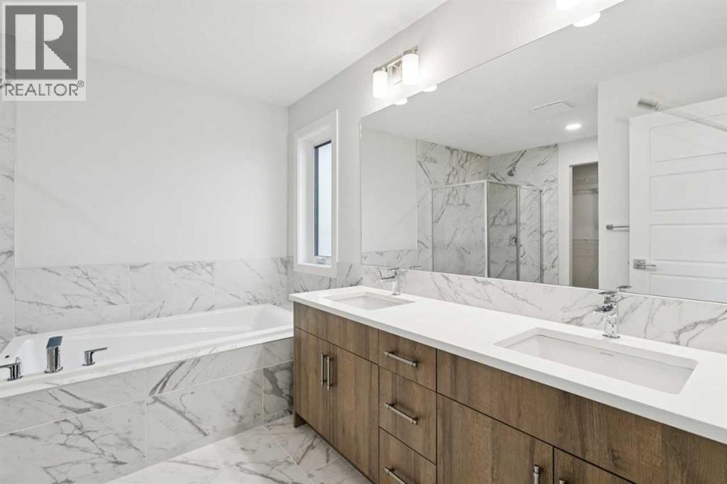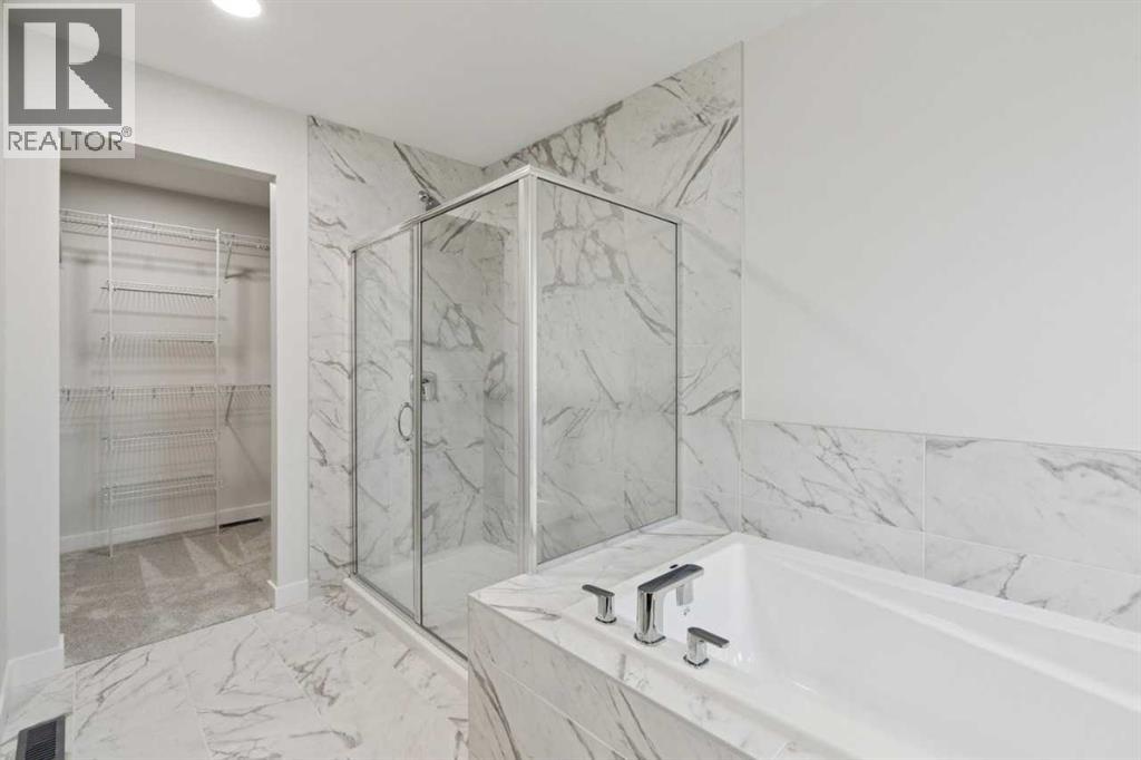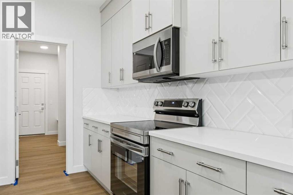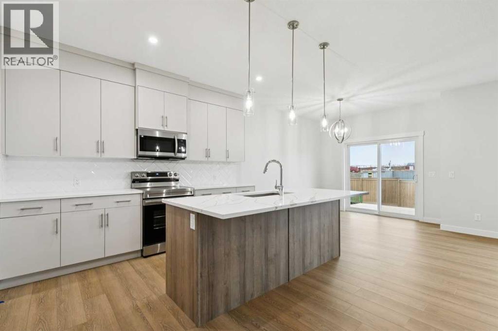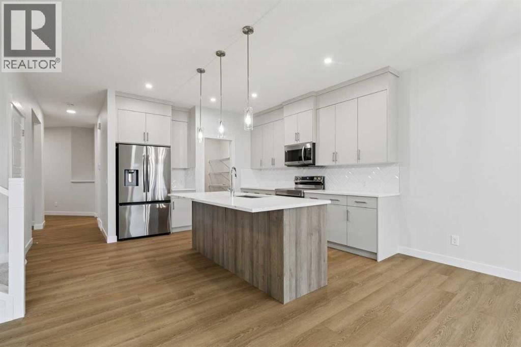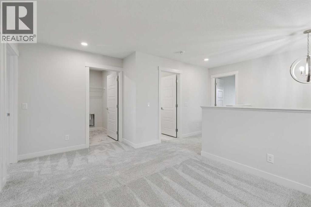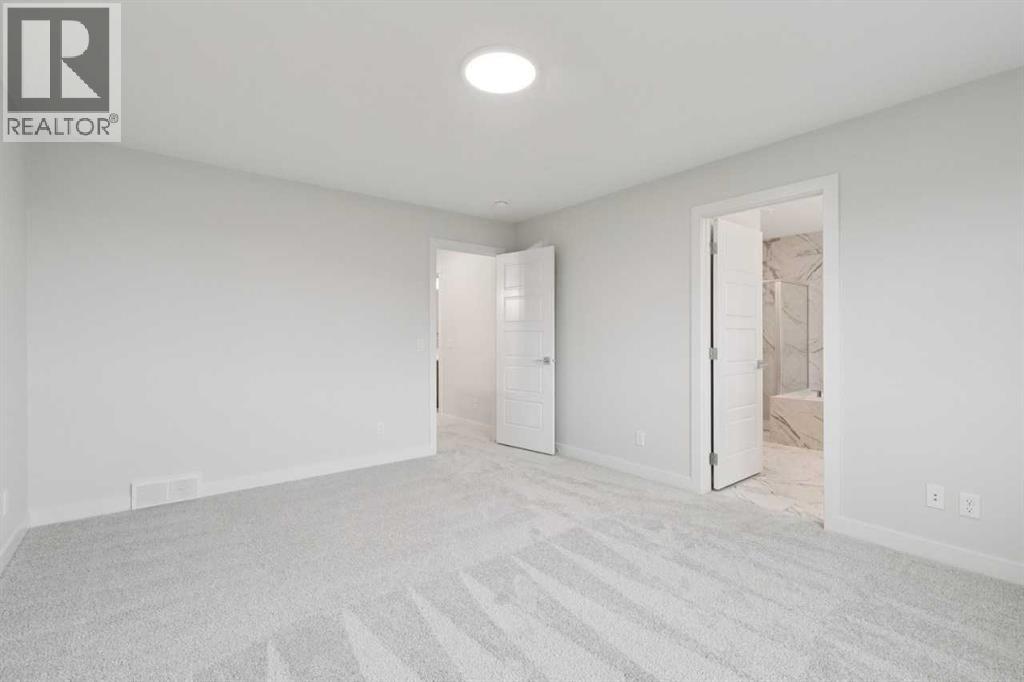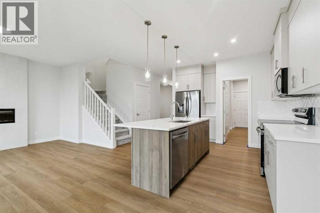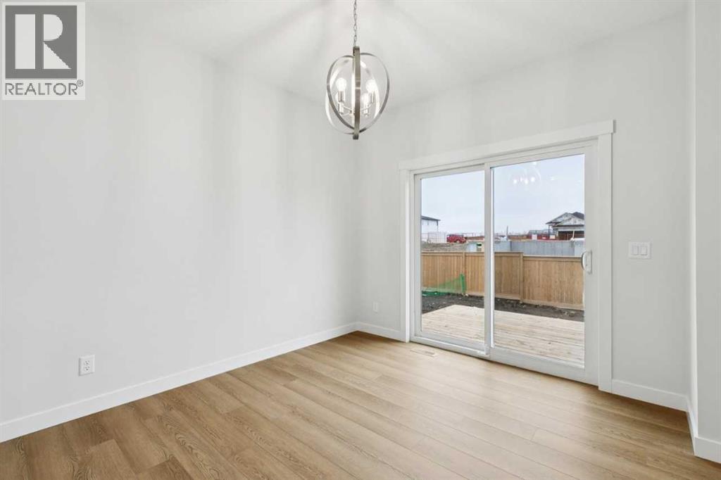 Welcome to the Pineview by NuVista Homes, located at 85 Southborough Square in the growing Southbow community of Cochrane. This thoughtfully designed 2,040 sq. ft. two-storey home offers 3 bedrooms and 2.5 bathrooms with a spacious and functional layout. The open-concept main floor features luxury vinyl plank flooring, a modern kitchen with quartz countertops and tall upper cabinetry, and a bright dining and great room anchored by an electric fireplace with full tile surround. A flex room on the main level adds versatility for a home office or additional living space. Upstairs, the primary bedroom includes a walk-in closet and private ensuite, alongside two additional bedrooms and a central media room. Additional highlights include 9’ foundation and main floor ceilings, a convenient side entrance for future basement development potential, an oversized garage with 2’ extra width, and an 11’ x 10’ rear deck perfect for outdoor entertaining. (id:51989)