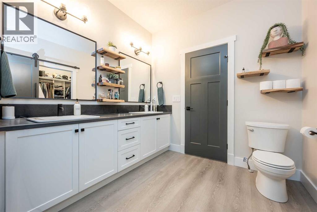 Elegant , Modern, Fresh, And Immaculate is the definition of this originally owned built by Unique Homes. It is like NEW but better as it has all the bells and whistles included central air , heated + finished garage, infloor heat in basement, coffee bar area, and enormous walk in pantry. Entry your home you will appreciate the sheer size of the entry way with built in bench. Heading up a few stairs to your main floor that welcomes you into your popular open concept between the kitchen , dining and living room. Kitchen hosts kitchen island with quartz counter tops, adequate cabinet + counter space, bar fridge, and wine storage space. Dinning allows for a table of any shape or size for all occasions. Living room has feature wall to ceiling with electric fire place with vaulted ceiling. Half bathroom of the kitchen great for guests while entertaining. To finish off the main floor is the prestige master bedroom with his and her sinks and spa like over sized shower and customer walk in closet. Heading upstairs you will find two large bedrooms and full bathroom. FInished basement with electric floor heat is huge with massive living , fourth bedroom, full bathroom, and incredible finished laundry room with counter top + cabinets, as well as finished underneath the stairs storage. Utility room has hot water on demand and high efficiency furnace with central air conditioning. Attached triple car garage is fully finished with garage heater, and extra coat closet. Back yard is fully fenced with two tiered composite deck with privacy walls and no rear neighbors. Down the road from your new home you will find a park wonderful for family gatherings. Book your viewing today as this home is a show stopper. (id:51989)