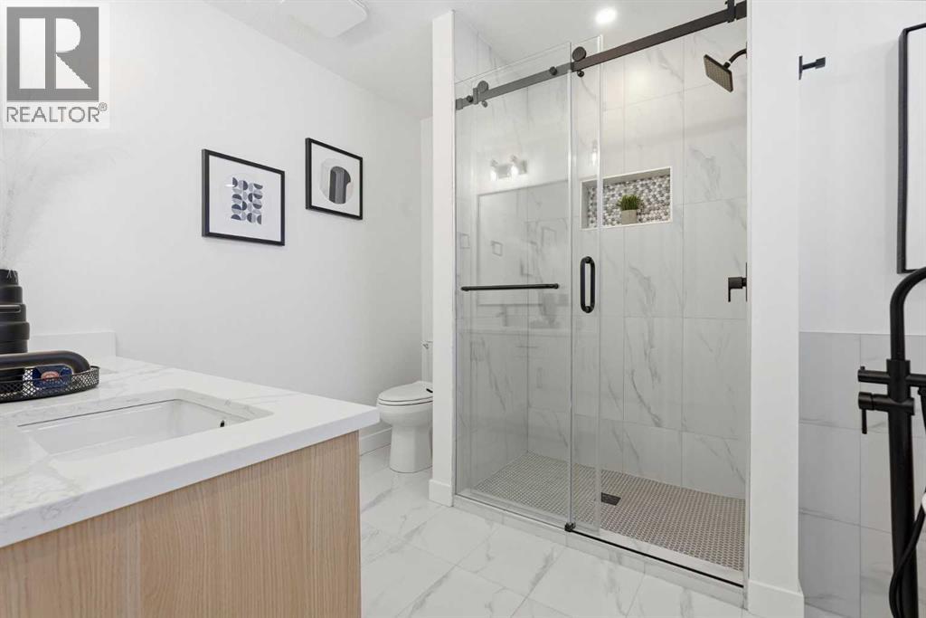 8616 7 Street SW | Haysboro | If turnkey luxury is what you’re after, this home delivers. | Fully renovated inside and out, this stunning four-bedroom, three-bath residence seamlessly blends modern design with everyday comfort. Thoughtfully redesigned with high-end finishes and bright open living spaces, the home offers a welcoming atmosphere perfect for both relaxing and entertaining. At the heart of the home is a beautifully designed modern kitchen featuring a massive quartz island, sleek cabinetry, and premium finishes—creating the perfect gathering space for family and friends. The open layout flows effortlessly into the living and dining areas, enhancing the sense of space and natural light throughout. The primary suite provides a private retreat complete with a walk-in closet and spa-inspired ensuite, while three additional bedrooms offer flexibility for family, guests, or a home office. Downstairs, the fully developed lower level is built for lifestyle and entertainment. Enjoy a spacious recreation room, a dedicated workout area, and an impressive wet bar, making it an ideal space for hosting or unwinding at the end of the day. A convenient and functionality-based laundry room completes the lower level. Located in the established southwest community of Haysboro—known for its tree-lined streets, proximity to the Glenmore Reservoir, Heritage Park, and extensive walking pathways—this home offers the perfect balance of peaceful neighborhood living with easy access to parks, schools, shopping, and major city routes. Adding even more potential, the builder is offering buyers the option to design and build a custom detached garage, allowing you to personalize the backyard space to suit your lifestyle. Luxury, space, and a completely move-in-ready home in one of Calgary’s most desirable southwest communities—this is a property you’ll want to experience in person. (id:51989)