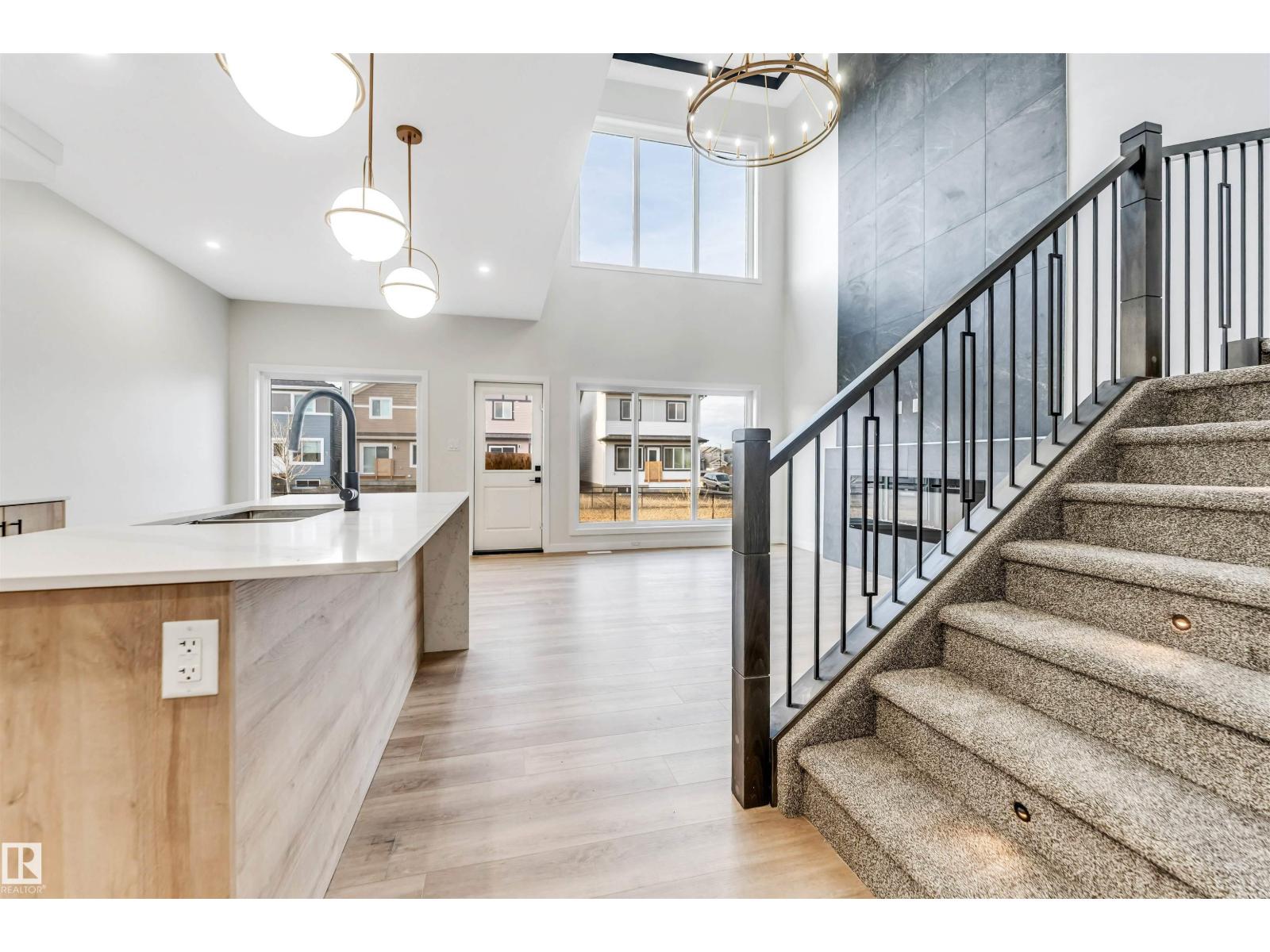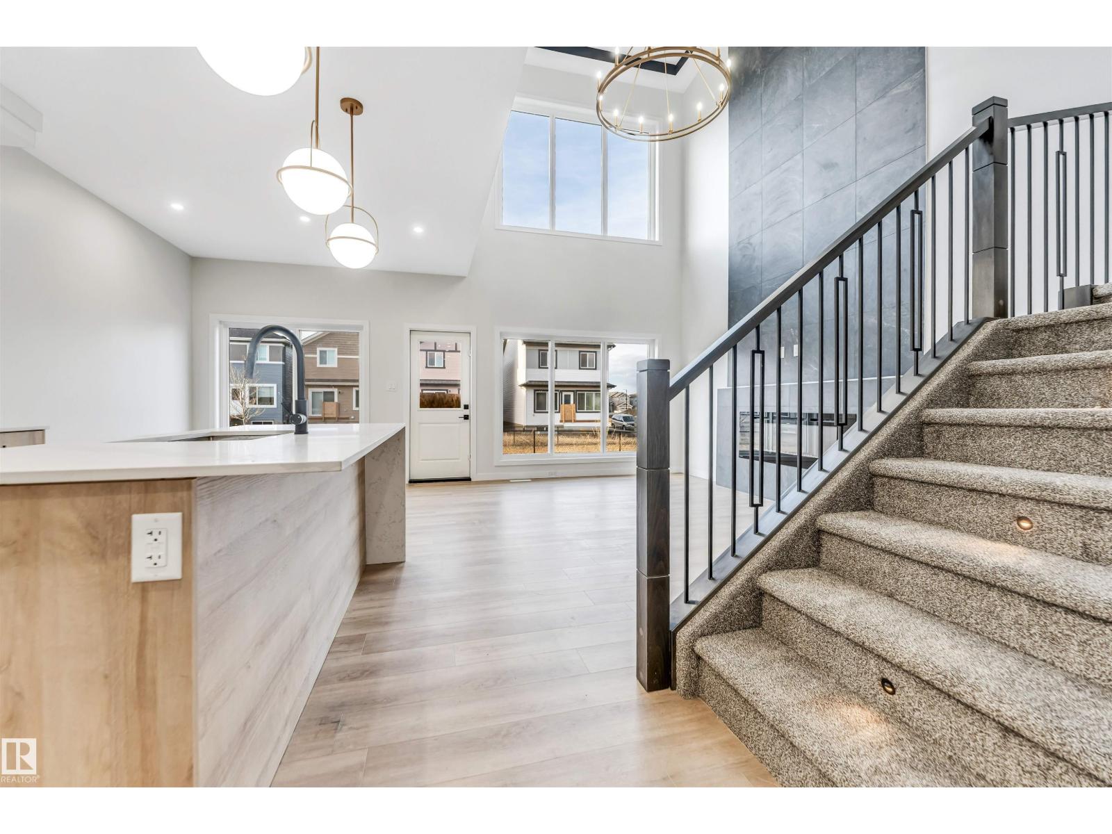 Welcome to this beautifully designed, trail-backing home by ART Homes, ideally located with quick access to Anthony Henday Drive, shopping, schools, and CFB Edmonton—offering the perfect combination of style, comfort, and convenience. This home features a bright, open-concept layout with 9-ft ceilings on both the main floor and basement. The impressive open-to-above great room is filled with natural light and showcases a modern electric fireplace with a striking feature wall—perfect for entertaining or relaxing. The main floor also includes a versatile bedroom, a full bathroom, and a chef-inspired kitchen complete with quartz countertops and full-height cabinetry. Upstairs, you’ll find a spacious bonus room providing additional living space, along with three generously sized bedrooms and a convenient upper-level laundry room. The primary suite offers a private retreat, highlighted by a spa-like ensuite featuring a tiled shower, freestanding tub, and dual vanities. Don't miss this great home! (id:51989)
