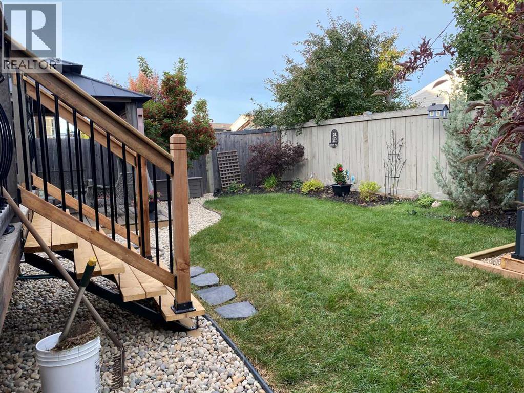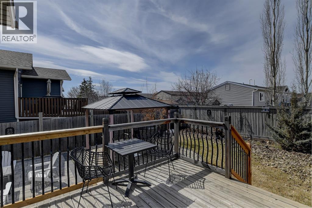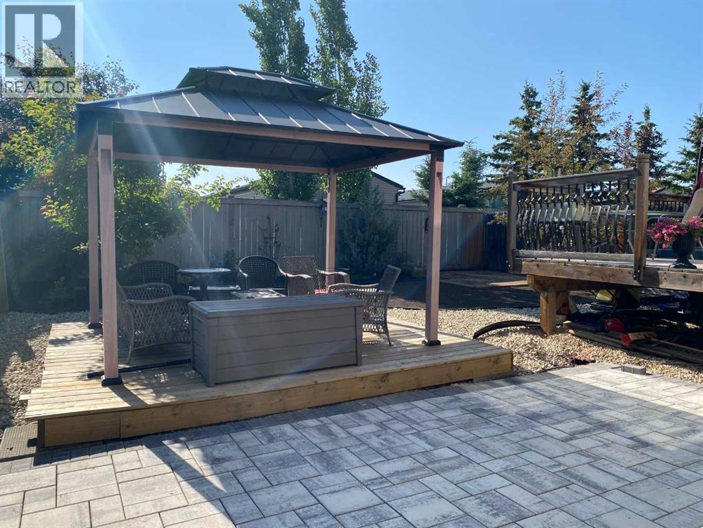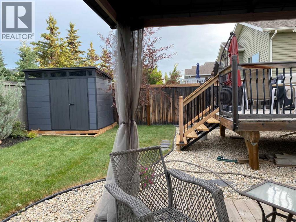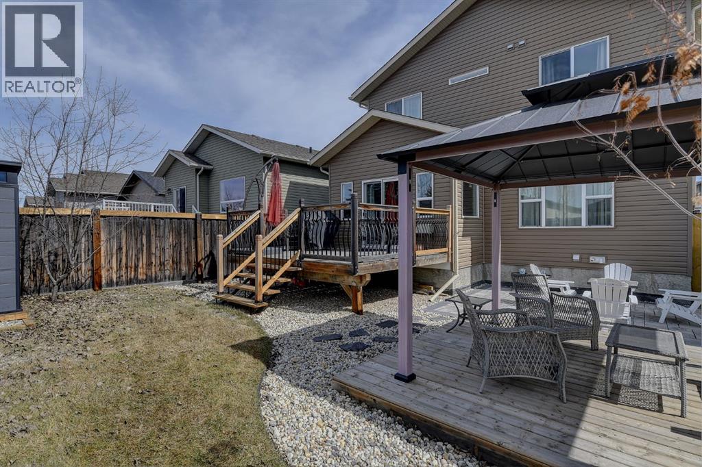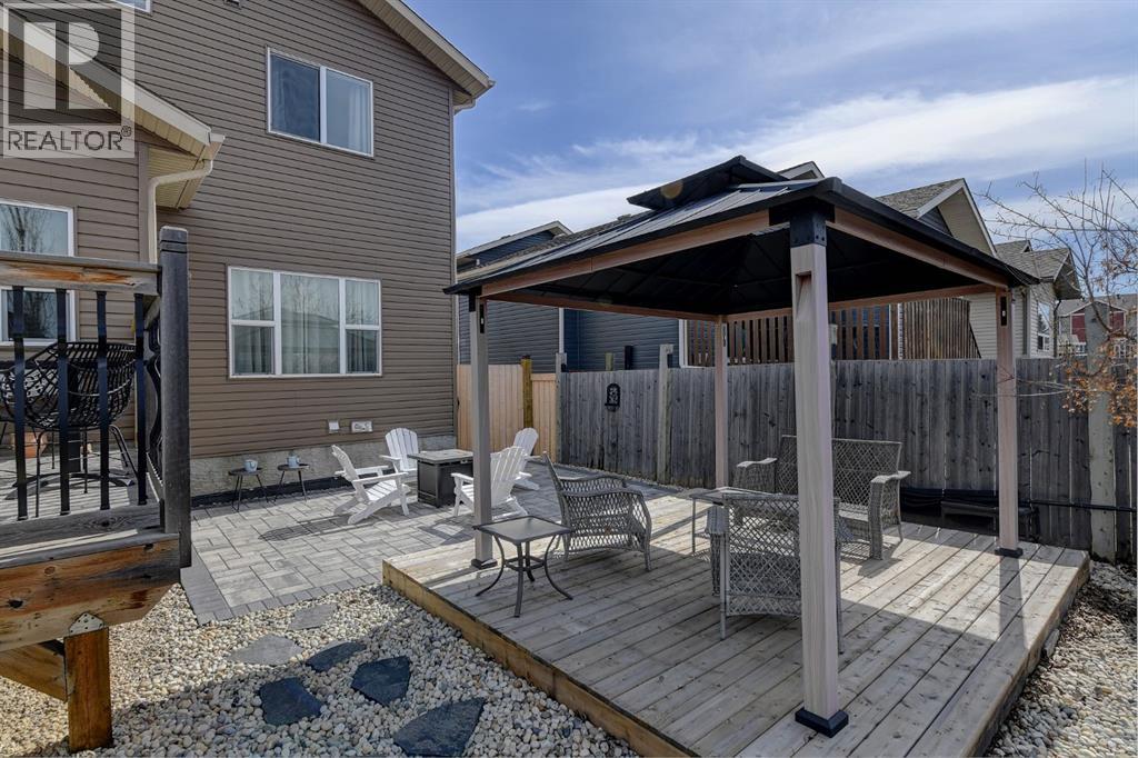 Welcome to this beautifully maintained 2-storey home, built in 2014 and proudly owned by its original owners. Offering 3 bedrooms and 2.5 bathrooms, this home showcases a warm, modern brown palette throughout, creating a timeless and inviting feel. The heart of the home is the chef’s kitchen, featuring soft-close cabinetry, under-cabinet lighting, stainless steel appliances, and generous countertop space—perfect for both everyday living and entertaining. The open-concept layout flows seamlessly into the main living areas, complemented by the convenience of main floor laundry. Upstairs, the spacious primary bedroom offers a true retreat, complete with a tasteful 5-piece ensuite featuring his and hers sinks, a tiled shower, and plenty of room to unwind. Step outside to your recently completed backyard oasis—designed for relaxation and enjoyment—with a beautiful combination of brick and wood patio space, a charming gazebo, washed rock, mulched flower beds, a newer shed, and a deck with practical under-deck storage. The yard is fully fenced with a gate, ideal for families, pets, or added privacy. The attached double car garage is fully finished, heated, and bright—perfect for Alberta winters. Additional features include central A/C to keep you cool during warm summer days and a basement that’s ready for your future development. This home checks all the boxes—style, comfort, and functionality. (id:51989)