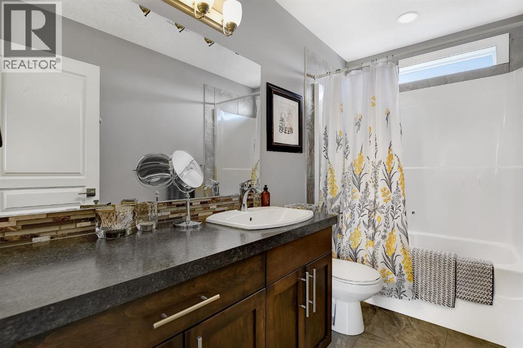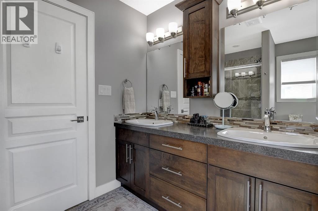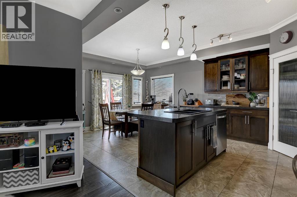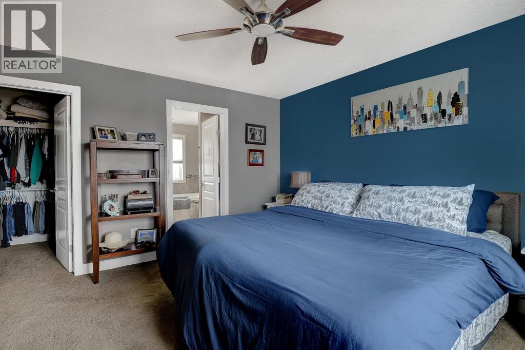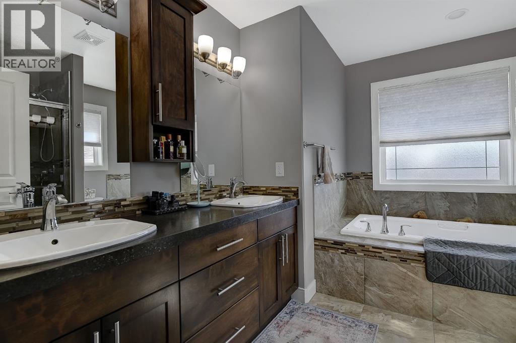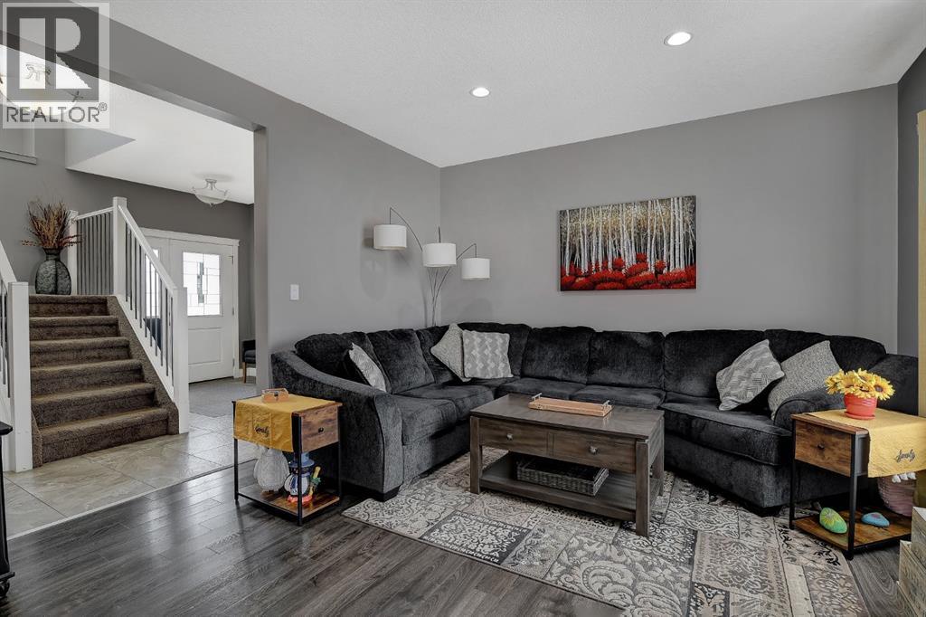 Welcome to this beautifully maintained 2-storey home, built in 2014 and proudly owned by its original owners. Offering 3 bedrooms and 2.5 bathrooms, this home showcases a warm, modern brown palette throughout, creating a timeless and inviting feel. The heart of the home is the chef’s kitchen, featuring soft-close cabinetry, under-cabinet lighting, stainless steel appliances, and generous countertop space—perfect for both everyday living and entertaining. The open-concept layout flows seamlessly into the main living areas, complemented by the convenience of main floor laundry. Upstairs, the spacious primary bedroom offers a true retreat, complete with a tasteful 5-piece ensuite featuring his and hers sinks, a tiled shower, and plenty of room to unwind. Step outside to your recently completed backyard oasis—designed for relaxation and enjoyment—with a beautiful combination of brick and wood patio space, a charming gazebo, washed rock, mulched flower beds, a newer shed, and a deck with practical under-deck storage. The yard is fully fenced with a gate, ideal for families, pets, or added privacy. The attached double car garage is fully finished, heated, and bright—perfect for Alberta winters. Additional features include central A/C to keep you cool during warm summer days and a basement that’s ready for your future development. This home checks all the boxes—style, comfort, and functionality. (id:51989)