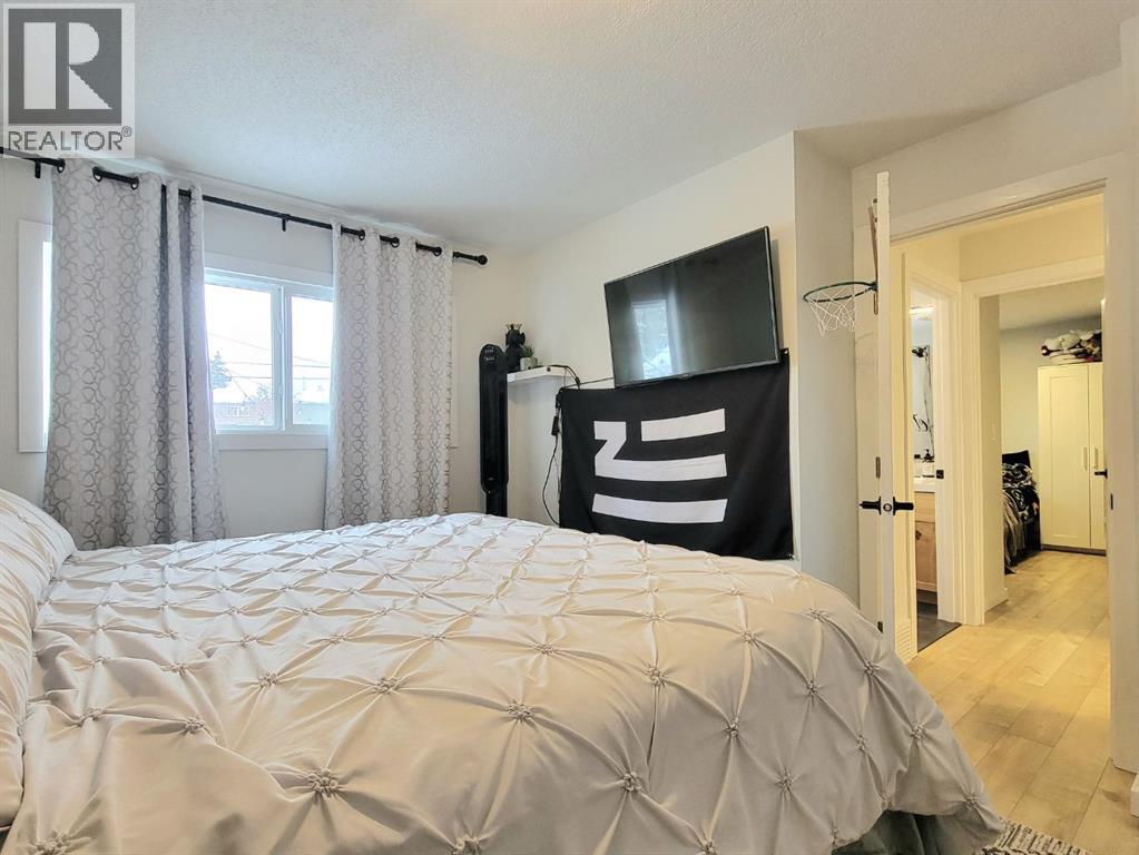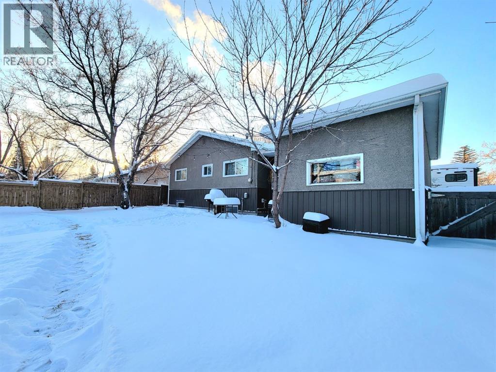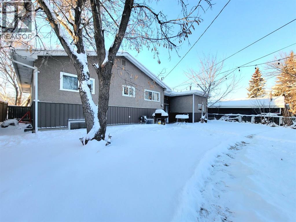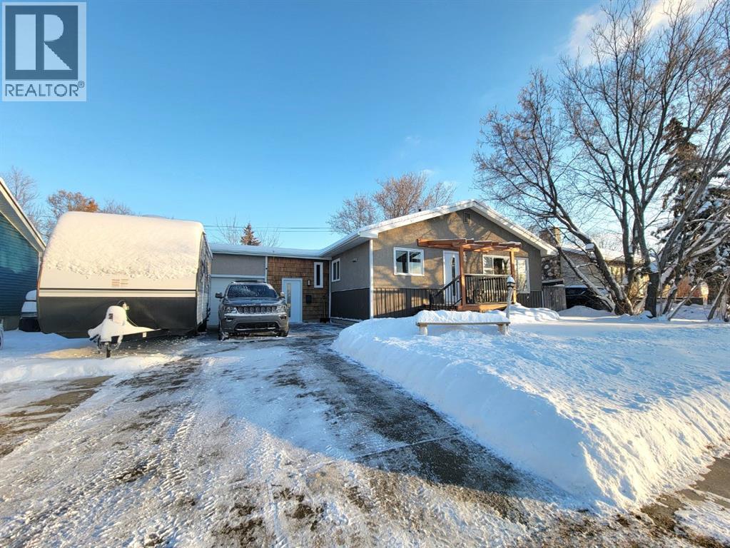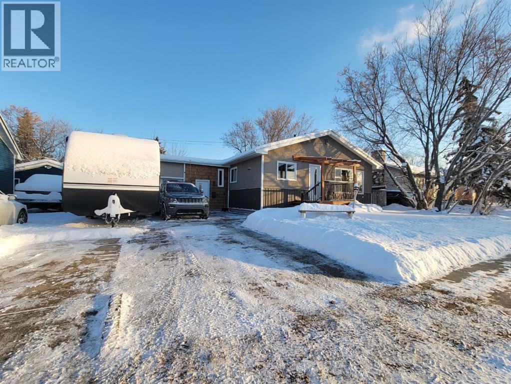 NEW TO THE MARKET! Check out this beautifully renovated, mid century, scandinavian designed bungalow, nestled on a large lot in Highland Park! This is right on 100 street, but you’ll find the service road barrier creates good distance between the house & 100th street, plus the new windows keep the sound down & the view of the school & mature trees are well worth it! This homes 2019 renovations included a new roof, siding, windows, doors, garage door, kitchen, all brand new appliances, LED lights throughout, newer furnace, some plumbing & electrical & overall cosmetics. Hot water tank replaced recently. Brand new dishwasher as well! Fully developed with a bright and open basement with your 4th bedroom, and 2nd bathroom, plus a massive laundry room! The garage is 25’ long, fully finished & heated. Between the garage & the house there’s a heated breezeway providing functional space for coming & going, and accessing your favourite summer space.... your BACKYARD! Parking here you'll find desirable, with your concrete driveway allowing for 3 good sized vehicles, or even your camper! Around the corner from you, is Grande Prairies newest Playground. A Jumpstart Inclusive Playground. This revamped, 21,000-square-foot space is designed to be fully accessible for children of all abilities, replacing the previous 19-year-old structure! Highland park keeps getting more and more desirable. (id:51989)