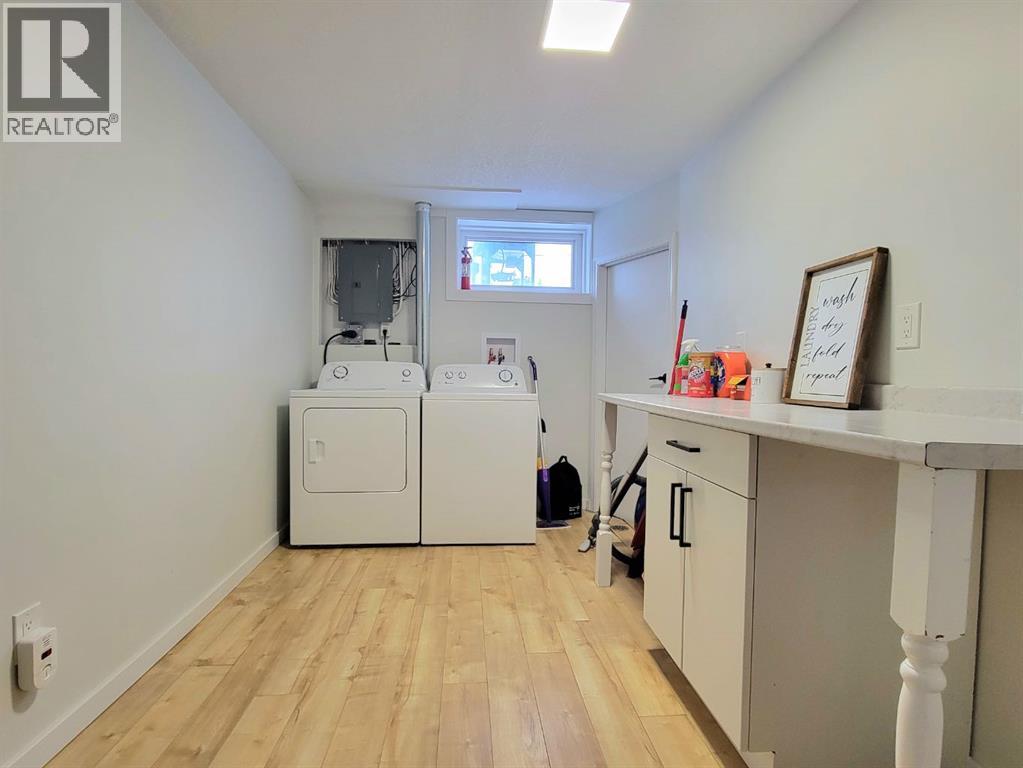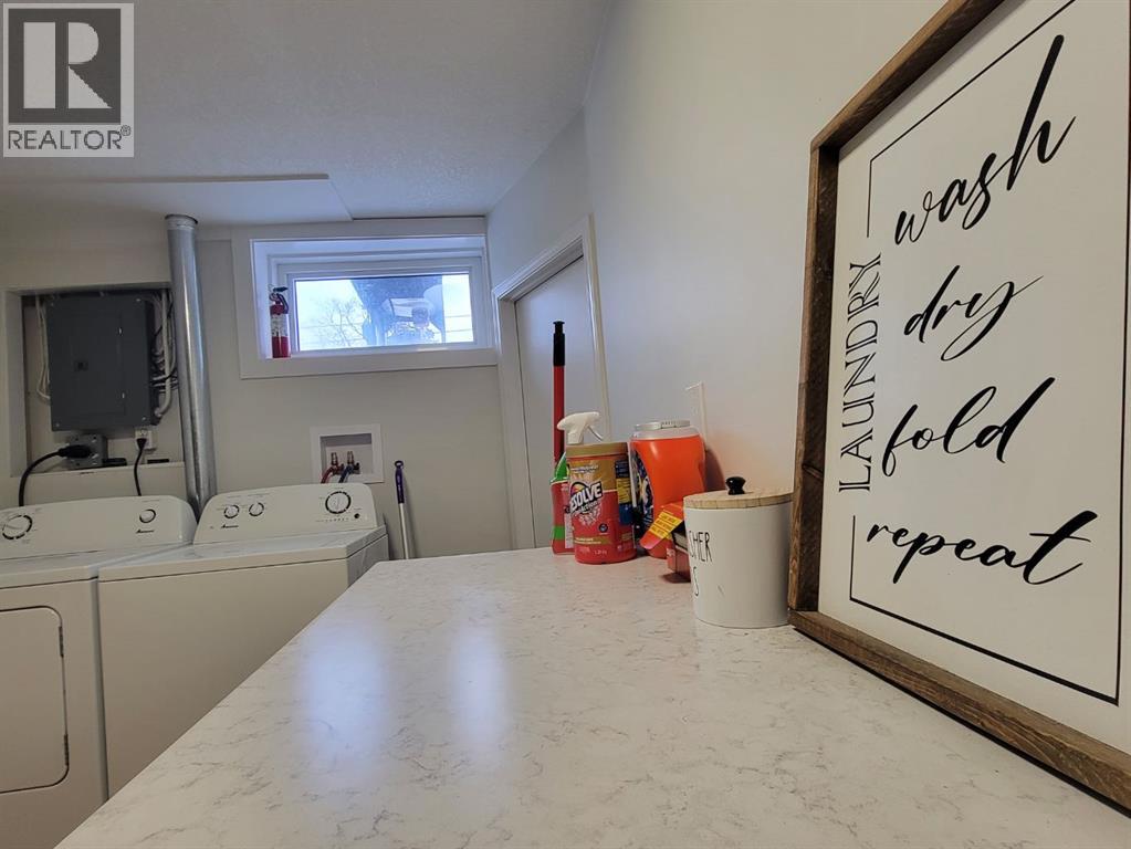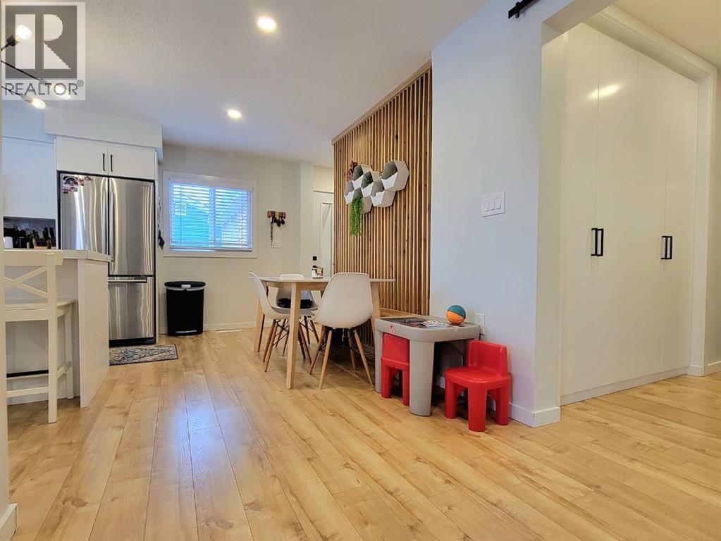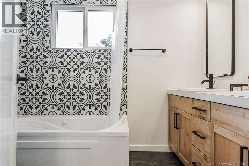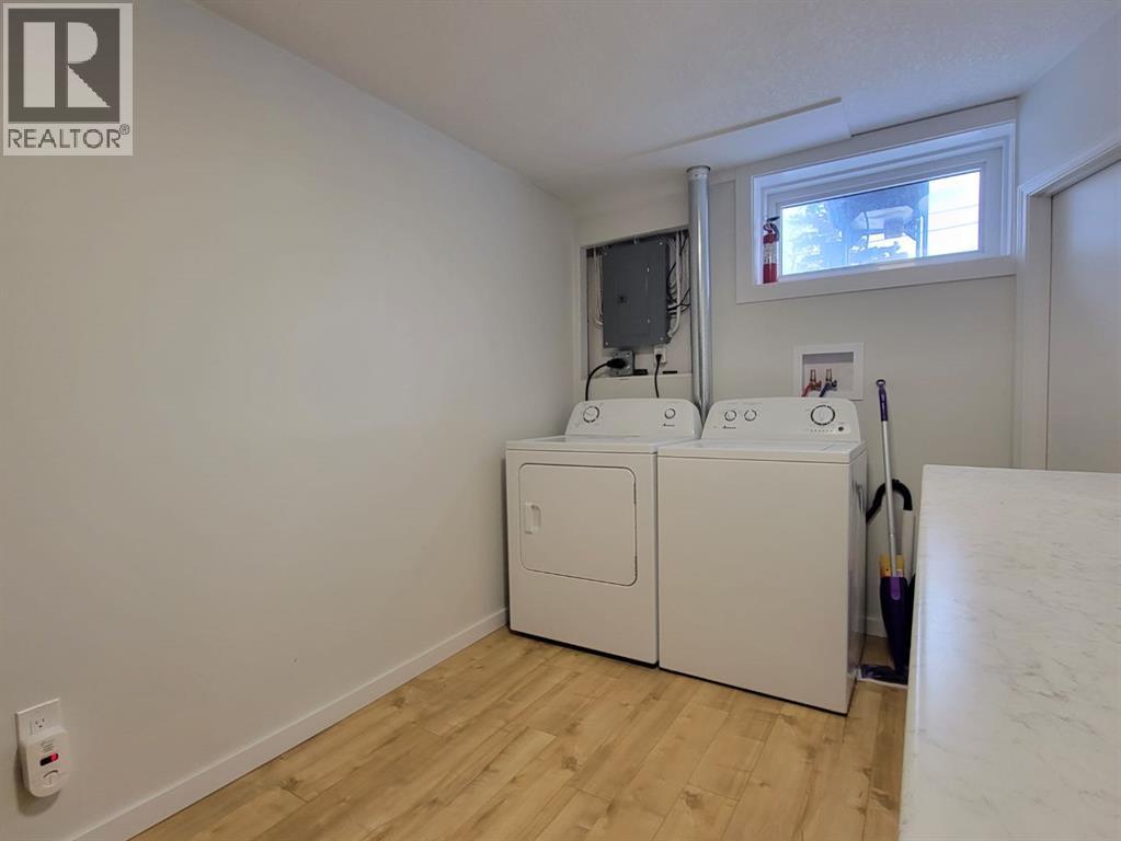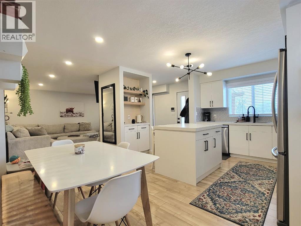 NEW TO THE MARKET! Check out this beautifully renovated, mid century, scandinavian designed bungalow, nestled on a large lot in Highland Park! This is right on 100 street, but you’ll find the service road barrier creates good distance between the house & 100th street, plus the new windows keep the sound down & the view of the school & mature trees are well worth it! This homes 2019 renovations included a new roof, siding, windows, doors, garage door, kitchen, all brand new appliances, LED lights throughout, newer furnace, some plumbing & electrical & overall cosmetics. Hot water tank replaced recently. Brand new dishwasher as well! Fully developed with a bright and open basement with your 4th bedroom, and 2nd bathroom, plus a massive laundry room! The garage is 25’ long, fully finished & heated. Between the garage & the house there’s a heated breezeway providing functional space for coming & going, and accessing your favourite summer space.... your BACKYARD! Parking here you'll find desirable, with your concrete driveway allowing for 3 good sized vehicles, or even your camper! Around the corner from you, is Grande Prairies newest Playground. A Jumpstart Inclusive Playground. This revamped, 21,000-square-foot space is designed to be fully accessible for children of all abilities, replacing the previous 19-year-old structure! Highland park keeps getting more and more desirable. (id:51989)