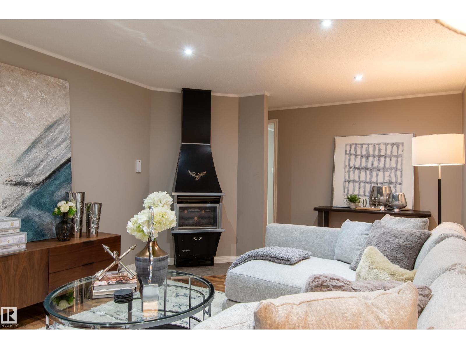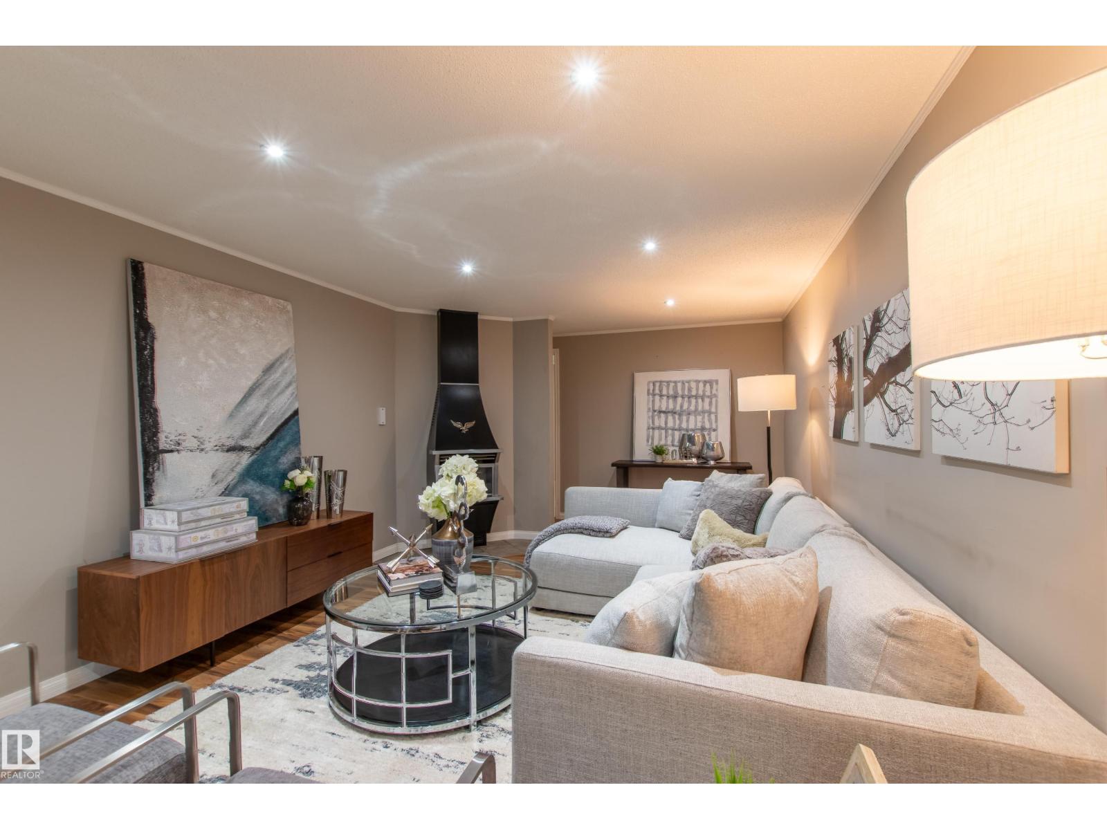 This Parkview Bungalow feels instantly welcoming—bright, open, and full of charm. The main floor has three comfortable bedrooms, a stylishly redone 4-pc bath with a rustic-modern vibe, and a sunny kitchen that looks out onto the private backyard. Step outside to enjoy a large deck, landscaped gardens with Allan block borders, and an oversize double detached garage. Downstairs, gather in the spacious rec room with its cozy gas fireplace, plus a 4th bedroom, 3-pc bath, and laundry. Practical updates—vinyl windows, newer roof, high-efficiency furnace, and central A/C—mean you can move right in. The location is hard to beat, walk to schools, playgrounds, BonTon Bakery, or Ichiban Sushi, and be downtown or on Whitemud in minutes. Parkview isn't just desirable—it’s a neighborhood you’ll love to call home. (id:51989)