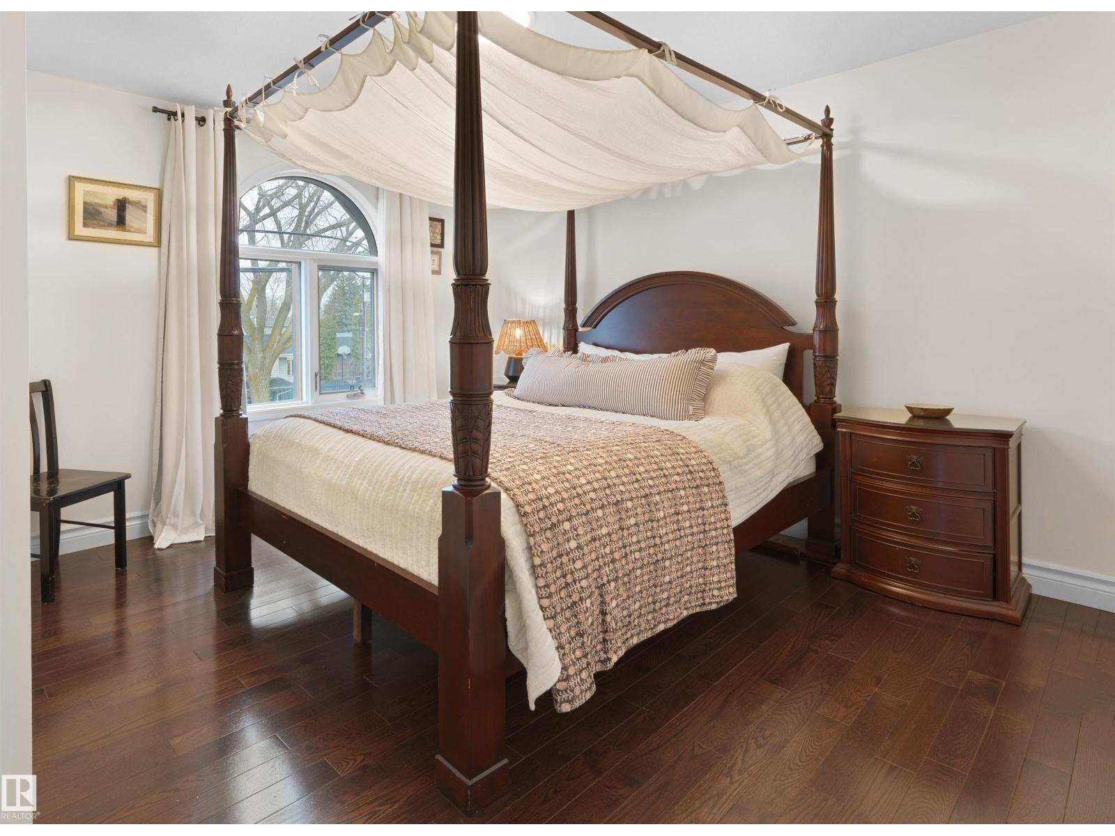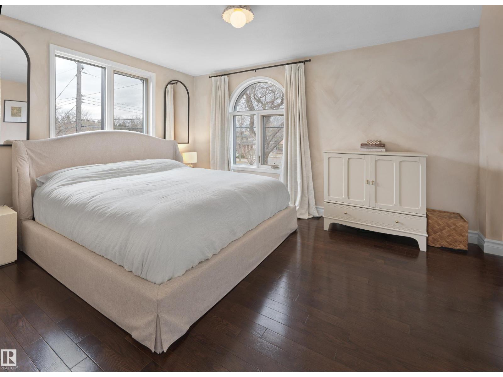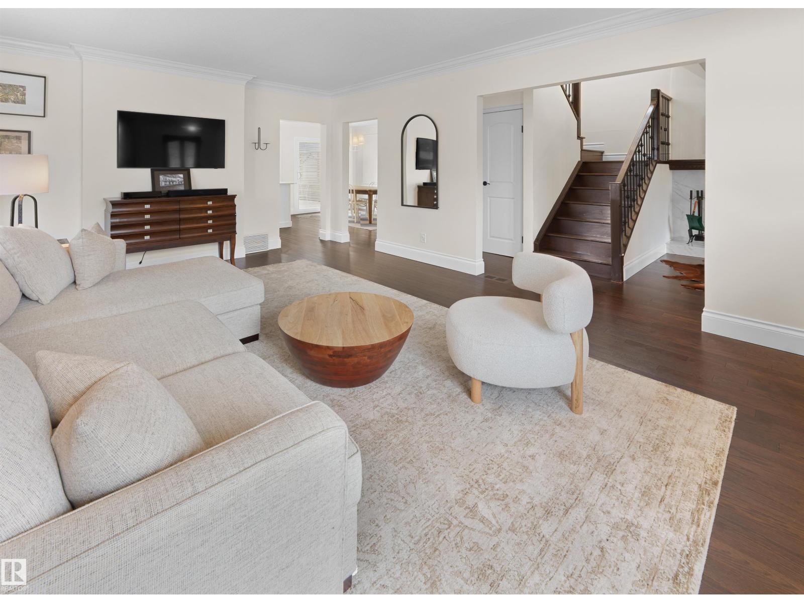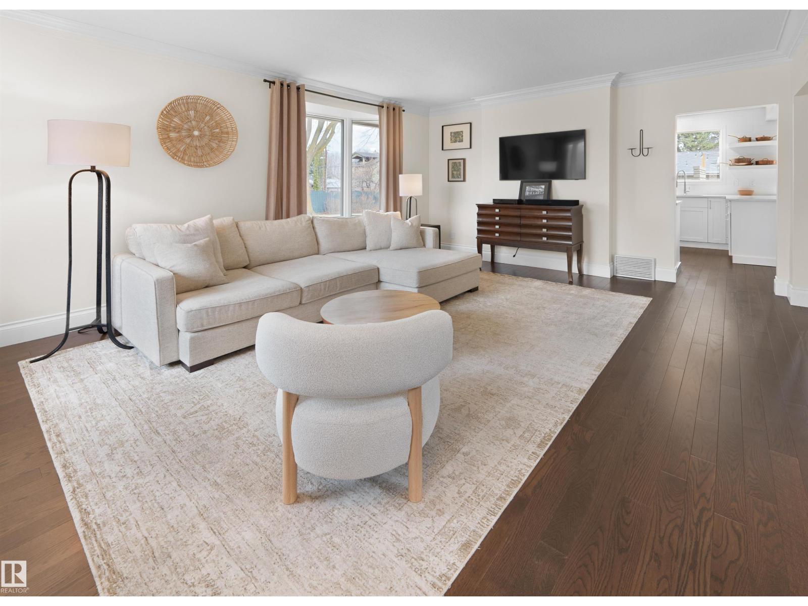 Steps to Mill Creek Ravine, this King Edward Park corner lot home is the one you've been waiting for. Hardwood throughout, soaring natural light & a stunning white quartz kitchen w/ Viking gas range open to the dining space & private deck for effortless indoor/outdoor living. Main floor also offers a large living room, 2pc bath & family room w/ fireplace. Upstairs: primary bedroom w/ his & hers closets, reading nook, two more generous bedrooms, laundry & renovated 4pc bath w/ heated floors. Basement features a bright rec room w/ full kitchen, large bedroom, full bathroom, den/storage & private side entrance. Outside: tiered backyard w/ beautiful deck, mature landscaping & oversized detached double garage. Mechanically loaded: two furnaces (2025), A/C (2024), hot water tank (2024), new exterior water & sanitary lines (2025), & aluminum cladding on all doors & windows (2025) . Homes like this don't come up often in King Edward Park. The owners have loved it. You will too. (id:51989)