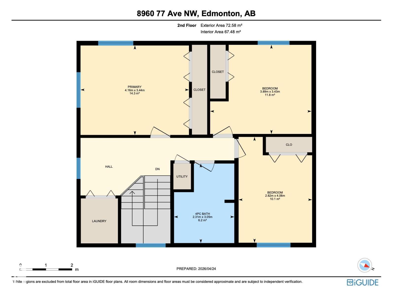| Upper Level | Primary Bedroom | 4.16 m | 3.44 m | 4.16 m x 3.44 m |