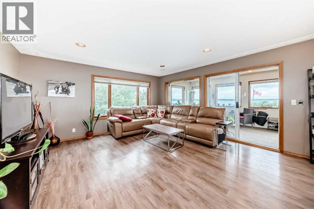 Lakefront living at its finest! This 2 owner home is on a large pie shaped lot with 62 ft of lake frontage in the beautiful SV of Norglenwold. It has unparalleled 180 degree stunning views of the lake with spectacular sunrises. The gentle slope to the water provides easy access for kids and the elderly, and also for all of your lake activities. Situated on a huge lot( 62 x 195 x 107 x 195), there is plenty of room for entertaining, gardening, and your favorite outdoor games like volleyball, badminton and cornhole. This well built home features clay tile roof, brick driveway and patio, lakeview hot tub, upper floor laundry, bonus room and flex room above the garage, granite countertops, solid oak doors, and a huge primary bedroom with 2 walk-in closets. With 5 large bedrooms, there is plenty of room for family and friends to visit. Cozy up to the wood burning stove in the winter after you spend the day ice fishing, snowmobiling, or skating on the lake. The main floor plan offers a huge 2nd family room with the flexibility to offer a games room, music room, home office, and is awesome for Christmas or family gatherings! This property is on its own well with ample water. It is tied into the Town of Sylvan wastewater with the affordable cost of $450/year! You will also find the taxes much less than in the town itself but this home offers walking and biking into the amenities of Sylvan Lake. The large heated garage is 39 ft wide and offers plenty of room inside for all your toys! (id:51989)