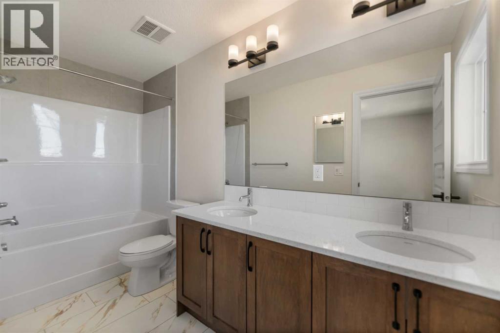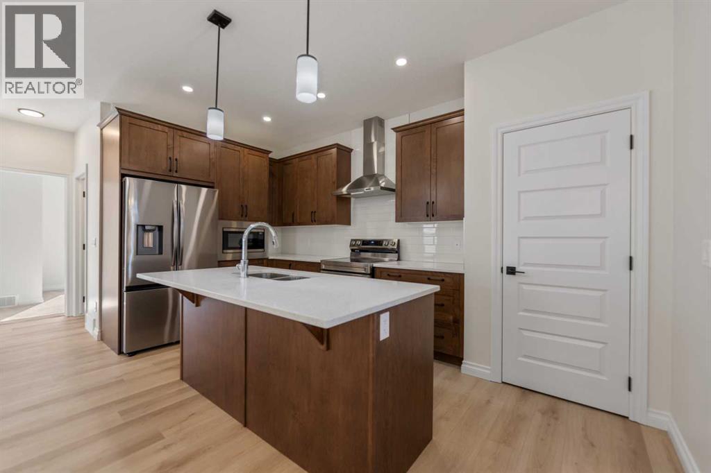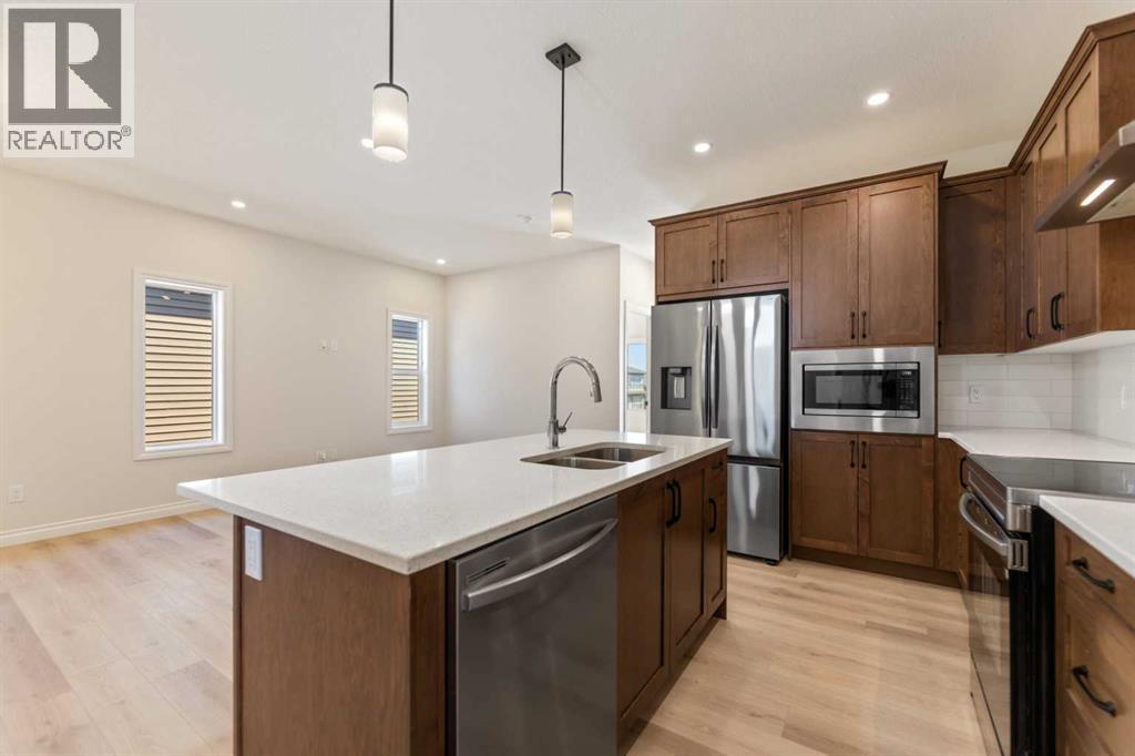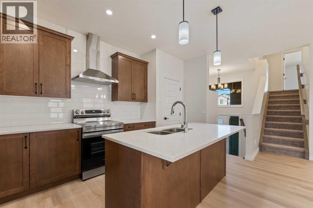 Welcome to this beautifully designed front-garage home in the sought-after community of Homestead, offering a perfect blend of functionality, space, and modern finishes. Situated on a west-facing lot, this home is filled with natural light throughout the day, creating a bright and inviting atmosphere. As you enter, you are welcomed by a stunning open-to-above foyer that adds a sense of space and elegance. The main floor features a well-thought-out layout including a spacious living room, dining area, and a modern kitchen complete with stainless steel appliances, recessed lighting, and stylish light fixtures throughout. This level also offers two generously sized bedrooms, a full 4-piece bathroom, and a convenient mudroom. Upstairs, the primary retreat provides a private and comfortable space, featuring a walk-in closet and a luxurious 5-piece ensuite with double vanity. A conveniently located laundry room completes the upper level. The fully finished basement with separate entrance adds incredible value and flexibility, offering two additional bedrooms, a full 4-piece bathroom, kitchen, living area, and its own laundry—ideal for extended family or potential rental income. Located close everyday amenities, this home is perfect for families, investors, or anyone looking for a versatile and well-appointed property in a growing community. (id:51989)