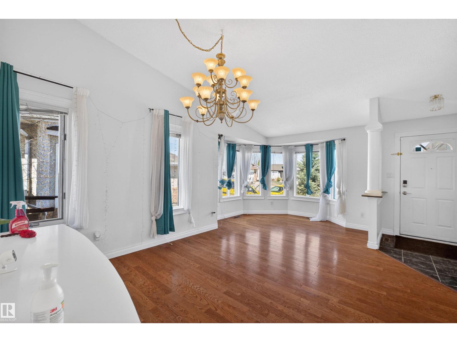 Absolutely immaculate 4-level split in the heart of Klarvatten, located in a quiet cul-de-sac. The main floor features a bright living room with hardwood flooring and large bay windows, filling the space with natural light. The updated enclosed kitchen offers modern cabinetry, granite countertops, and connects to a spacious dining area overlooking the backyard. Upstairs includes 3 bedrooms, with the primary offering a 3-piece ensuite, plus a full 4-piece bathroom. The third level boasts a cozy family room with a wood-burning fireplace, a 4th bedroom, and a 3-piece bath. The fully finished basement adds a second family room with another wood-burning fireplace. Upgrades include hardwood flooring, heated double garage, newer kitchen, granite, windows, and shingles. Furnace (2007), HWT (2017), and newer Samsung washer and dryer. Beautiful yard with fruit trees, garden, and covered deck. Walking distance to schools, parks, and all nearby amenities. Ideal family home with great curb appeal. (id:51989)