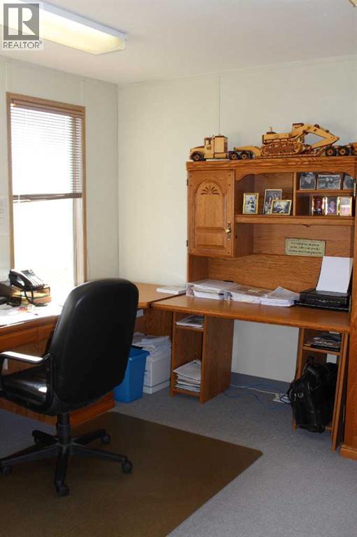 When location is KEY, look no further! This property is perfectly positioned for easy access to Highway #35 and could cater to a variety of industrial needs! This top-quality steel shop built in 1998 is situated on 14.15 acres of land, boasts a fully secure chain link fenced yard with three gated entrances. Along the fence are 12 electrical plug-ins with a separate breaker box. The two well-maintained buildings are on one title: the 40’ x 100’ shop, and 1084 sq. ft. detached office building both with paved apron frontage, well graveled yard and landscaped areas. Both properties are serviced with municipal water, sewer, natural gas and electricity. The steel-framed shop features 4000 sq. ft. features 19 ft ceiling height, 3 - 16’ x 16’ O/H doors, one 18’ x 16’ O/H door, 4 man doors, a 5 ton crane hoist with a 16 ft hook height on a movable track so as to move across the shop, LED lighting, a two exhaust fan system, 3 phase power, a parts room in the mezzanine with shelving, one washroom with shower, lunch room equipped with sink and cabinets, cement floor with metal clad interior walls, outdoor building lights. The shop offers two heating systems: two radiant heating tubes on opposite sides of the shop and an underfloor heating system. In the mechanical room is a Hotsy pressure washer and plumbed in large air-compressor. Outside the shop area is a graded truck loading ramp and a coverall building. On this site are full hookups for two camp shacks with sewer line and services tied into the office building. Plenty of room to expand. The modular office building offers three offices, a large reception and conference area, a washroom and spacious entryway. This property is well priced below replacement cost! With approval from municipality, the size of this lot, and Highway #35 frontage, there is potential for the buyer to subdivide the land and resale for other potential businesses such as a truck car wash, hotel development to name a few. The possibi lities are yours to explore! Additional notes: Modular office: Make: Northgate Trailer Industries Ltd. Serial #12335-1240-0-1-IT96 CSA: LL98266 Model: office October, 1996 Foundation: Steel pilings (id:51989)