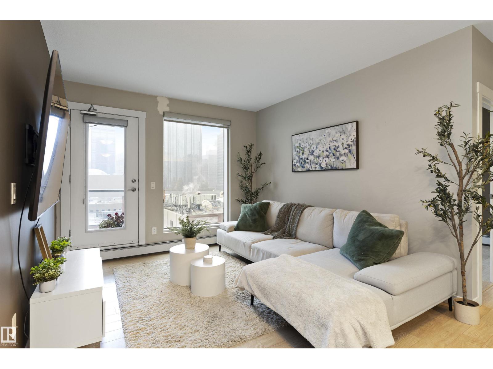 Live in the Heart of Downtown Edmonton! Welcome to Fox 1, where style, convenience & skyline views meet. This 788 sqft 2 bed, 2 bath condo puts you right in the centre of the action—steps from the Ice District, Rogers Place & Edmonton’s best dining, nightlife, & entertainment. Featuring a bright open-concept layout, this unit offers floor-to-ceiling windows that flood the space w/ natural light while showcasing incredible views. The modern kitchen includes s/s appliances, sleek cabinetry, a large island & plenty of counter space—perfect for cooking or entertaining. The primary suite is complete w/ a private 4pce ensuite, while the 2nd bedroom is ideal for guests, a home office or a roommate setup w/ the 2nd full bathroom. Enjoy in-suite laundry & an oversized balcony to take in the energy of downtown. A Titled underground parking stall completes this amazing unit! Whether you’re a young professional, investor, or downsizer this condo delivers urban living at its finest! (id:51989)