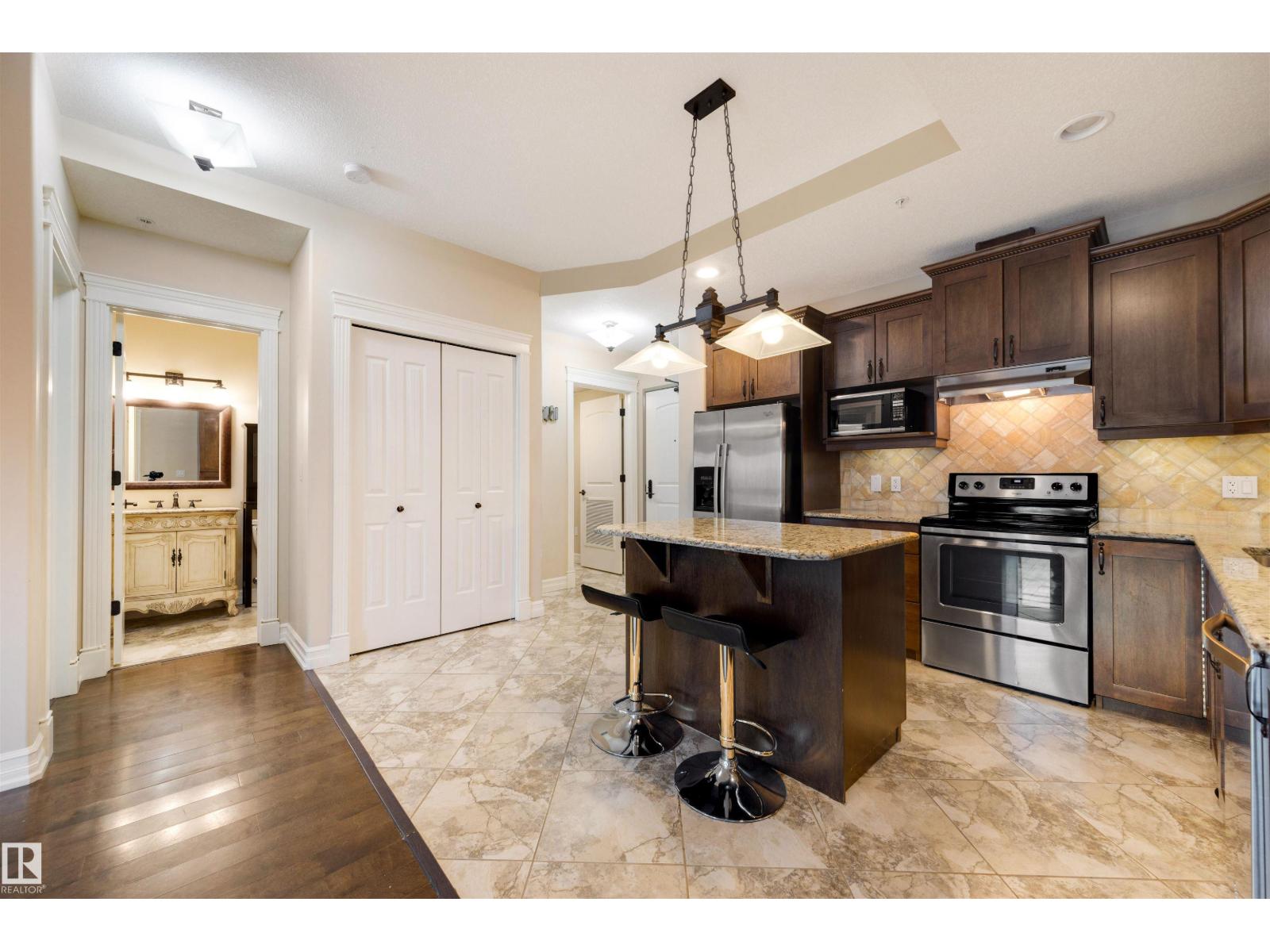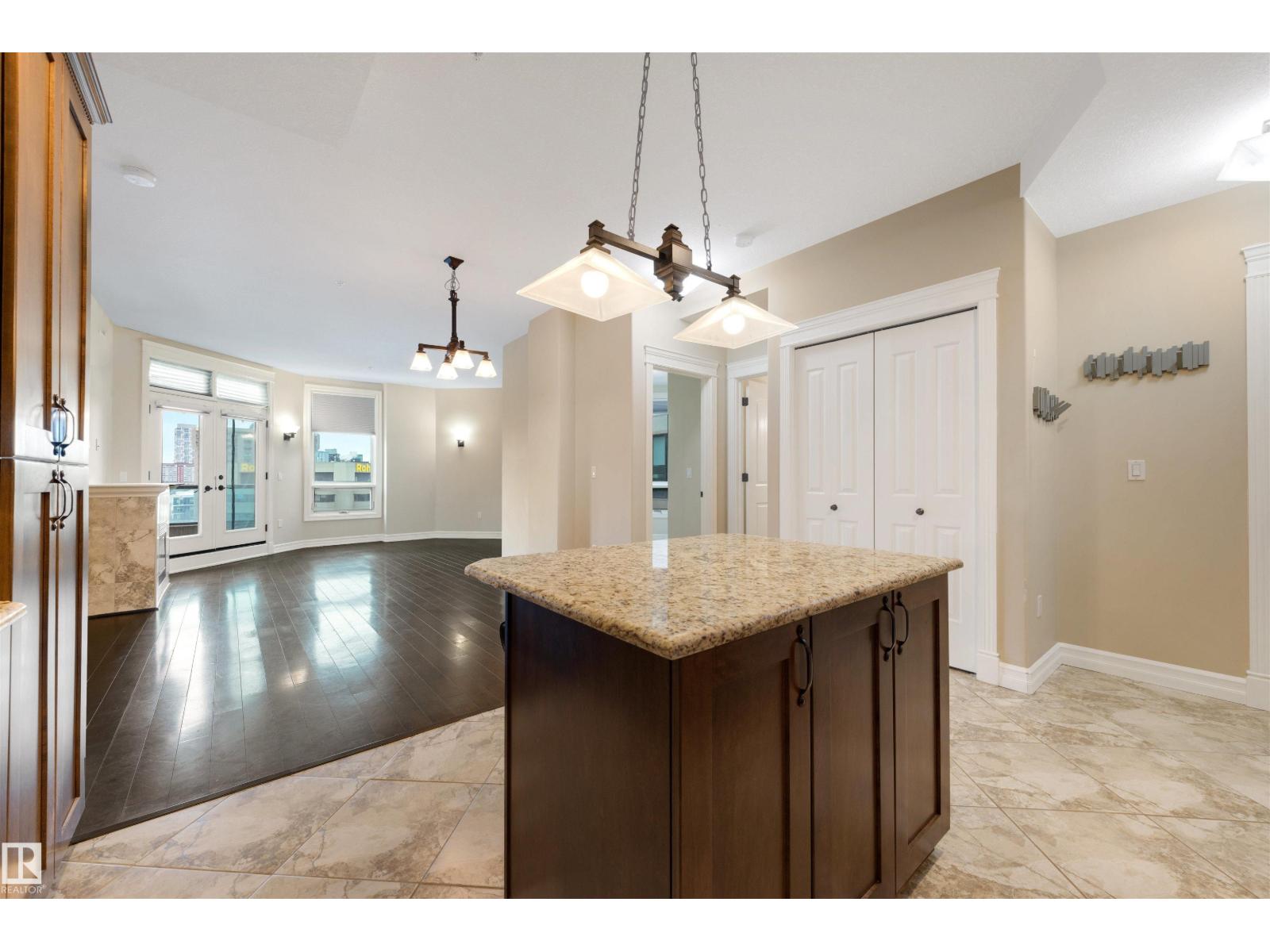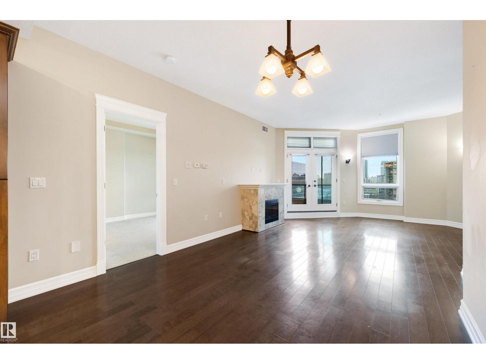 Experience the best of downtown living in this spacious 1,126 sq. ft. 2-bed, 2-bath home on the 9th floor of Meridian Place. The bright, open-concept layout features rich hardwood floors, a warm kitchen with granite countertops, stainless steel appliances, and a central island, along with a cozy gas fireplace and a private balcony with city views. Both bedrooms are generously sized and well-separated for privacy, each with its own full bathroom. The home also offers in-suite laundry, ample storage, and access to a well-equipped fitness room. All of this is set in the heart of downtown Edmonton, just steps from restaurants, shopping, transit, and the river valley, creating a comfortable and stylish urban lifestyle. (id:51989)