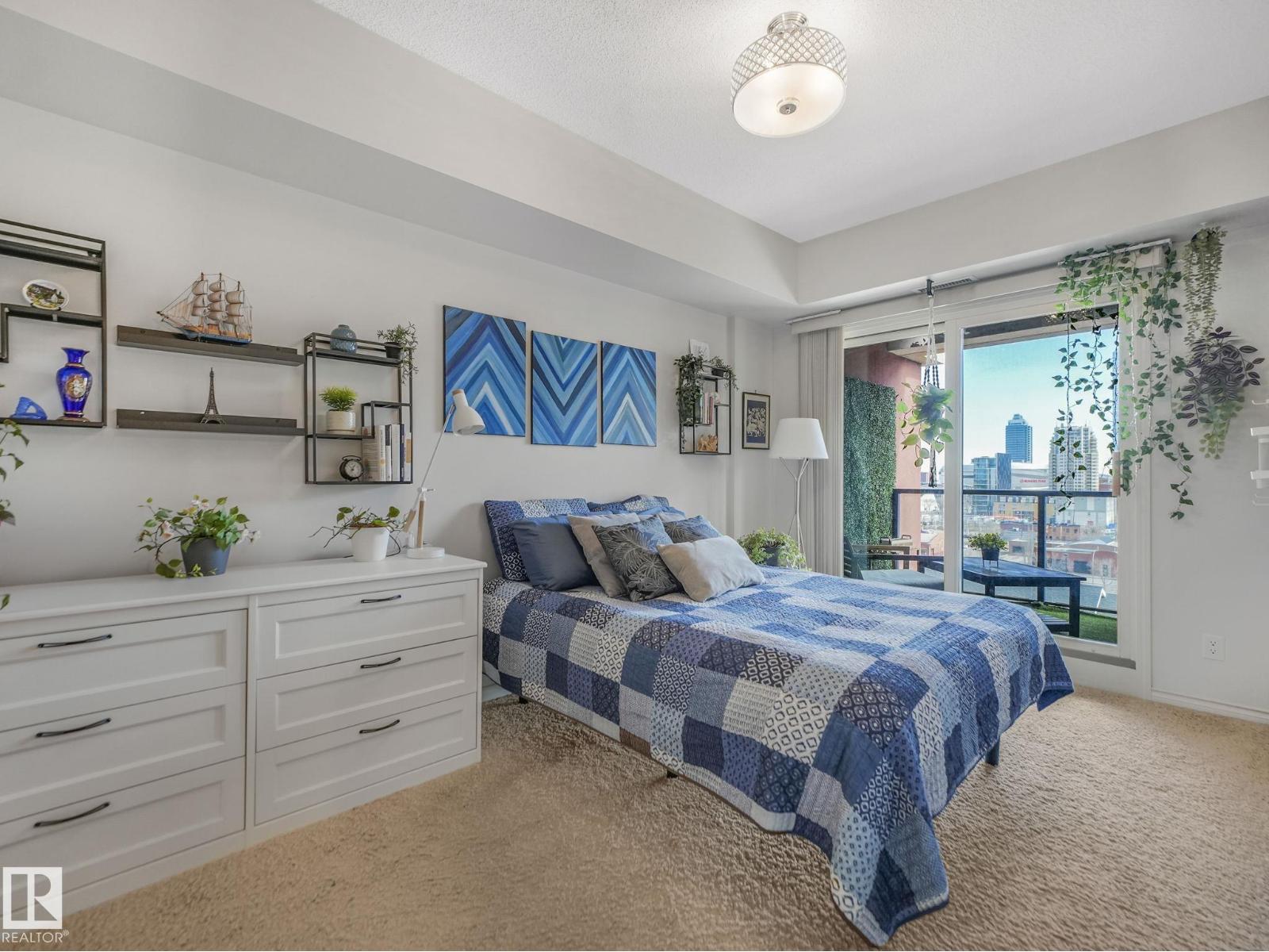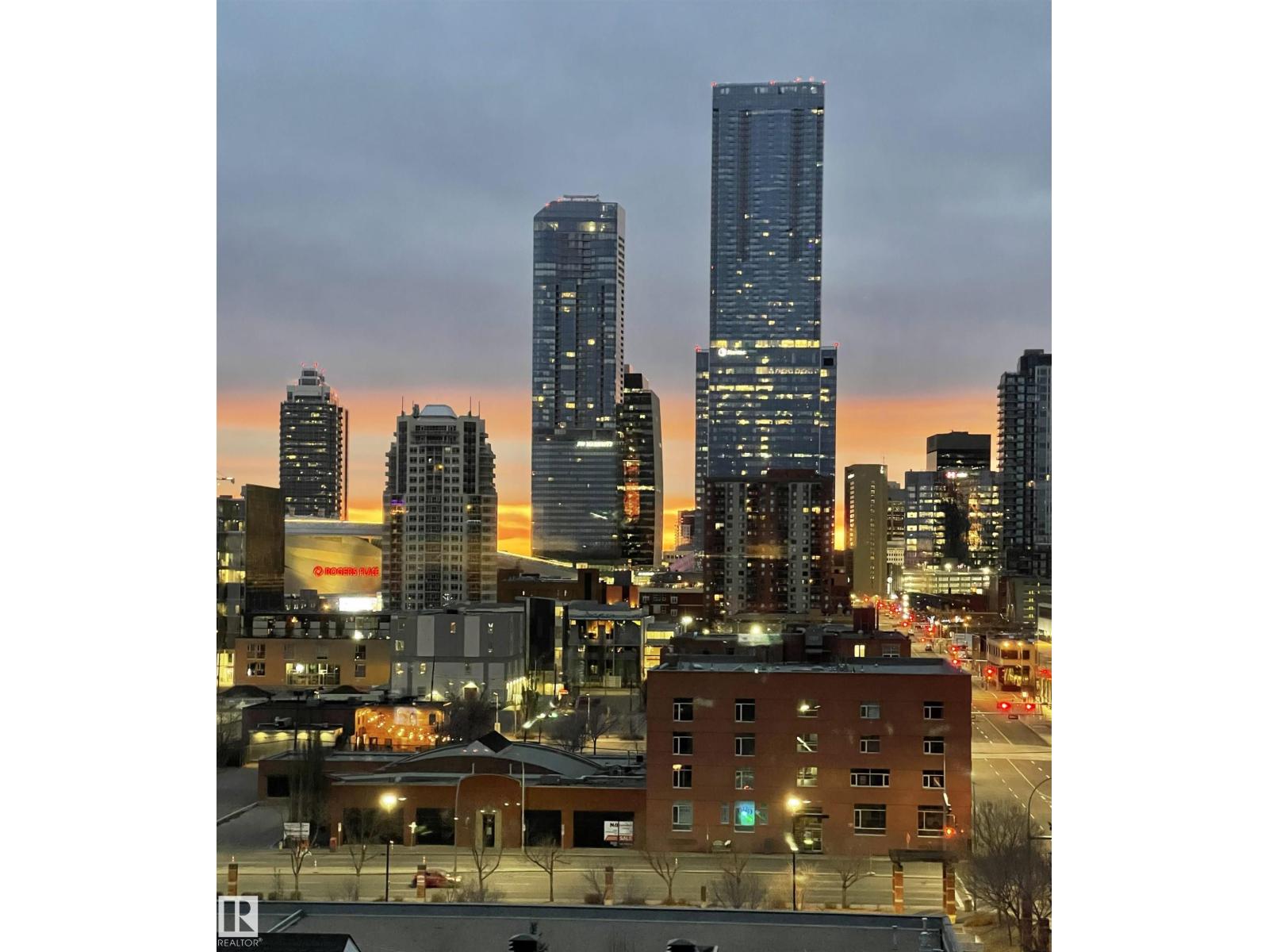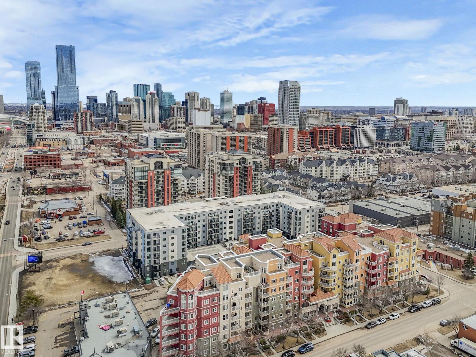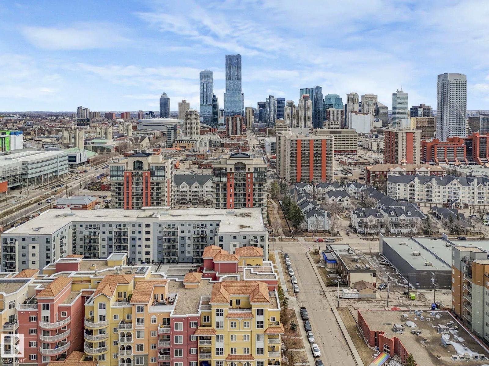 Stunning 9th Floor Downtown Condo | Breathtaking Views | Prime Investment Opportunity. Experience elevated urban living in this impeccably upgraded 9th-floor condo in an 18+ building in the heart of downtown! Featuring 2 beds & 2 baths across 1,040 sq ft, this unit offers unobstructed Downtown Views, perfect for enjoying vibrant sunrises & sunsets. Originally a show suite, it boasts premium finishes like granite countertops, s.s. appliances, rich hardwood/laminate flooring, elegant cabinetry w/ crown molding & under-mount lighting. The open-concept layout is ideal for relaxation & entertainment. Key features include: New A/C (2024), new washer & dryer (2026), a spacious primary w/ a 3pce ensuite, a 2nd bed & an additional 4pce bath great for guests or a home office, plus a titled unground parking stall. The building allows pets & offers a large gym, social room & guest suite. Enjoy unbeatable walkability, steps from Grant MacEwan University, NorQuest College, the Ice District, shopping, cafes, & dining! (id:51989)