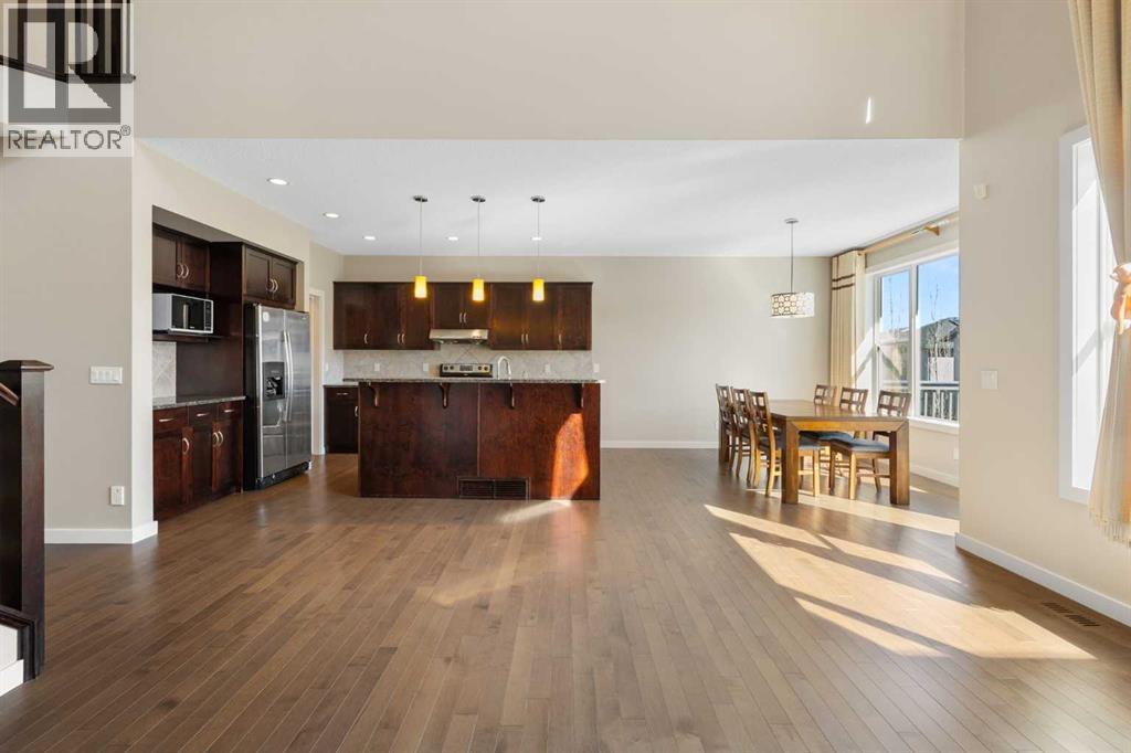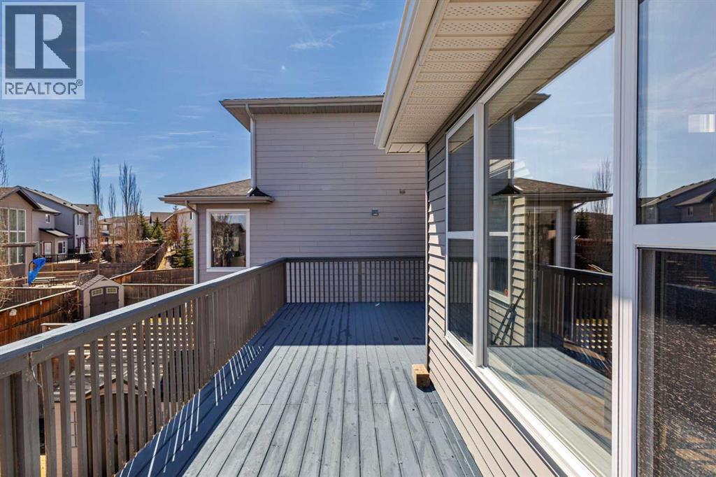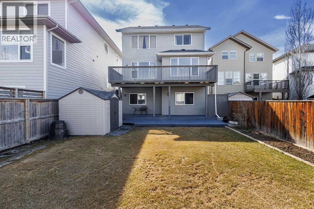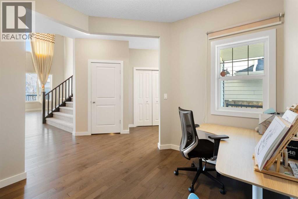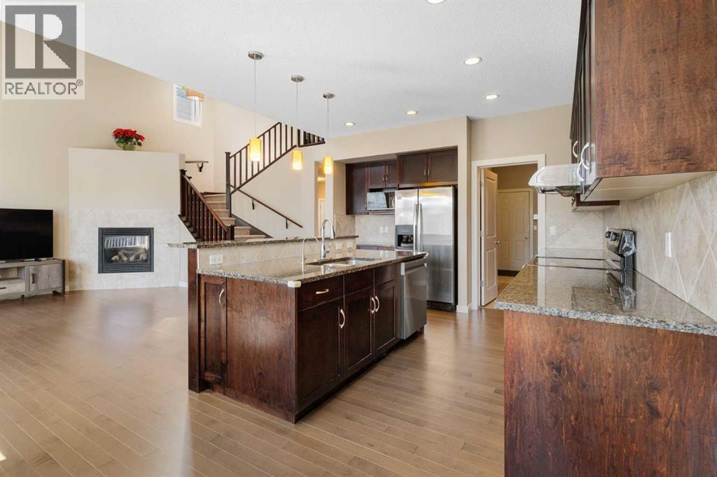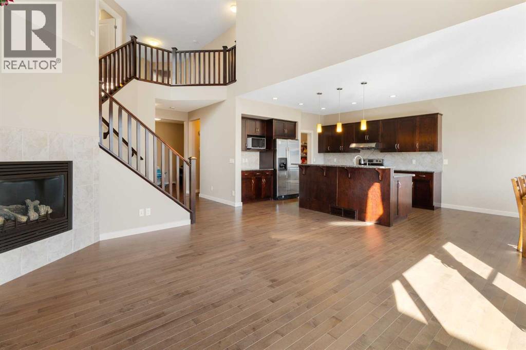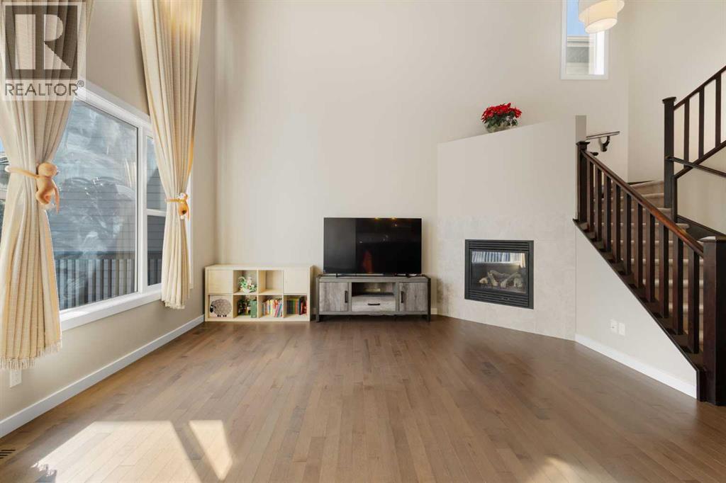 Open House 1-3pm, Sunday April 26. This stunning, immaculately maintained 2-storey walkout home offers exceptional space, functionality, and abundant natural light throughout. Featuring 3+1 bedrooms and 3.5 bathrooms, this executive-style residence boasts gleaming hardwood floors and 9’ ceilings on the main level. The bright and open main floor showcases a spectacular family room with soaring 18’ ceilings, a cozy gas fireplace, and massive windows that flood the space with natural light. The gourmet kitchen is equipped with granite countertops, stainless steel appliances, a central island with raised eating bar, and a convenient walk-through pantry. A spacious dining area provides direct access to the full-width deck, perfect for entertaining. A den and 2-piece bath complete the main level. Upstairs, you’ll find a generous loft area, a luxurious primary retreat featuring a 5-piece en-suite with double vanity, soaker tub, separate shower, and a large walk-in closet. Two additional well-sized bedrooms and a 4-piece main bath complete the upper level. The professionally developed walkout basement includes a fully finished illegal suite with a separate entrance, 9’ ceilings, and durable laminate flooring throughout. This level features a large living room, full kitchen with island, a fourth bedroom, a 4-piece bathroom, and ample storage space. Step outside to a beautifully landscaped, fully fenced backyard offering excellent privacy, along with a newer full-width covered patio, ideal for year-round outdoor enjoyment. Located on a quiet crescent just minutes from schools, parks, and playgrounds, with convenient access to public transit (including Route #8 to the University of Calgary and #301 express downtown). Close to shopping, Superstore, recreation facilities, library, theatre, and all major amenities. Easy access to Stoney Trail, Deerfoot Trail, and the airport. Recent upgrades include: Roof (2025), Gutter (2025), Downspouts (2025), Sidings (2025), Dishwasher (2024) , Dryer (2024), Hardwood flooring (2023), Water Filter System (2022), and Air Conditioner (2021). (id:51989)