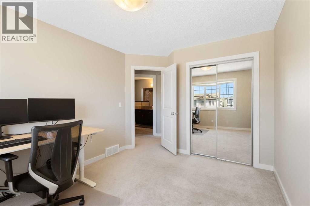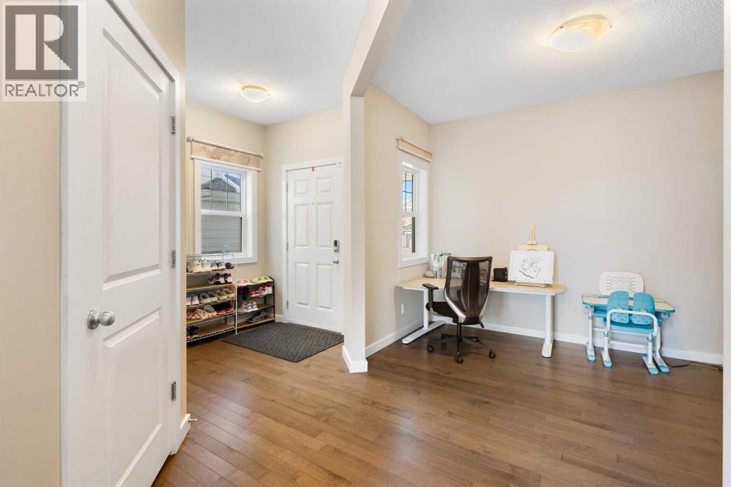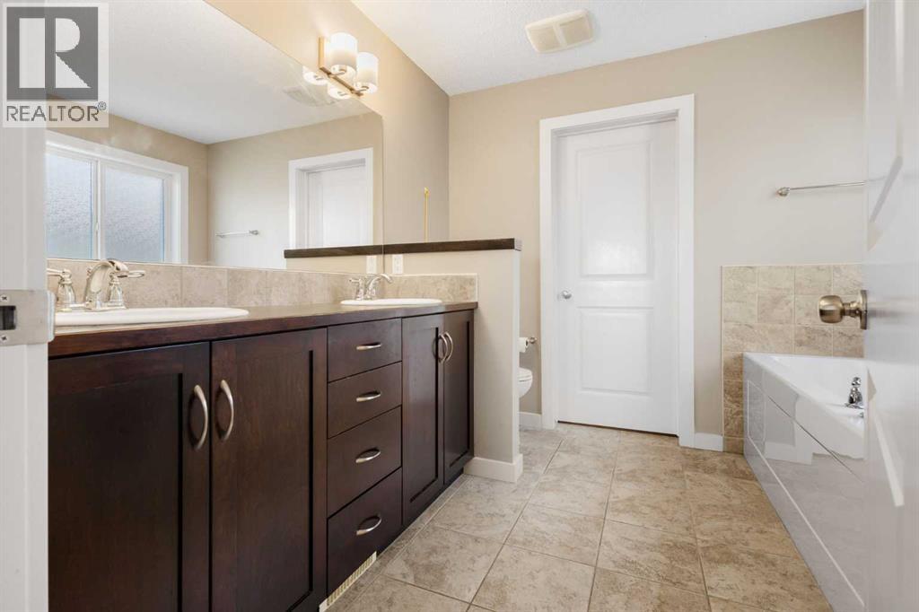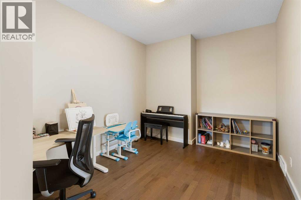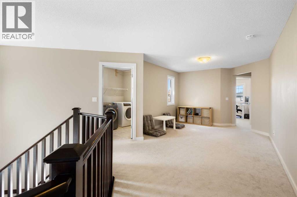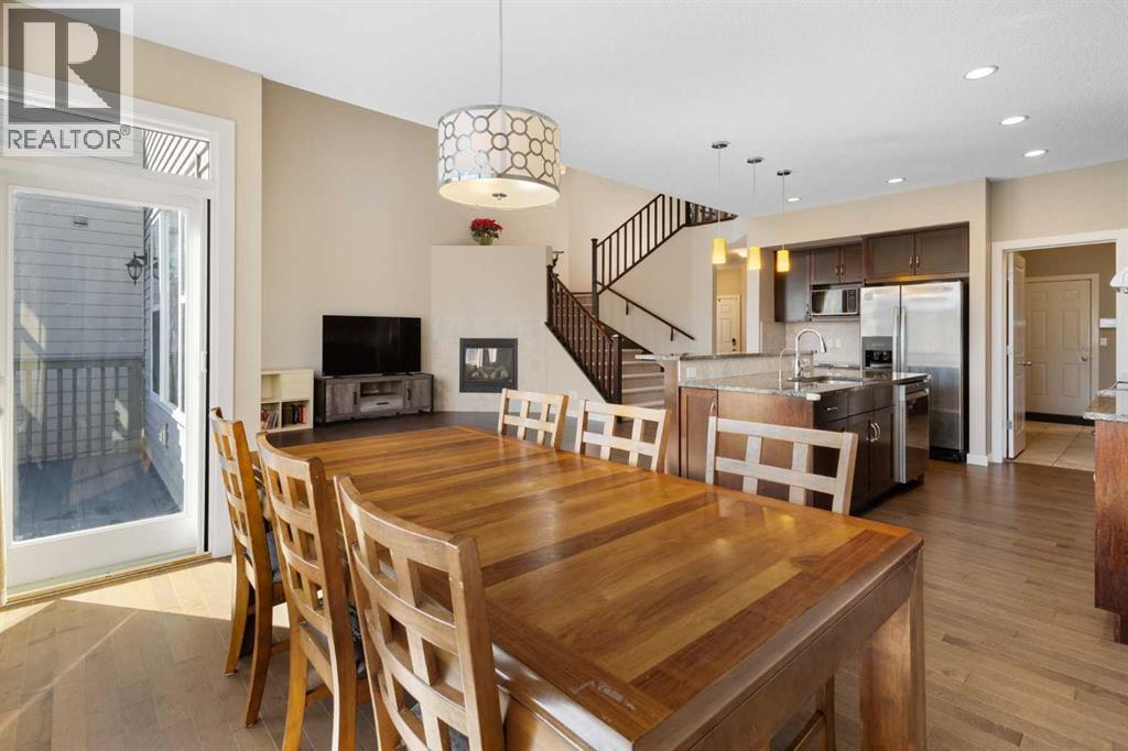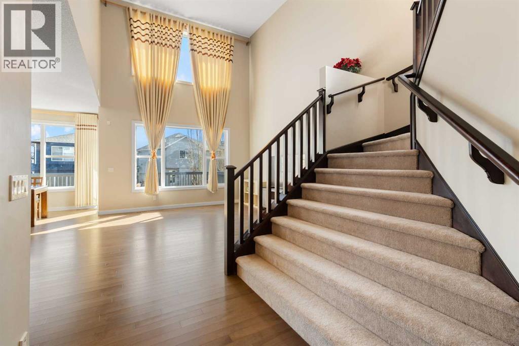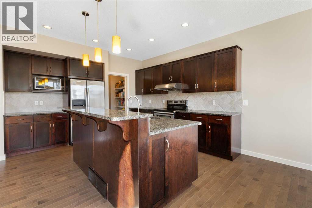 Open House 1-3pm, Sunday April 26. This stunning, immaculately maintained 2-storey walkout home offers exceptional space, functionality, and abundant natural light throughout. Featuring 3+1 bedrooms and 3.5 bathrooms, this executive-style residence boasts gleaming hardwood floors and 9’ ceilings on the main level. The bright and open main floor showcases a spectacular family room with soaring 18’ ceilings, a cozy gas fireplace, and massive windows that flood the space with natural light. The gourmet kitchen is equipped with granite countertops, stainless steel appliances, a central island with raised eating bar, and a convenient walk-through pantry. A spacious dining area provides direct access to the full-width deck, perfect for entertaining. A den and 2-piece bath complete the main level. Upstairs, you’ll find a generous loft area, a luxurious primary retreat featuring a 5-piece en-suite with double vanity, soaker tub, separate shower, and a large walk-in closet. Two additional well-sized bedrooms and a 4-piece main bath complete the upper level. The professionally developed walkout basement includes a fully finished illegal suite with a separate entrance, 9’ ceilings, and durable laminate flooring throughout. This level features a large living room, full kitchen with island, a fourth bedroom, a 4-piece bathroom, and ample storage space. Step outside to a beautifully landscaped, fully fenced backyard offering excellent privacy, along with a newer full-width covered patio, ideal for year-round outdoor enjoyment. Located on a quiet crescent just minutes from schools, parks, and playgrounds, with convenient access to public transit (including Route #8 to the University of Calgary and #301 express downtown). Close to shopping, Superstore, recreation facilities, library, theatre, and all major amenities. Easy access to Stoney Trail, Deerfoot Trail, and the airport. Recent upgrades include: Roof (2025), Gutter (2025), Downspouts (2025), Sidings (2025), Dishwasher (2024) , Dryer (2024), Hardwood flooring (2023), Water Filter System (2022), and Air Conditioner (2021). (id:51989)