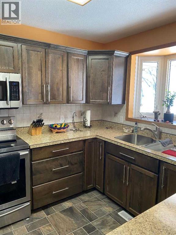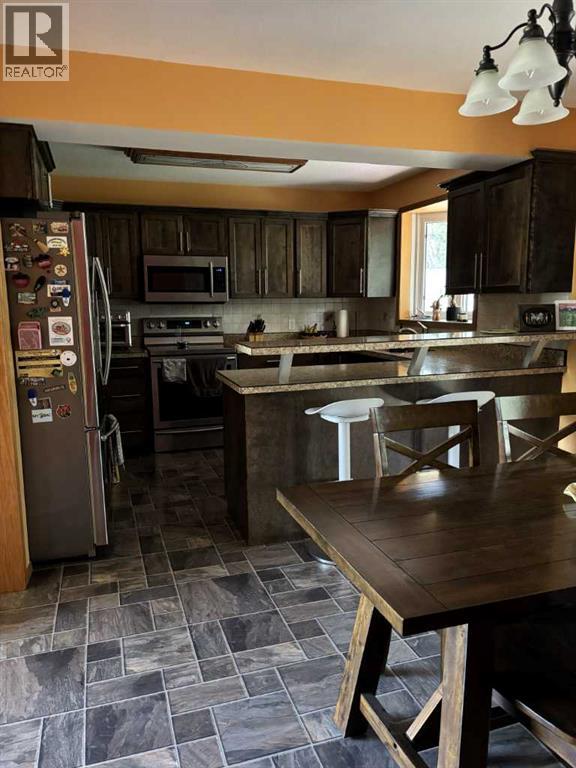 Peaceful country living just minutes from Manning. Welcome to this beautifully updated 5 bedroom, 2 bathroom split entry home situated on 2.3 acres, just 7 kms West of the Town of Manning. Built in 1981 and offering 1226 sq. ft of thoughtfully designed living space, this property combines the charm of country living with modern upgrades and conveniences. Step inside to an inviting open-concept layout featuring a bright kitchen, dining and living area - perfect for family life and entertaining. The kitchen was fully renovated in 2019 with stylish new cabinetry, offering both functionality and fresh modern feel. The main level includes spacious bedrooms and convenient bathroom, while the fully finished basement provides additional living space with 2 bedrooms, 3 piece bathroom (renovated in 2023), laundry area and a cozy family room. There is no shortage of storage though out the home. Enjoy peace of mind with numerous recent upgrades, including new furnace and hot water heater, durable tinned roof (2024) and a new auto pump sewer system (2025). Outside the fully landscaped yard is ready to enjoy, complete with a fire pit area, an 8 x 10 shed and private 3 person hot tub with a privacy screen - perfect for relaxing evenings under the stars. The paved driveway and access to town water add extra convenience, while the attached double garage provides ample parking and storage. This move-in-ready acreage offers the perfect blend of space, privacy, and modern updates all within a short drive to town amenities. (id:51989)