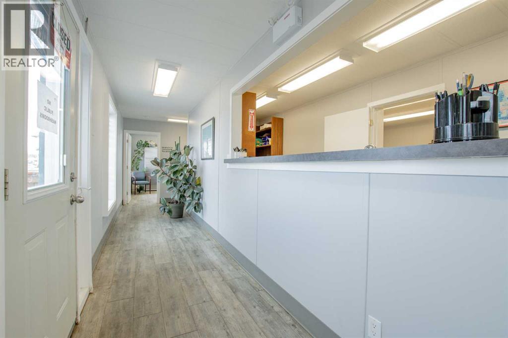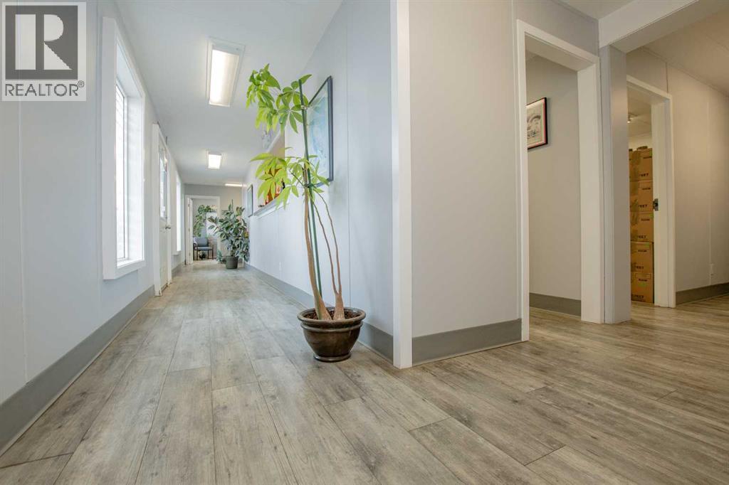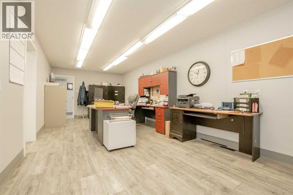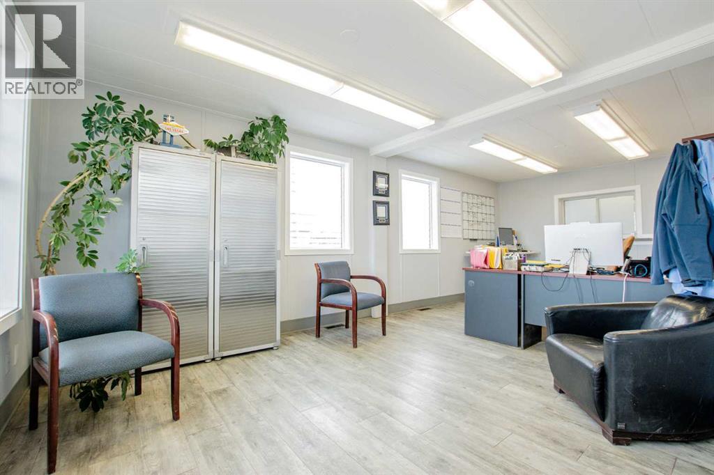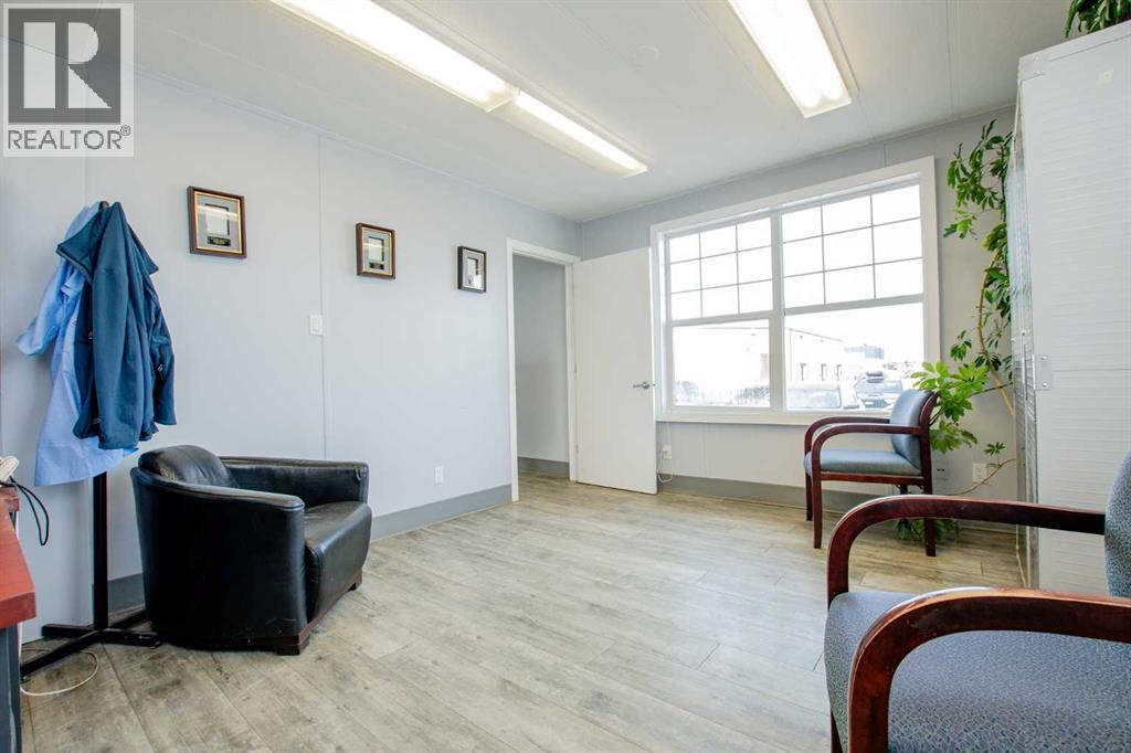 Situated on 1.2 acres, this versatile commercial property features a 4,000 sq ft warehouse/shop and a separate 2,000 sq ft office building, all within a fully fenced yard.The warehouse, constructed in 2003 by HWD Construction, offers two 14' x 14' overhead doors with side-mount openers, two man doors, radiant heat, a sump, and updated lighting. The structure is also designed to accommodate a future mezzanine if desired.The office building is well laid out with a reception area, three private offices, a large bullpen workspace, lunchroom, two washrooms, and a live-in suite. The generously sized rooms provide flexibility and can be reconfigured to suit a variety of business needs. Additional features include air conditioning and a rear deck.Recent upgrades include new shingles on both the shop and office buildings. This one checks all the boxes: yard space, shop space & office space. Contact your commercial Realtor to view this desirable property. (id:51989)