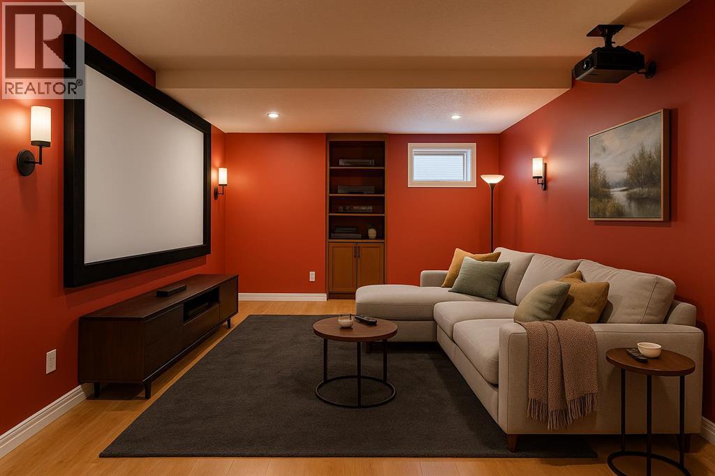Open House Feb 14th 2-4pm! Welcome to this beautifully maintained, original-owner home offering over 3,000 sq ft of developed living space in the highly sought-after, family-friendly community of Kincora. Ideally located on a quiet street just steps from scenic green space, this spacious 4-bedroom residence combines comfort, functionality, and thoughtful upgrades throughout.The main floor features an inviting open-concept layout with a soaring vaulted ceiling in the living room, highlighted by a stunning floor-to-ceiling stone-faced fireplace and decorative ceiling beams. The chef-inspired kitchen boasts granite countertops, maple cabinetry, a raised breakfast bar, corner pantry, and newer stainless steel appliances—including a refrigerator and electric stove replaced within the last two years. A bright and expansive breakfast nook opens onto a newly painted oversized deck with a BBQ gas line, perfect for outdoor entertaining.A generously sized main floor office with French doors, large window, and hardwood flooring provides an ideal work-from-home space. A convenient 2-piece powder room and laundry room complete the main level.Upstairs, a sun-filled bonus room with corner windows offers serene ravine views. The spacious primary suite includes a luxurious 5-piece ensuite with a relaxing corner soaker tub. Two additional bedrooms are thoughtfully positioned for privacy and share a 4-piece bathroom.The professionally developed basement is a true showstopper—designed for entertaining with a large recreation area, wet bar with wine fridge, and a full home theatre system. A fourth bedroom and another full 4-piece bathroom complete this level.Additional features include hardwood flooring on the main, upgraded underlay on the stairs, built-in sound system, central vacuum, and extra windows for enhanced natural light. Recent updates include new roof shingles, partial new siding, and a new garage door with windows.Enjoy all that Kincora has to offer—ravines, parks, pla ygrounds, and extensive walking/biking paths—while being close to schools, shopping, and with easy access to the airport and the mountains.Don’t miss your chance to own this exceptional home—contact your favorite REALTOR® today to schedule a private showing! some photos are virtually furnished. (id:51989)