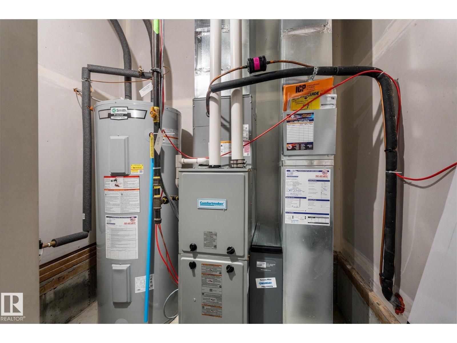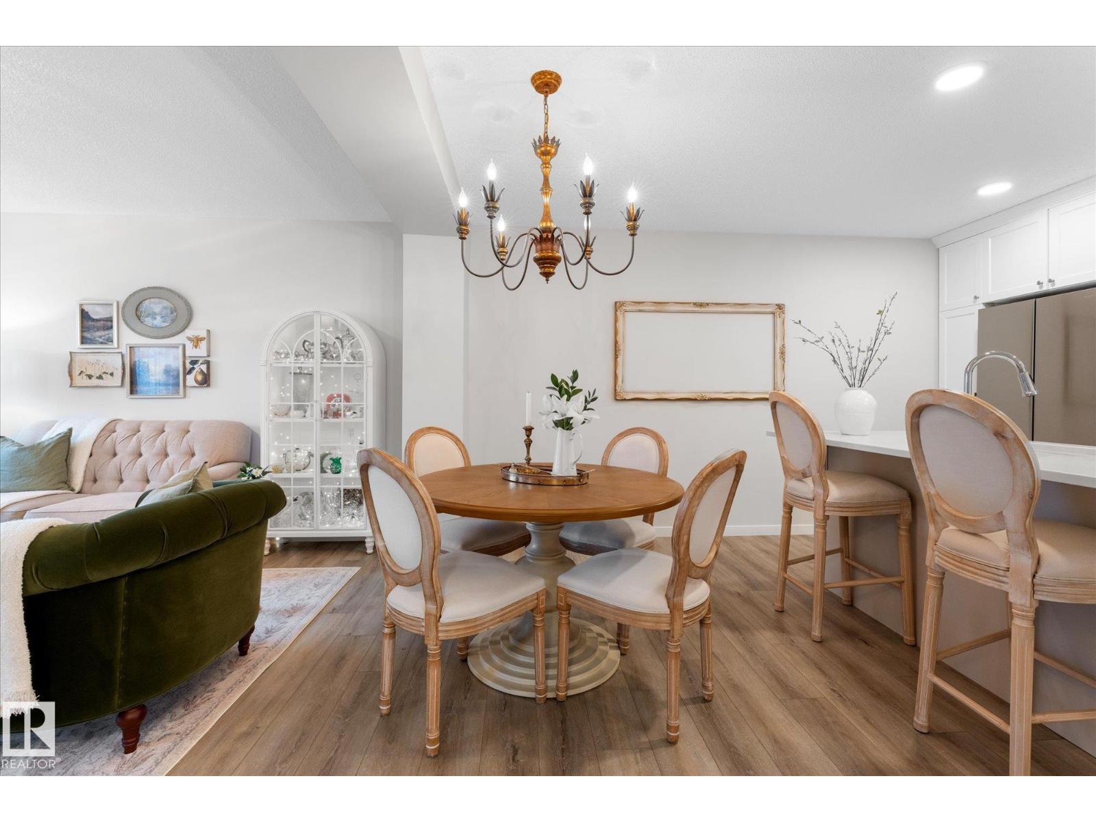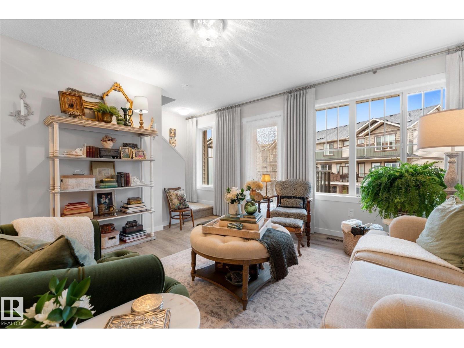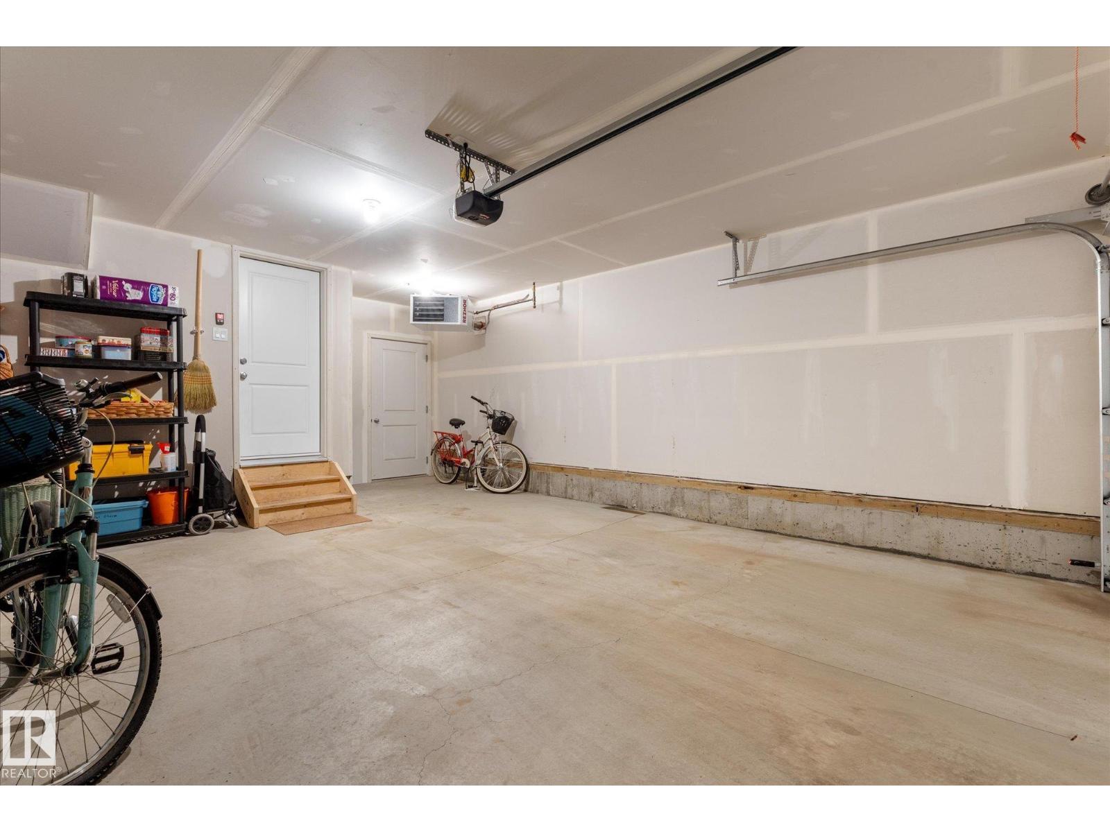 Elegant and beautifully appointed executive-style 2-storey townhouse in McLaughlin, Spruce Grove. This 2024-built, 1,323 sq ft home offers 2 bedrooms and 2.5 baths, plus an attached heated and insulated double garage. Perfectly situated steps from Heritage Grove Park and its scenic trail system, it blends refined living with everyday ease. The main floor showcases upgraded luxury vinyl plank flooring, central air conditioning, and a bright, open-concept layout filled with natural light. The gourmet kitchen impresses with upgraded cabinetry, quartz countertops, and premium sink and fixtures, flowing seamlessly into the dining area and elegant living room with balcony overlooking the courtyard. Custom draperies and stylish upgraded lighting elevate the space throughout. Upstairs features convenient top-floor laundry and two spacious primary suites, each offering a walk-in closet and a beautifully finished private ensuite. Close to the TransAlta Tri Leisure Centre with quick access to Hwy 16 and 16A. (id:51989)