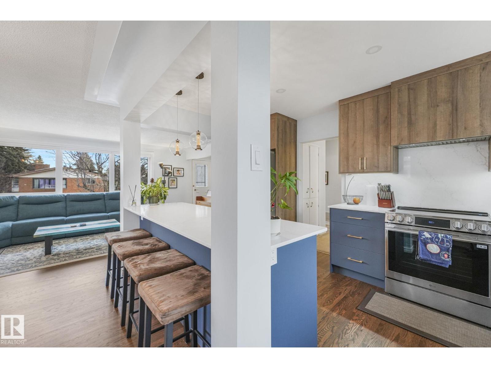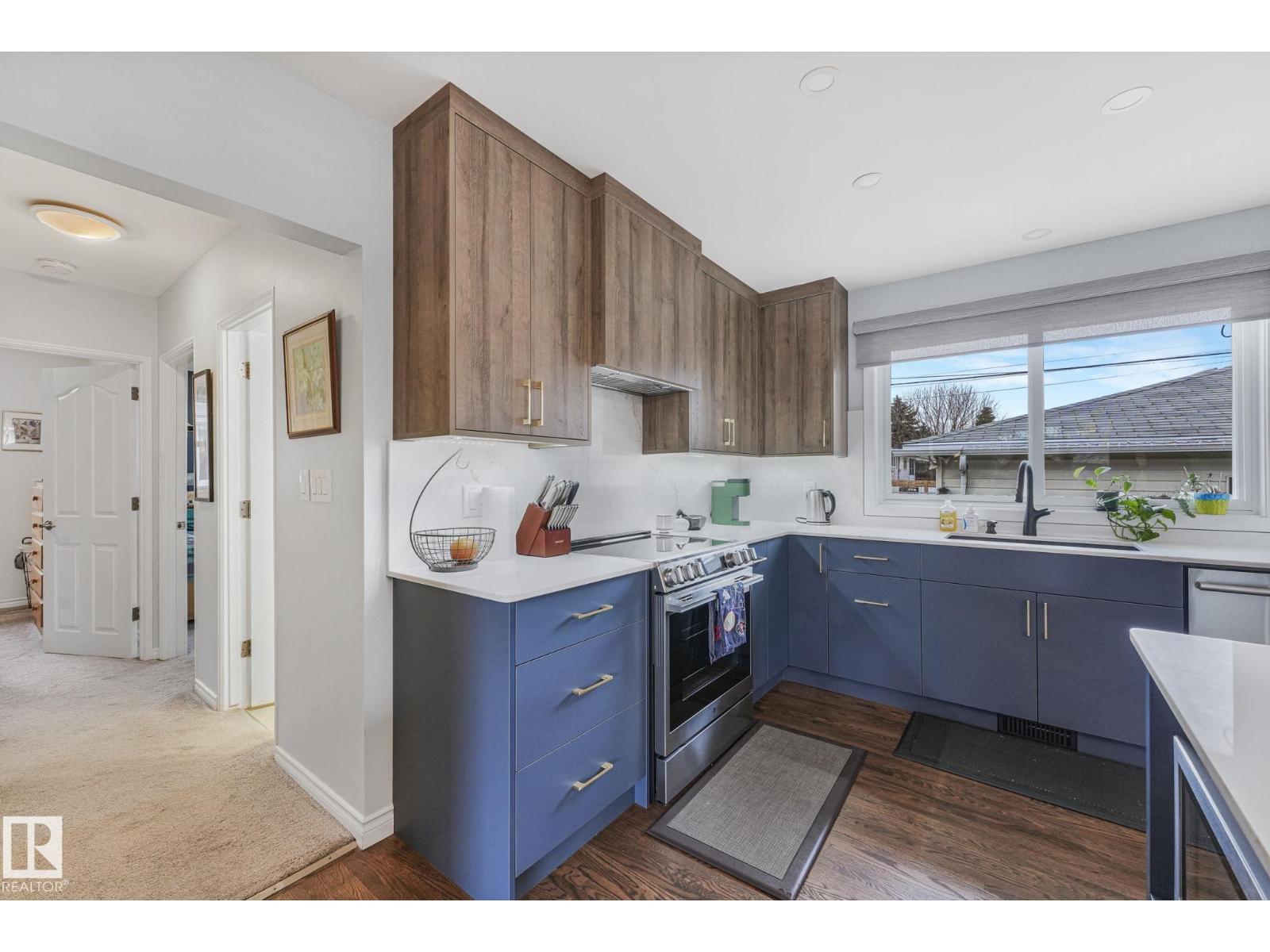 Welcome to this UPDATED and RENOVATED 1,160 Sq Ft+ Home in Ottewell! Featuring 5 bedrooms and 2 full bathrooms, + a double detached OVERSIZED and insulated garage! Walk in the front door, and notice the welcoming charm and touches that can't go unnoticed. As you come into the living room you'll see updated flooring, paint and windows to provide exceptional light. As you move into the dining room and STUNNING CUSTOM KITCHEN! Take note of the numerous details that will blow your mind! Two tone cabinets, custom cabinets and countertops. A massive island with 4 bar seats, brand new S/S appliances, truly a masterpiece. Down the hall you'll find 3 good sized bedrooms and 1 full bathroom perfect for the growing family. Moving downstairs you'll find the updated bathroom with custom rainfall shower! Also a huge living area with a fireplace and perfect for a family room. 2 more bedrooms top it off for teenagers, office, or guests alike. Close to downtown with great access to major routes. Come take a look today!! (id:51989)