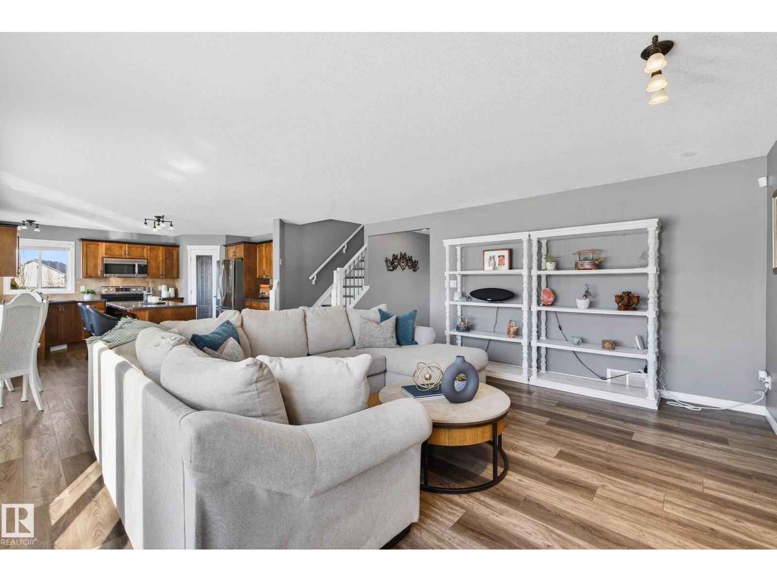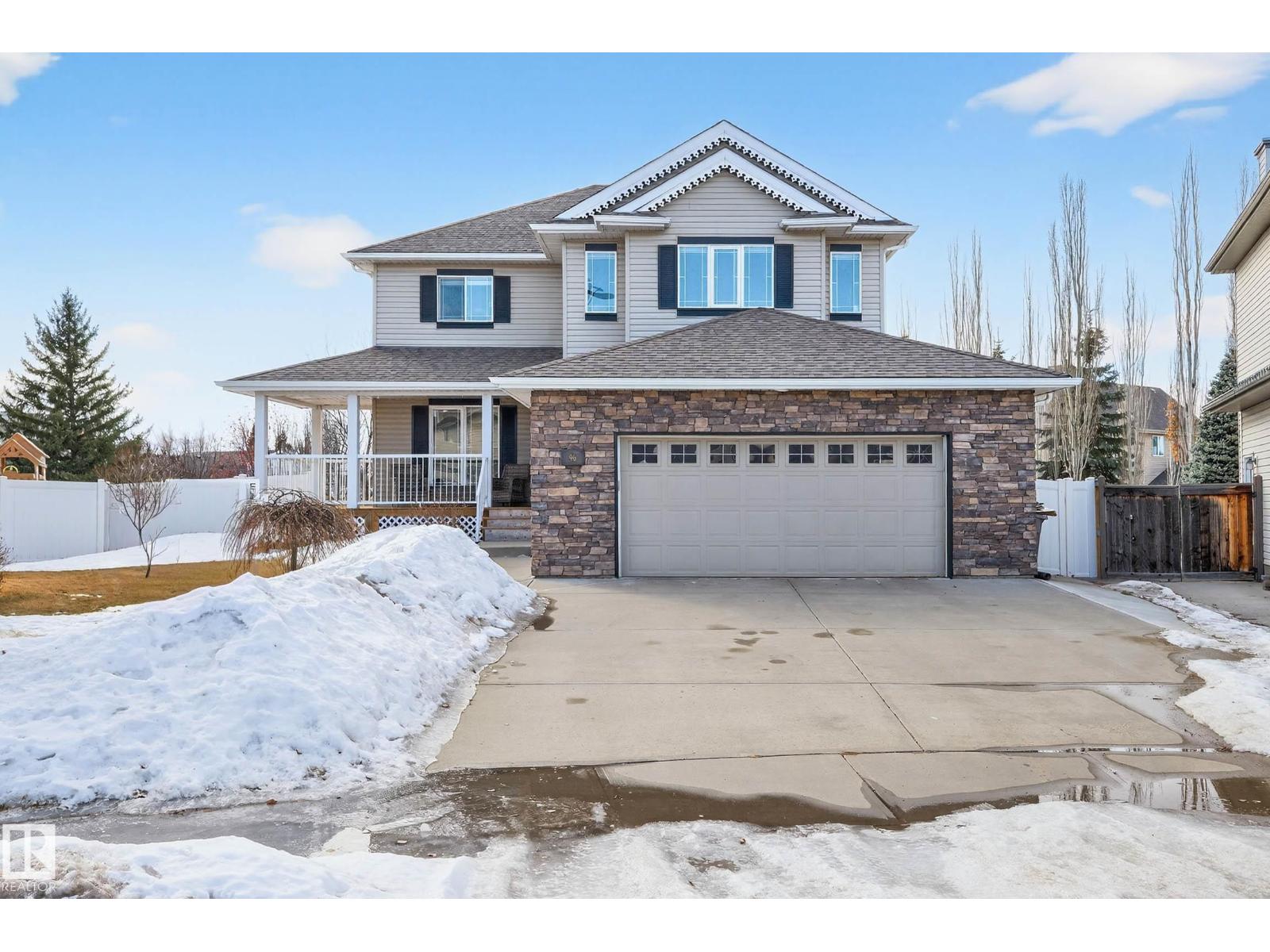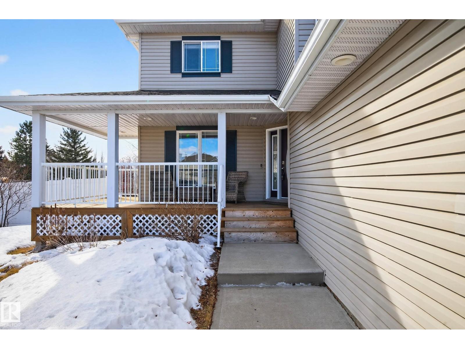 Tucked away in a quiet CUL-DE-SAC on incredible 953m² PIE SHAPED LOT, this bright & beautifully maintained custom-built 2 storey offers exceptional space both inside & out. Charming curb appeal w/wrap around porch & full landscaping. Backing directly onto a walking trail, the expansive yard creates a private outdoor retreat w/plenty of room for kids, pets & entertaining. Thoughtfully designed floor plan balances comfort & functionality. Main level features a modern kitchen w/abundant counter space, island, walk-thru pantry & spacious dining nook that flows into inviting GREAT ROOM anchored by gas F/P. Versatile main-floor flex room is ideal for a home office, playroom or study. Practicality shines w/welcoming foyer, powder room & laundry area, complete w/convenient laundry chute. Generous upper level family room, large bedrooms & relaxing primary retreat w/jetted tub is a perfect place to unwind at the end of the day. Heated 24’x24’ garage w/man door, offers excellent space for vehicles & storage. A+++ (id:51989)
