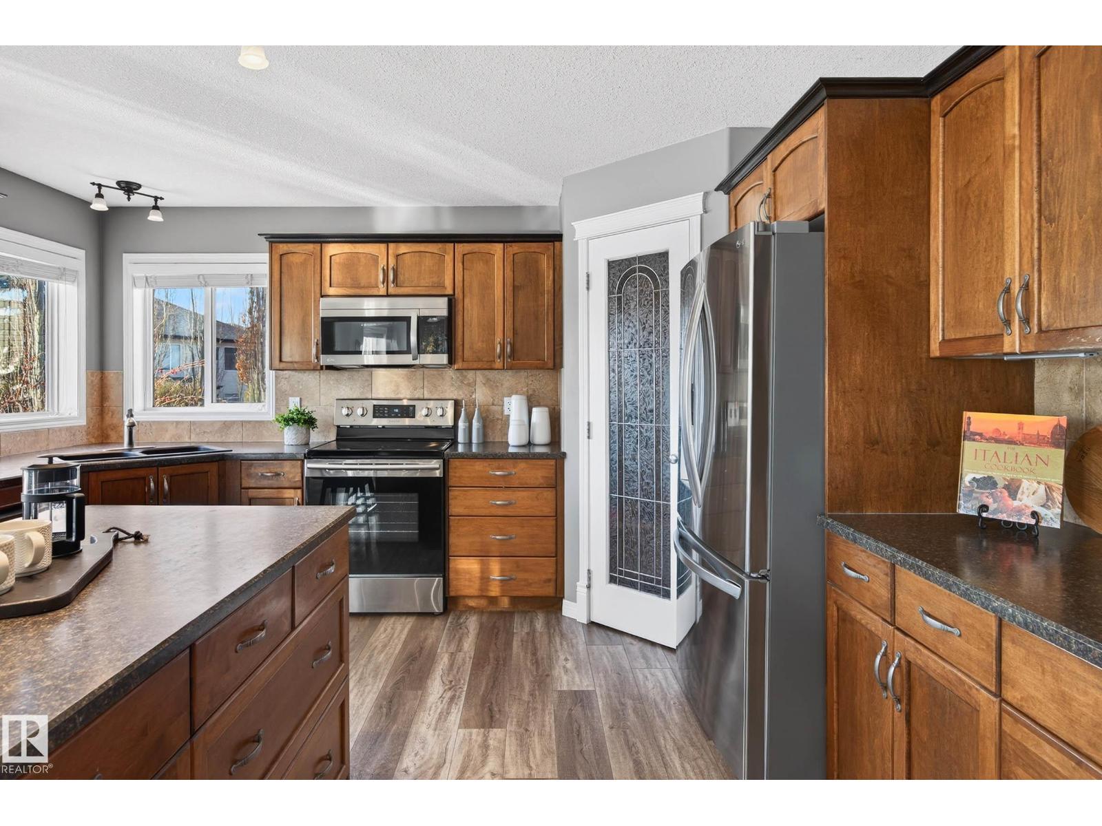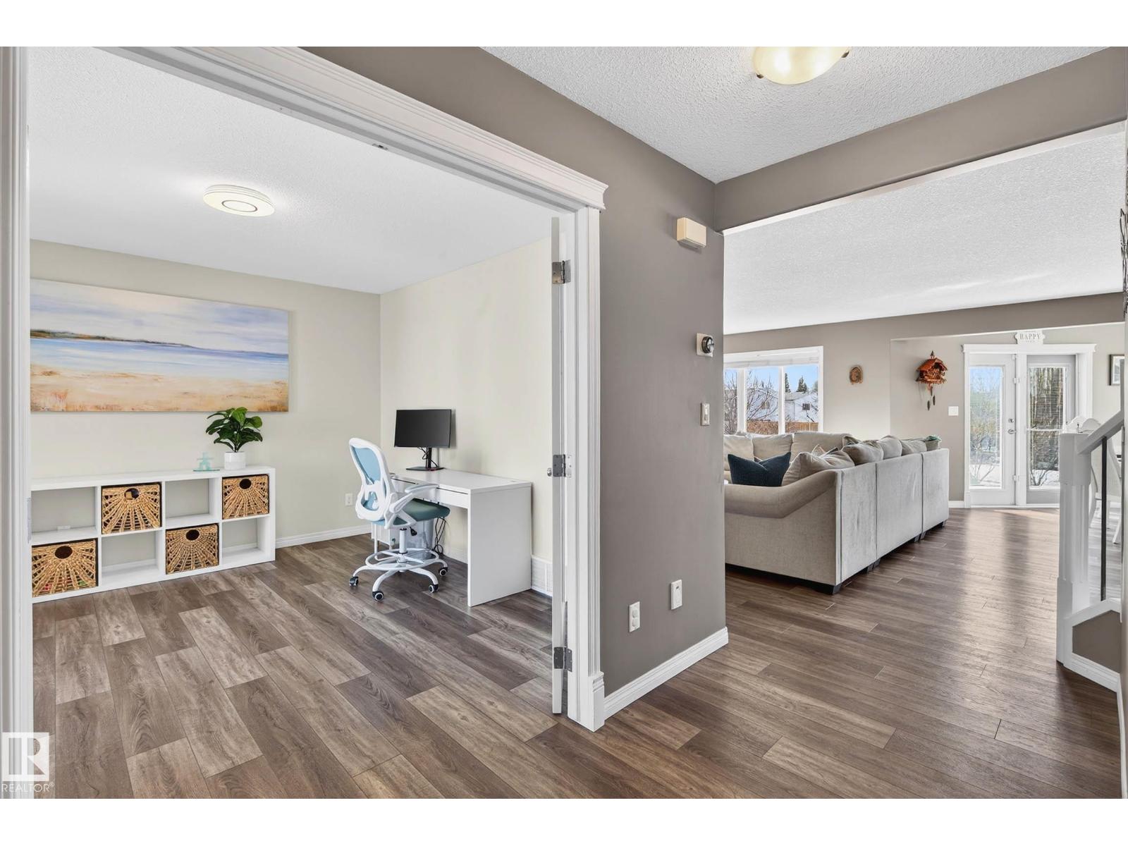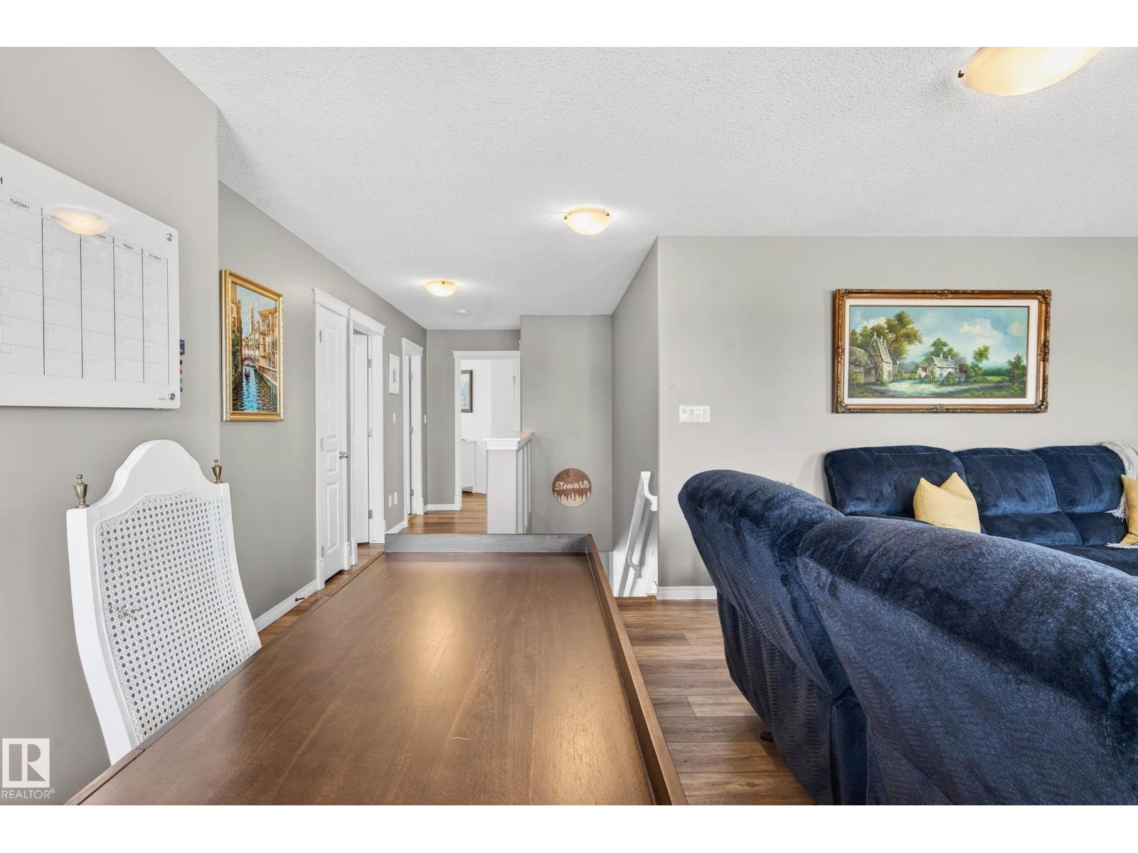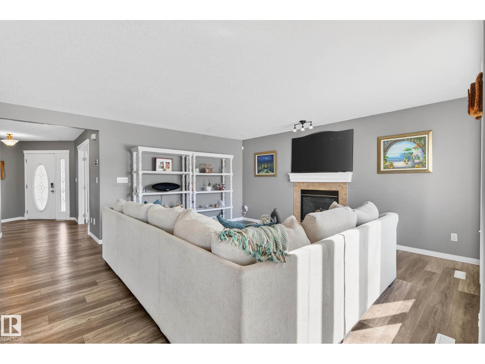 Tucked away in a quiet CUL-DE-SAC on incredible 953m² PIE SHAPED LOT, this bright & beautifully maintained custom-built 2 storey offers exceptional space both inside & out. Charming curb appeal w/wrap around porch & full landscaping. Backing directly onto a walking trail, the expansive yard creates a private outdoor retreat w/plenty of room for kids, pets & entertaining. Thoughtfully designed floor plan balances comfort & functionality. Main level features a modern kitchen w/abundant counter space, island, walk-thru pantry & spacious dining nook that flows into inviting GREAT ROOM anchored by gas F/P. Versatile main-floor flex room is ideal for a home office, playroom or study. Practicality shines w/welcoming foyer, powder room & laundry area, complete w/convenient laundry chute. Generous upper level family room, large bedrooms & relaxing primary retreat w/jetted tub is a perfect place to unwind at the end of the day. Heated 24’x24’ garage w/man door, offers excellent space for vehicles & storage. A+++ (id:51989)