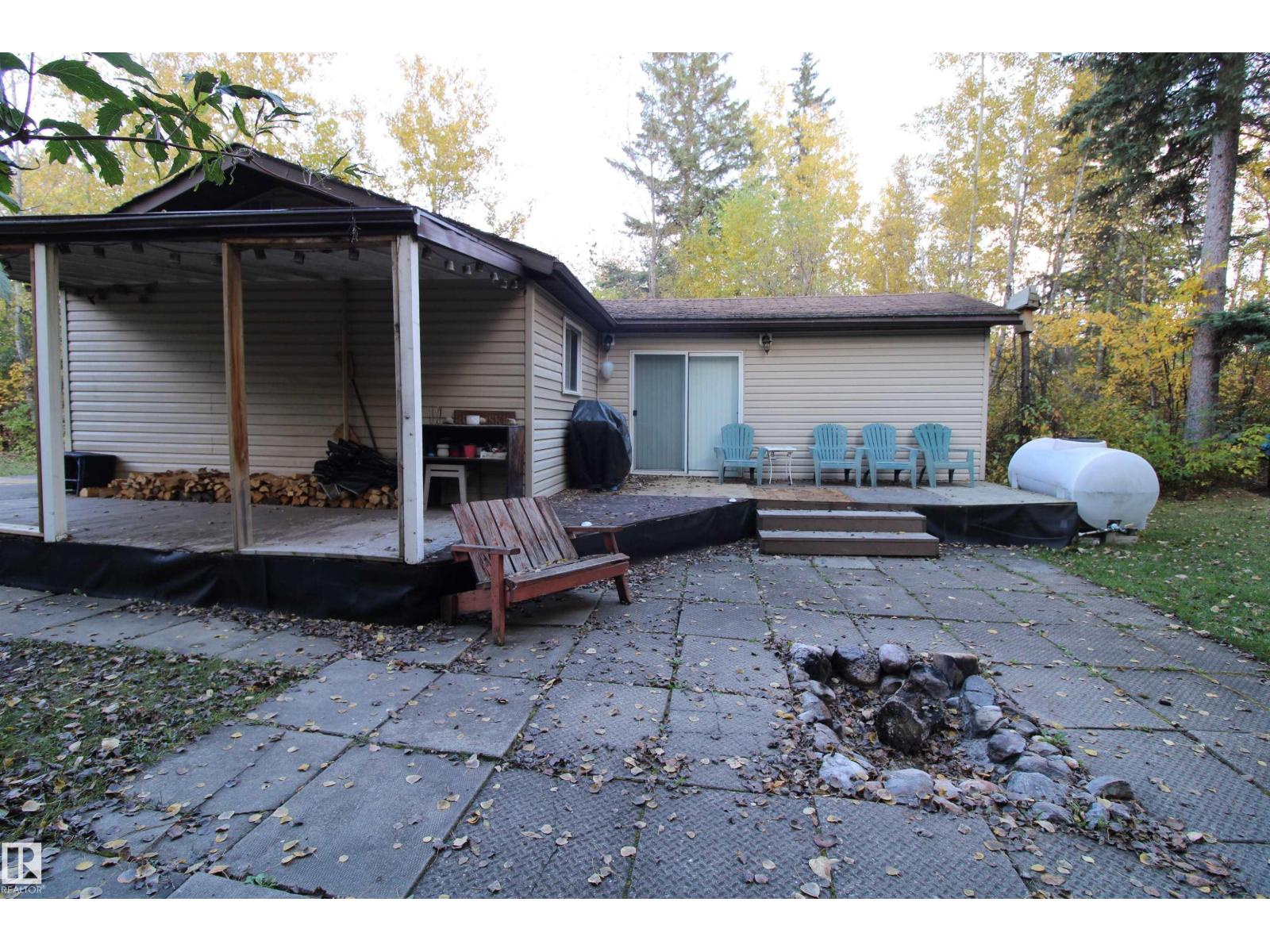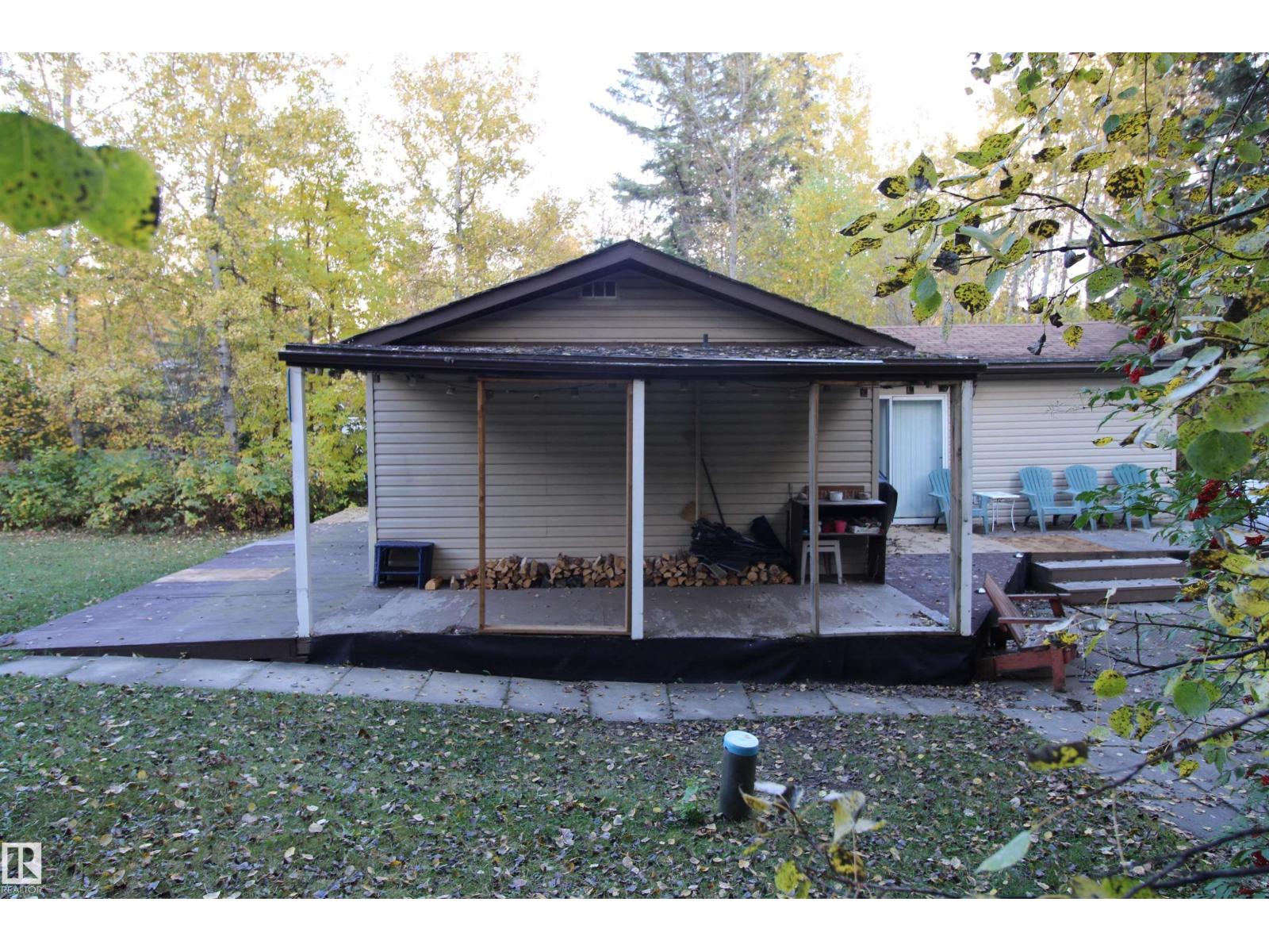 Bring the Kids, the Grandkids… and the RVs. 45 minutes west of Edmonton, this Birchwood Estates property sits on a beautifully treed 0.49 acre lot. The 748 sq ft bungalow offers a comfortable cabin-style setup with open living space, wood-burning fireplace, full kitchen, and 2 bedrooms—ideal for immediate use. Expansive decking, covered outdoor area, and firepit create a relaxed gathering space. The natural tiered lot is a standout, with the cabin on the upper level and a lower section well suited for RVs and guest trailers. Zoned Country Residential (CR-3), the property allows for two full-time RVs (holding tank required), with the layout ideally positioned for future servicing. Located in a quiet Lac Ste. Anne community close to lake access, trails, and amenities. The cabin offers immediate use with opportunity for future updates, while year-round paved access makes spontaneous trips easy. Properties combining this lot layout and CR-3 zoning are increasingly difficult to find. (id:51989)