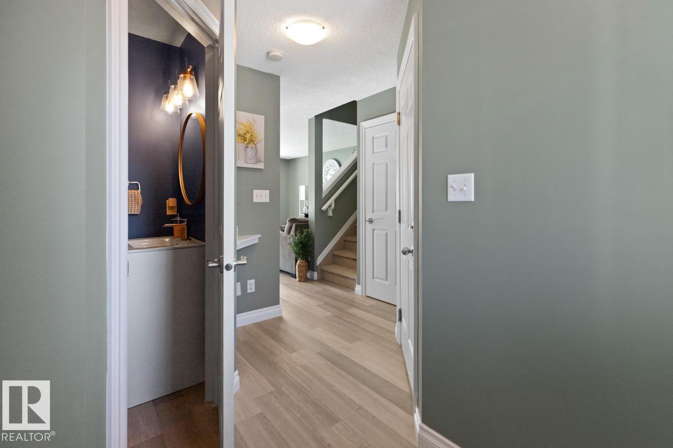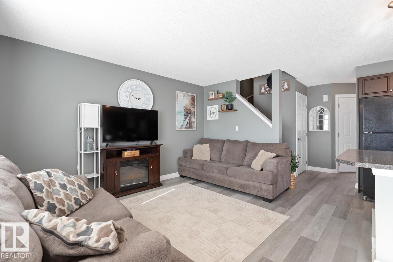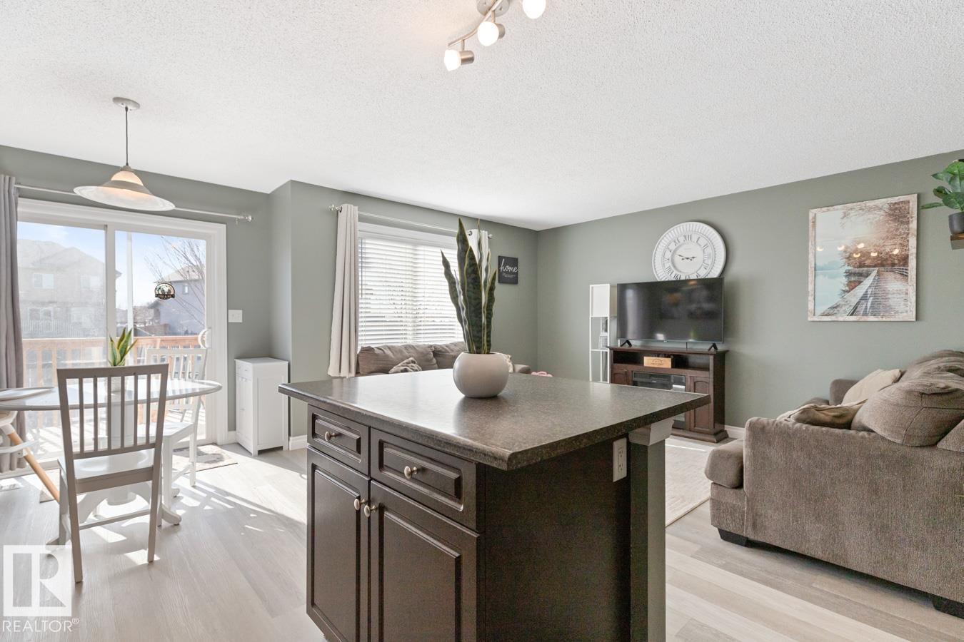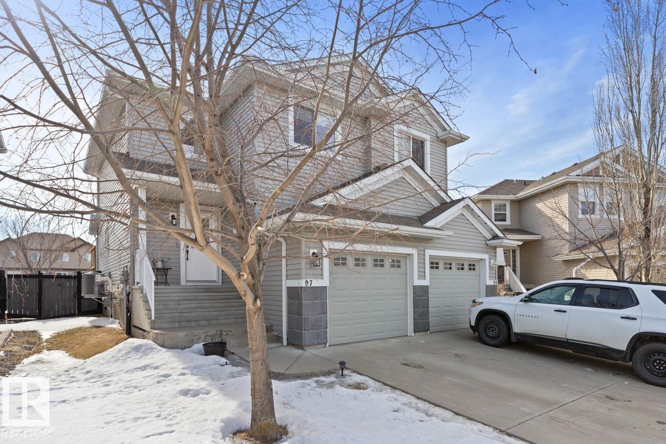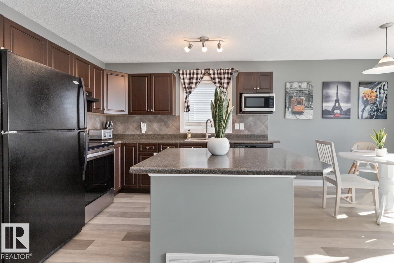 Welcome to this inviting 2-storey 1/2 duplex in West Haven, ready for a family to call home. The bright main floor features new LVP flooring and fresh paint. The kitchen offers a large island, newer stove, and plenty of prep space, opening to the living and dining areas for easy everyday living. Upstairs you’ll find 3 bedrooms, including a primary suite with a 3 pc ensuite, plus a 4 pc main bath. The basement is partially finished, providing a comfortable family room & ample storage space. Step outside to enjoy the nicely landscaped, fully fenced yard w/ a 2-tiered deck w/ new boards, perfect for relaxing or entertaining. Front attached garage provides secure parking, and shelter from the elements. Additional highlights include A/C & newer stacked washer/dryer. Great location near schools, parks, shopping, & golf, w/ quick access to 50 Ave, Hwy 2, & Hwy 2A for an easy commute. (id:51989)