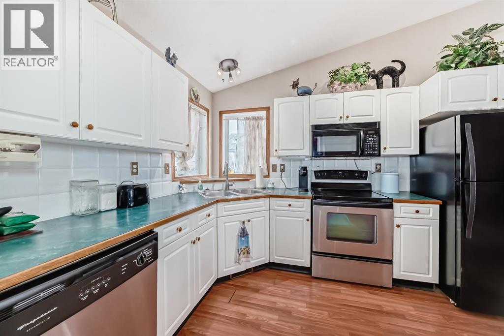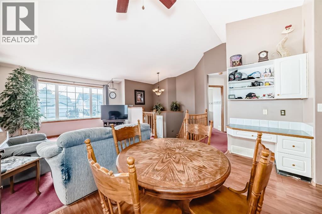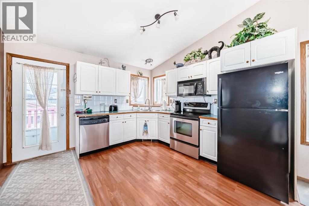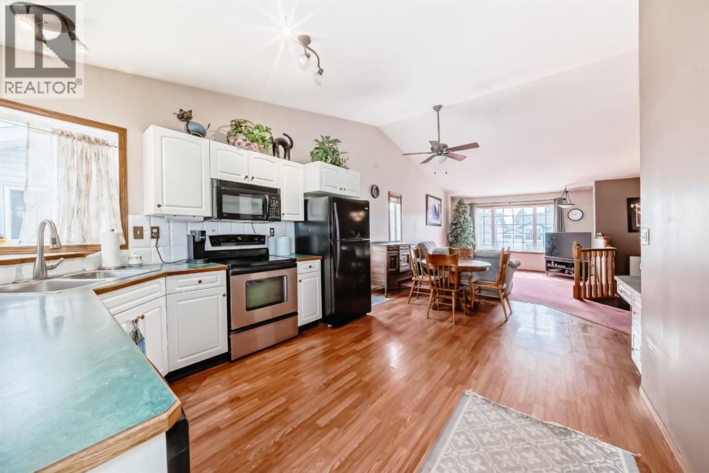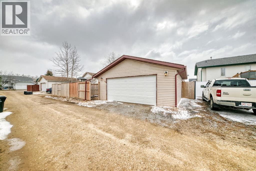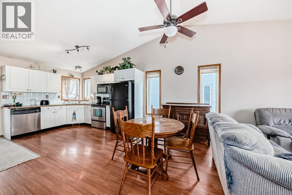 Tucked away in a quiet close in Blackfalds, this 4-bedroom, 2-bathroom bi-level offers a fantastic layout and plenty of potential for its next owner. The main floor features an open-concept kitchen, dining, and living space, perfect for both everyday living and entertaining, along with three bedrooms and a full bathroom. Downstairs, you’ll find a spacious rec room complete with a cozy gas fireplace, a fourth bedroom, another full bathroom, and ample storage. There’s also room to add a fifth bedroom if desired, giving you flexibility to grow into the space. Step outside to a fully fenced backyard (west side completed in 2022), ideal for kids, pets, or summer gatherings, along with a double detached heated garage. Recent upgrades include new shingles (2021) and a hot water tank (2024). With great bones, a functional layout, and key updates already taken care of, this home is packed with potential in a desirable location. (id:51989)
